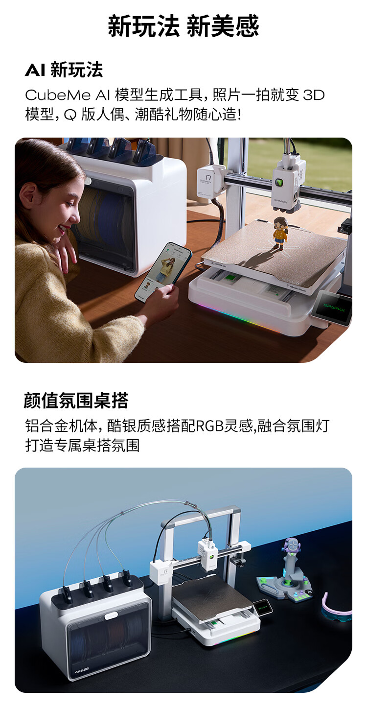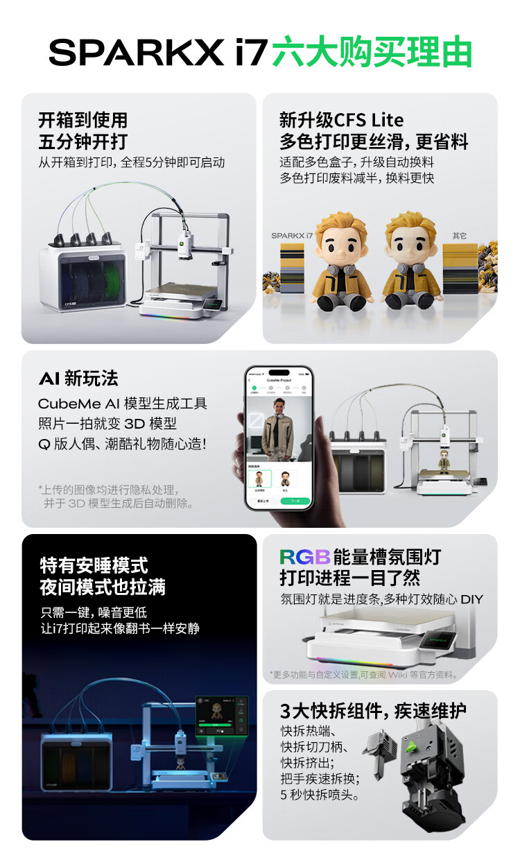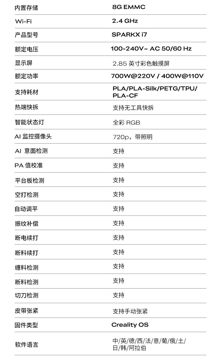 创想三维(Creality 3D)SPARKX i7 3D打印机桌面家用 FDM家庭教育新手入门3d打印机器