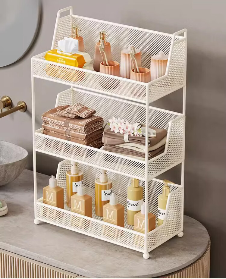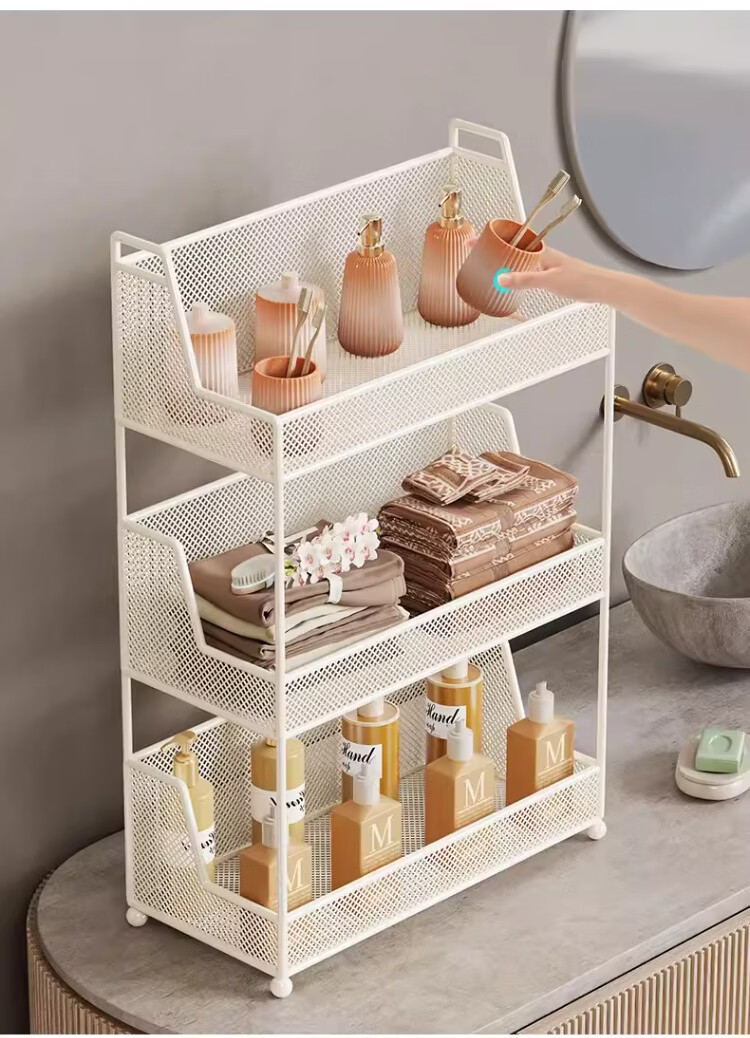 尔思家浴室置物架台面多层化妆品收纳架洗漱台2025新款分层卫生间储物架 白色三层大号