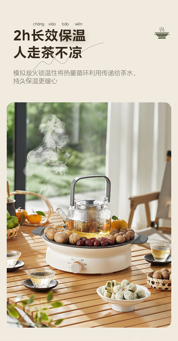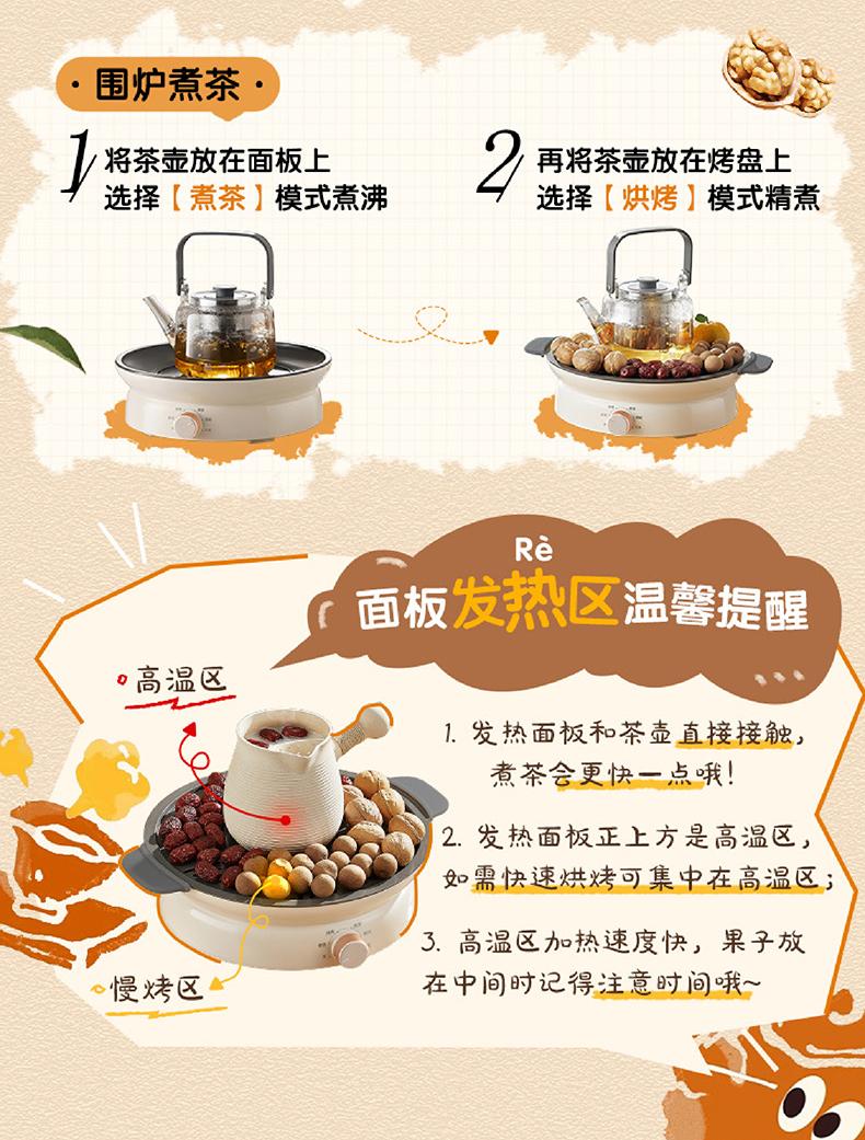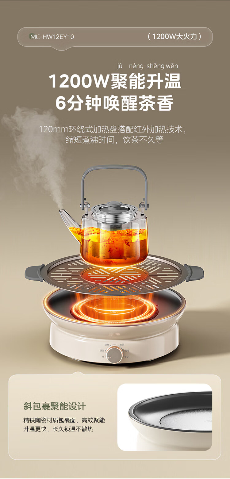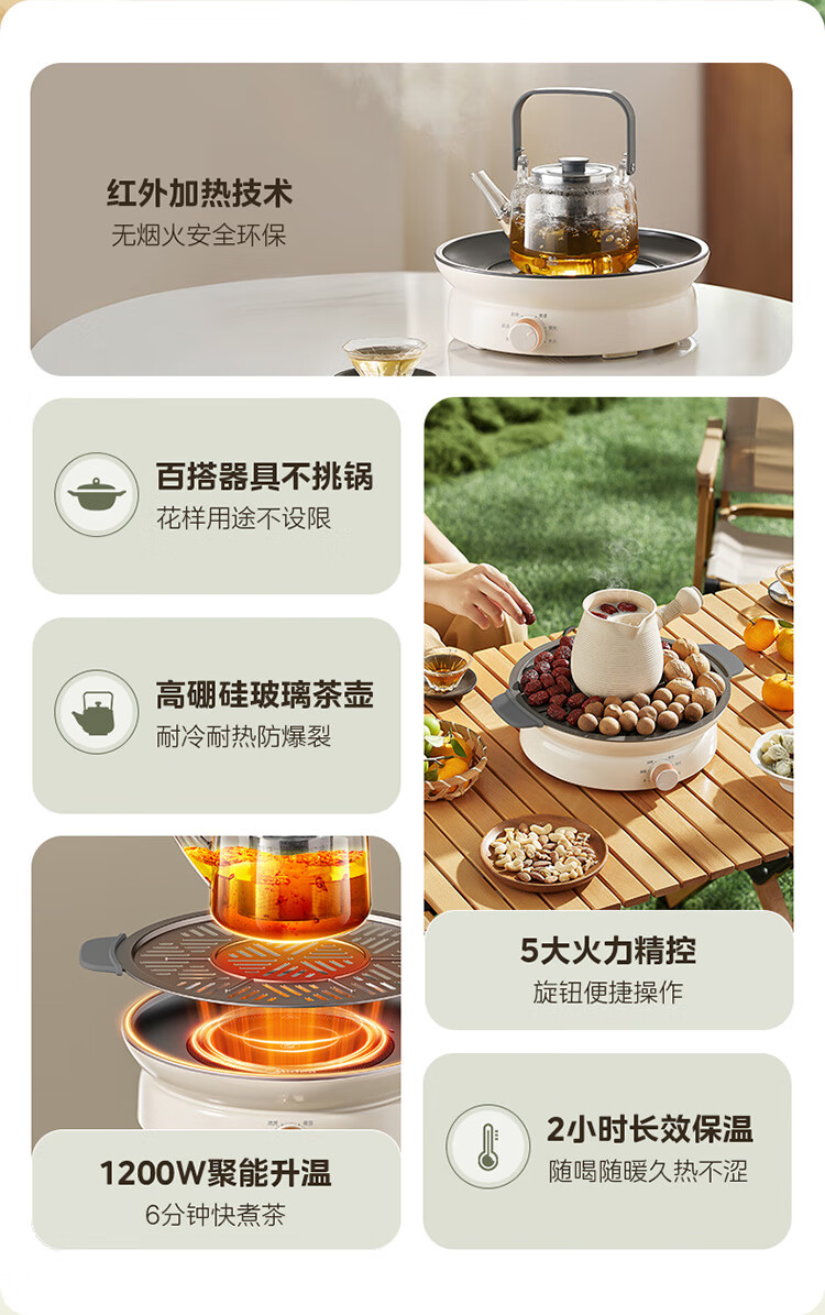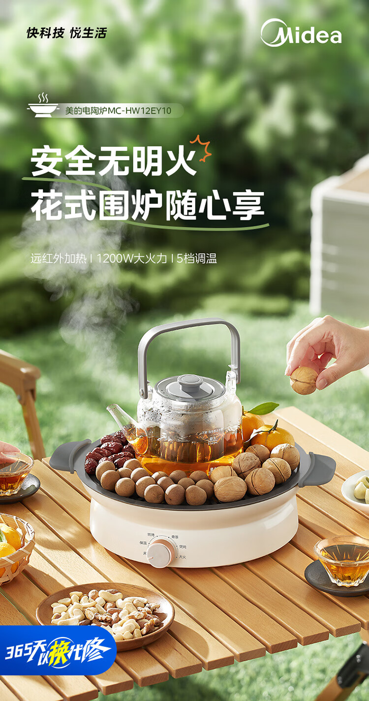 美的(Midea)围炉煮茶套装电陶炉煮茶器电烤炉 多功能玻璃茶壶炉远红外加热 室内户外露营围炉煮茶炉全套煮茶壶 【新式无烟围炉】配烤盘+茶壶