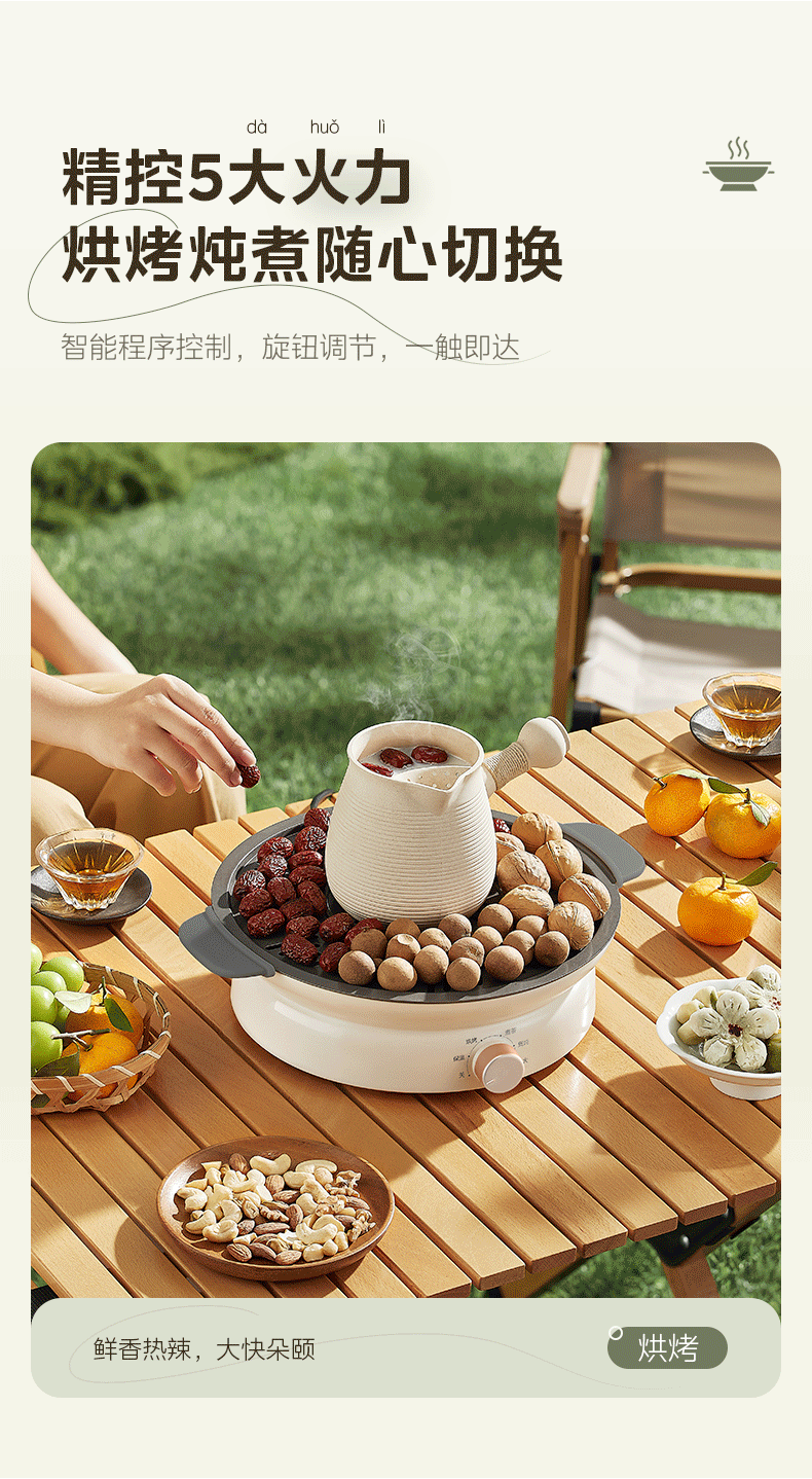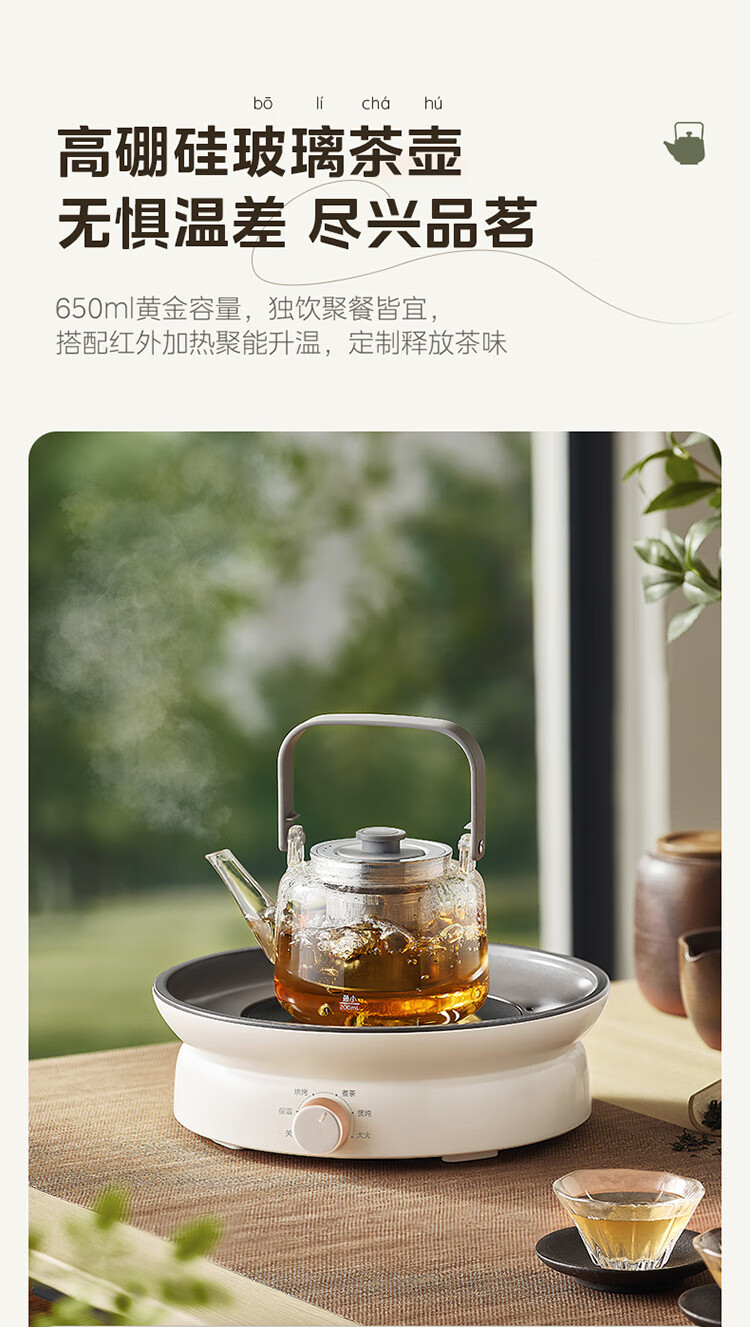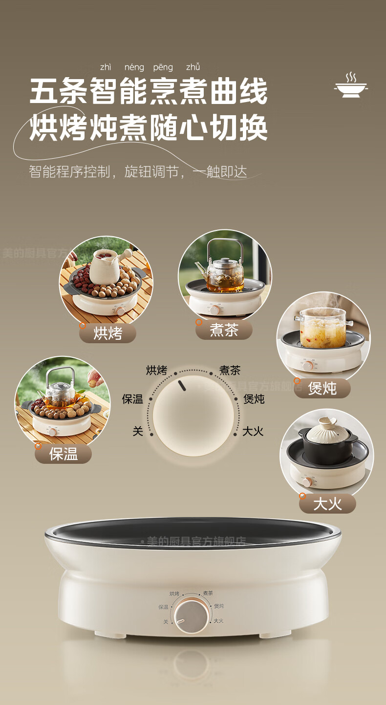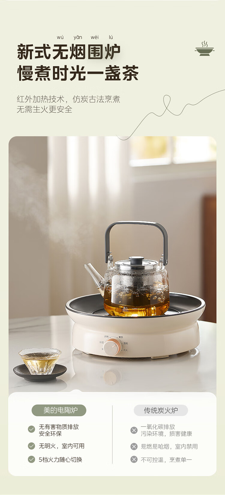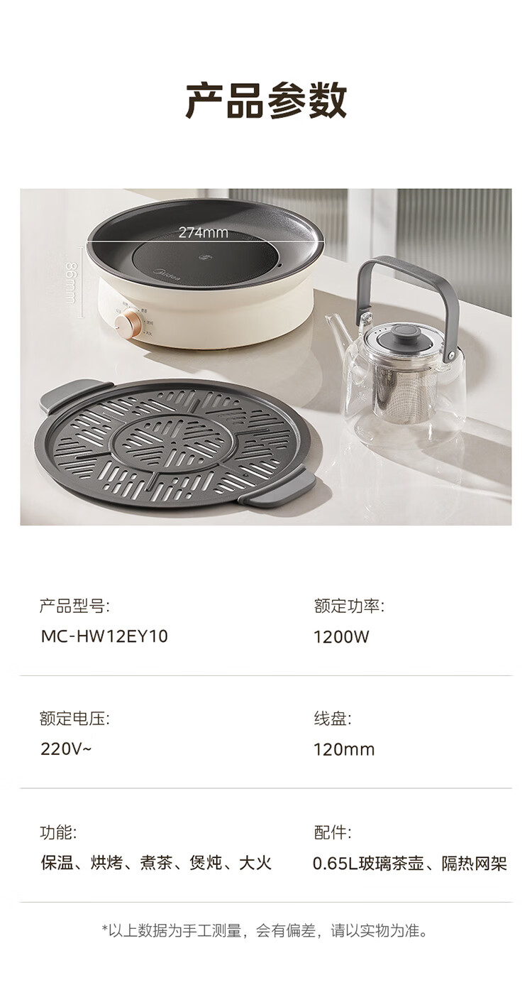 美的(Midea)围炉煮茶套装电陶炉煮茶器电烤炉 多功能玻璃茶壶炉远红外加热 室内户外露营围炉煮茶炉全套煮茶壶 【新式无烟围炉】配烤盘+茶壶