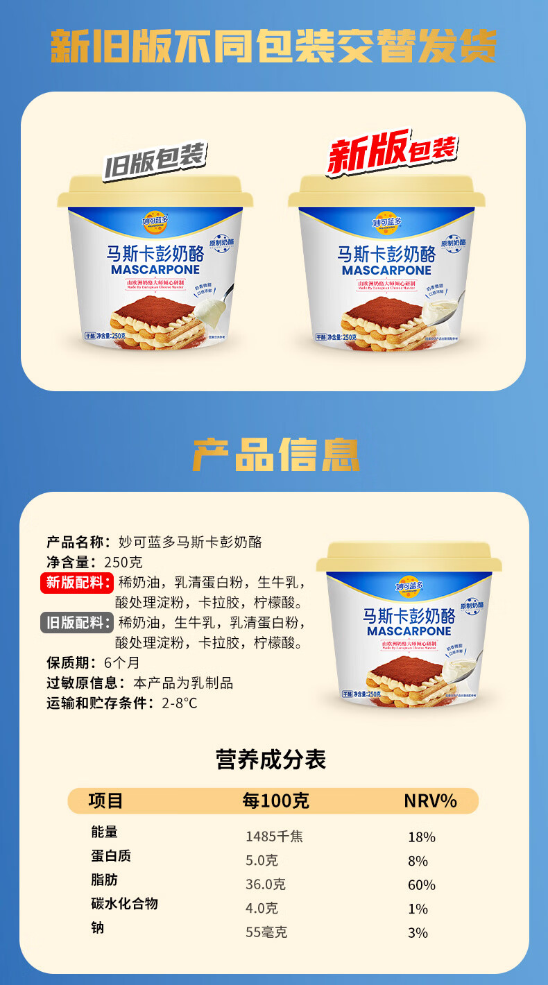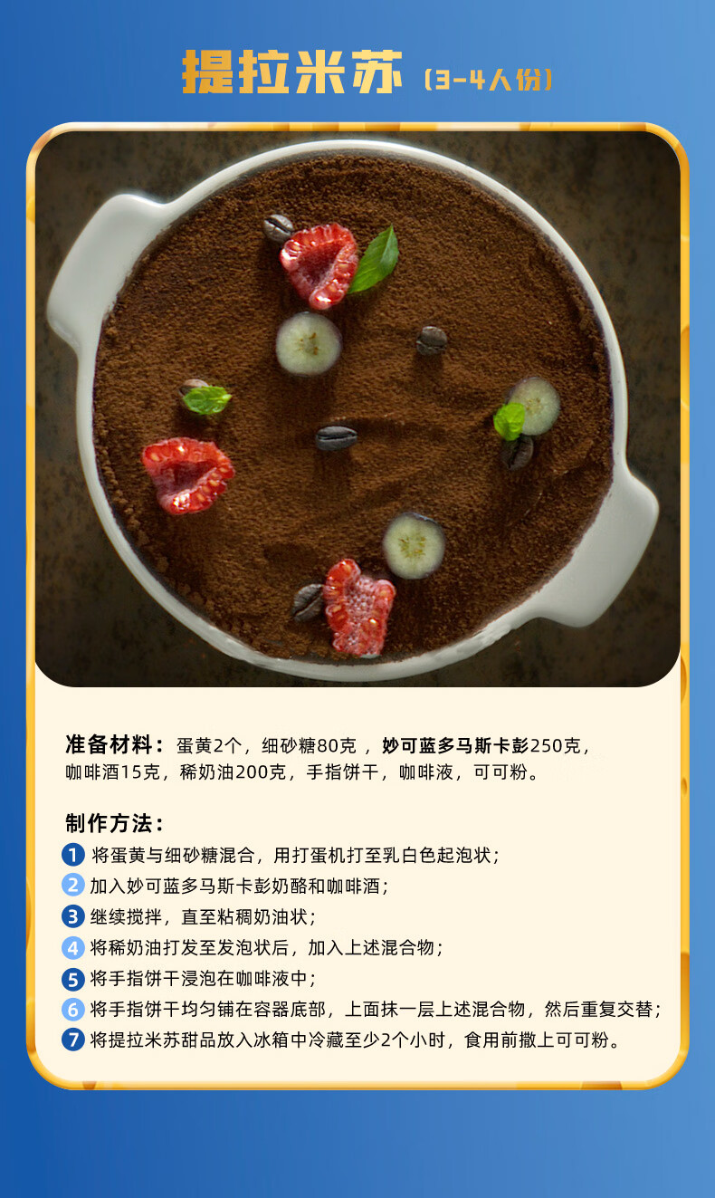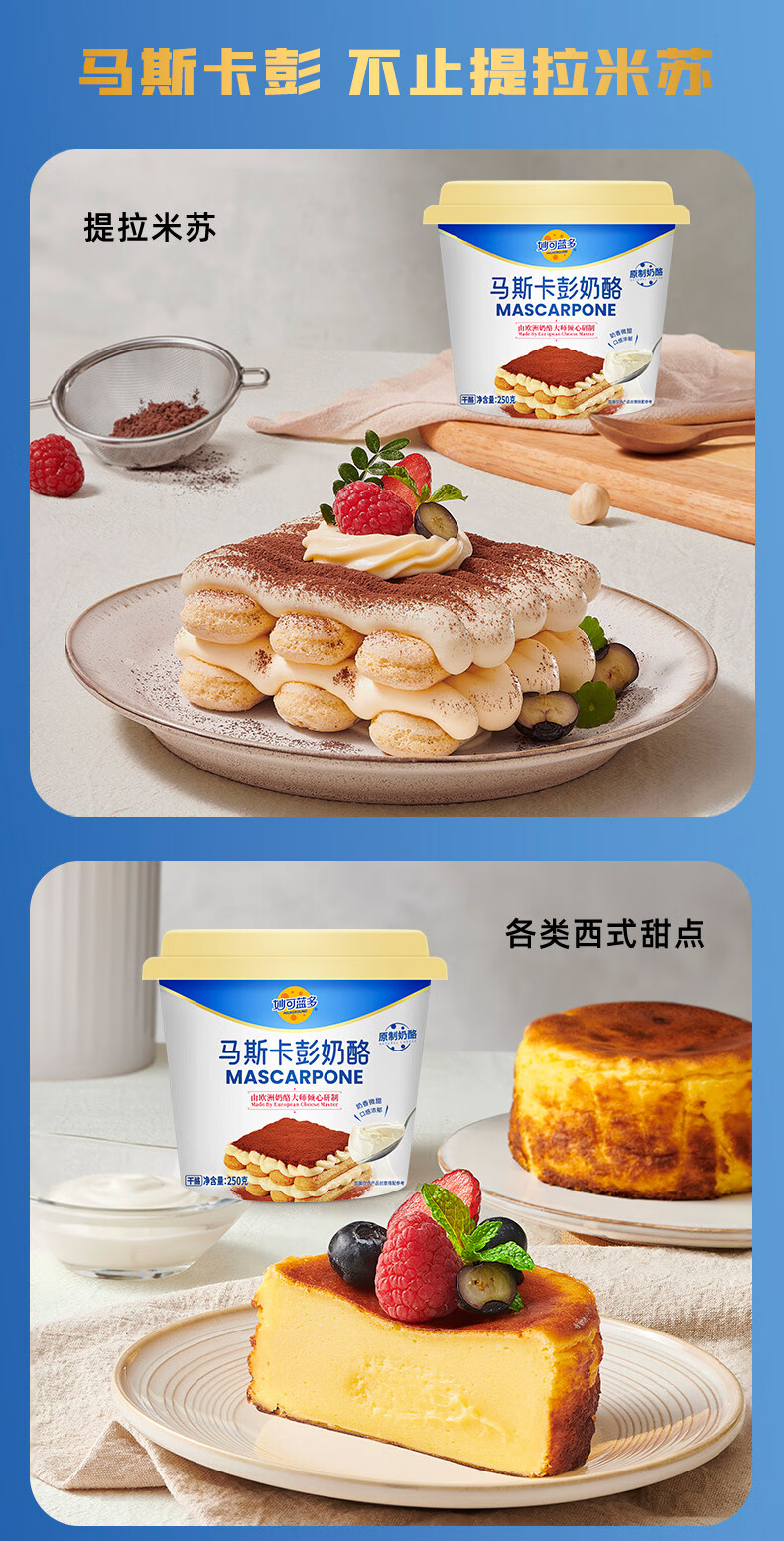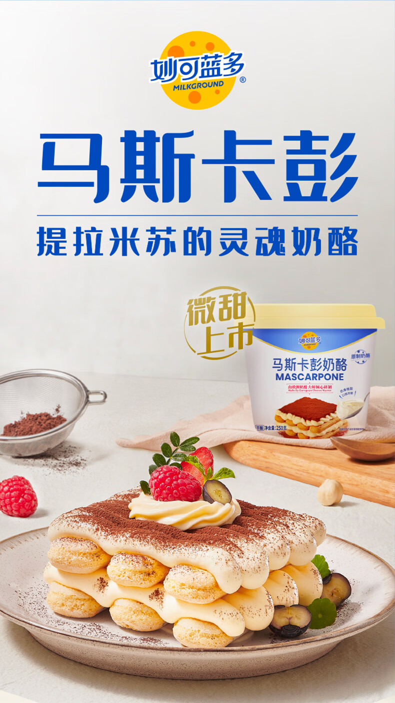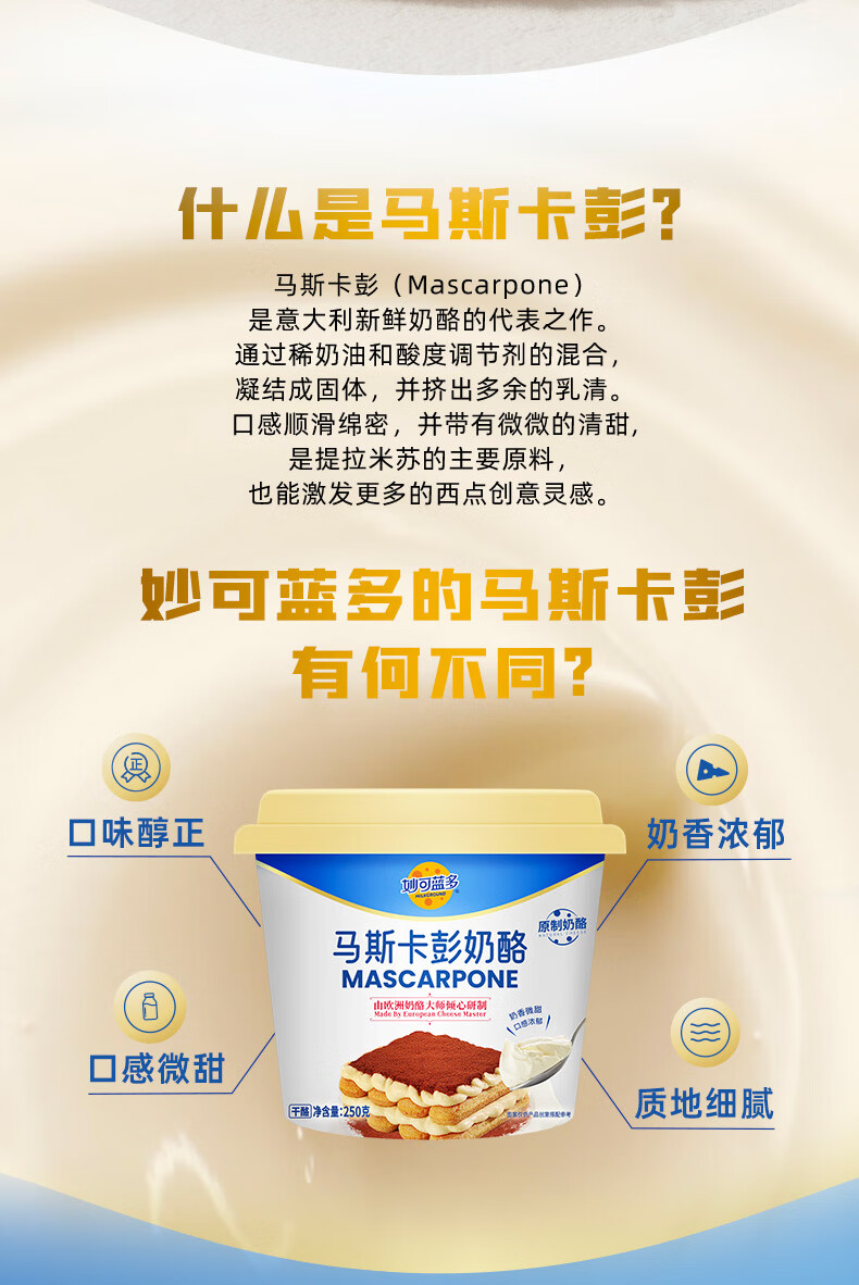 妙可蓝多马斯卡彭250g*2 原制 动物奶油奶酪芝士 提拉米苏/西点 烘焙原料