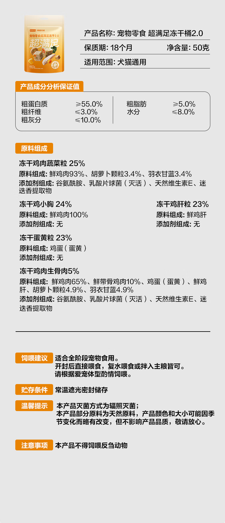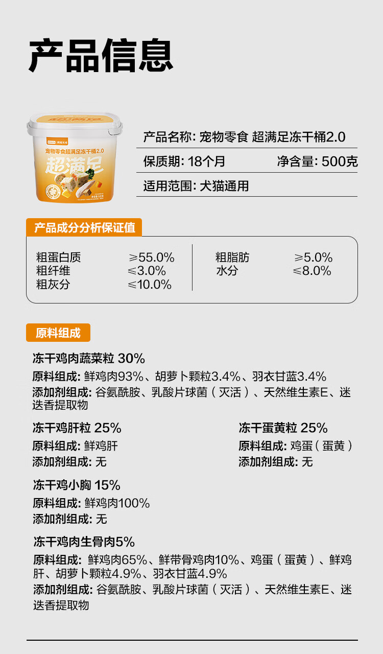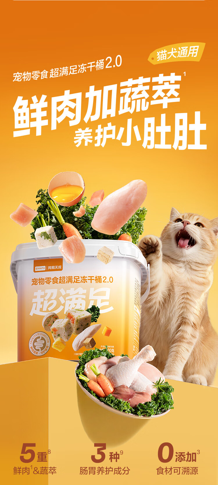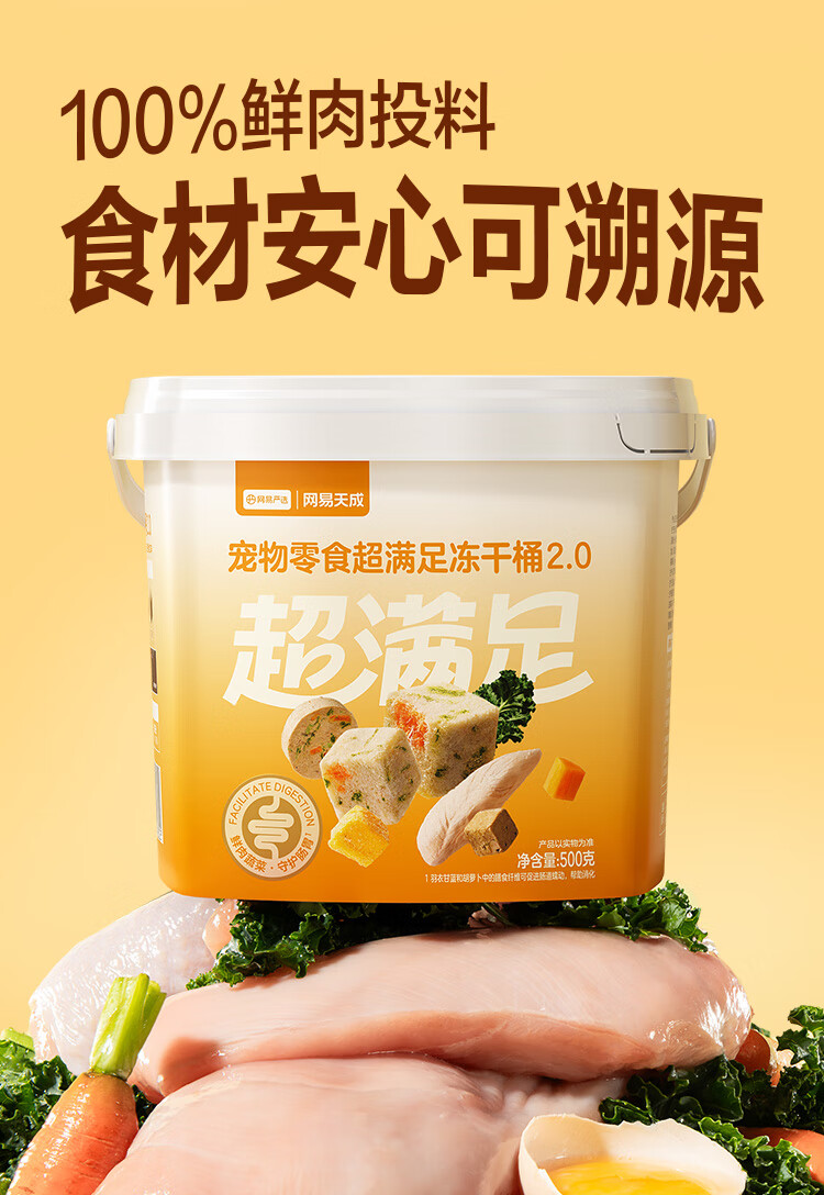 网易严选冻干桶鸡肉宠物零食100%鲜肉蛋黄五拼猫狗通用 呵护肠胃 50g
