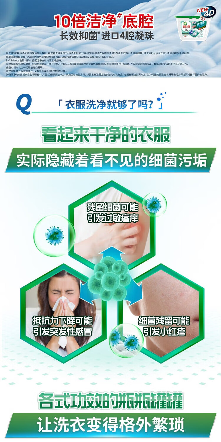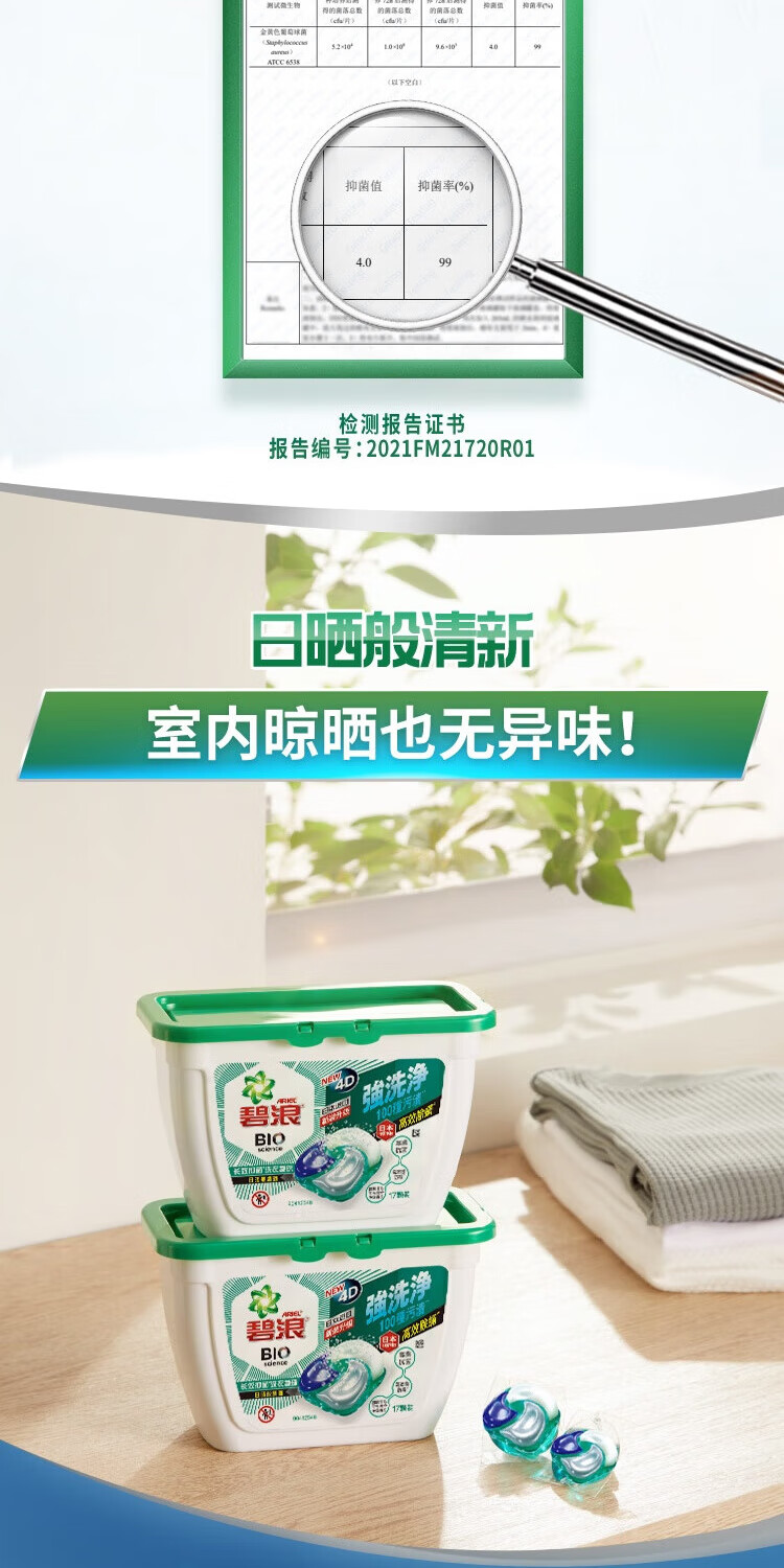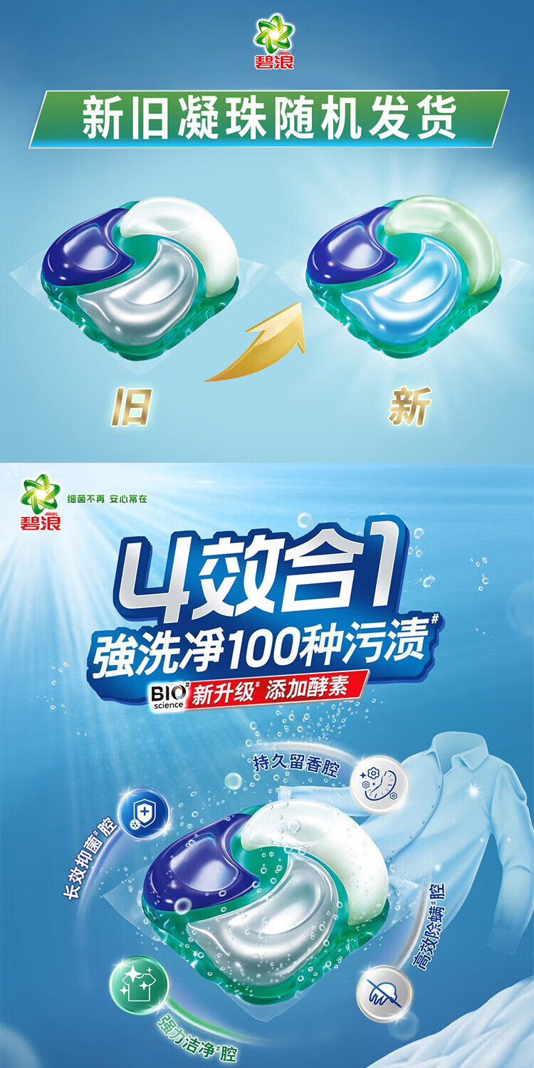 碧浪【年终特惠满减】长效抑菌四腔4D洗衣凝珠日晒般清新17颗盒装 四腔 4D洗衣凝珠102颗6盒【囤货装】
