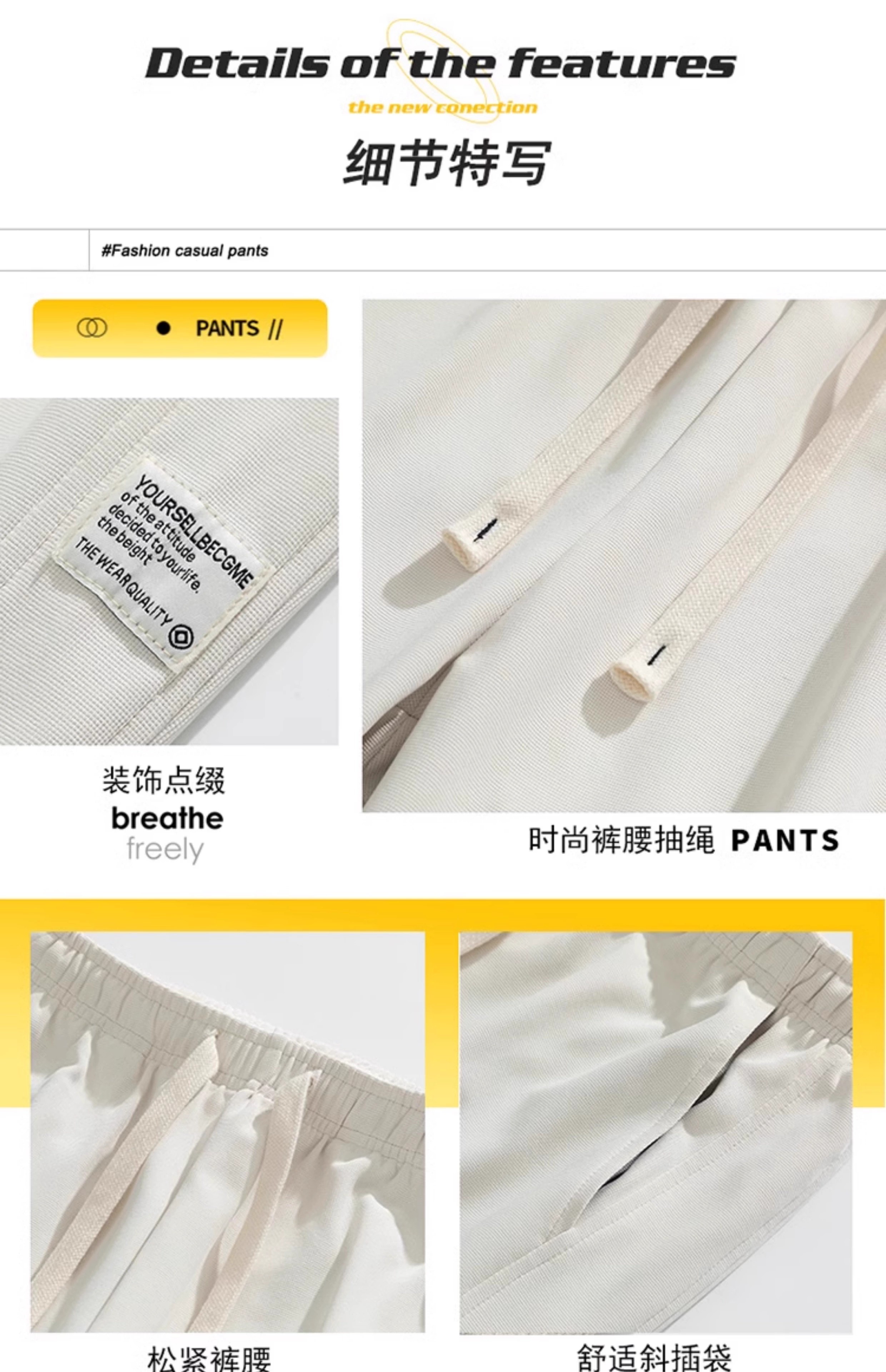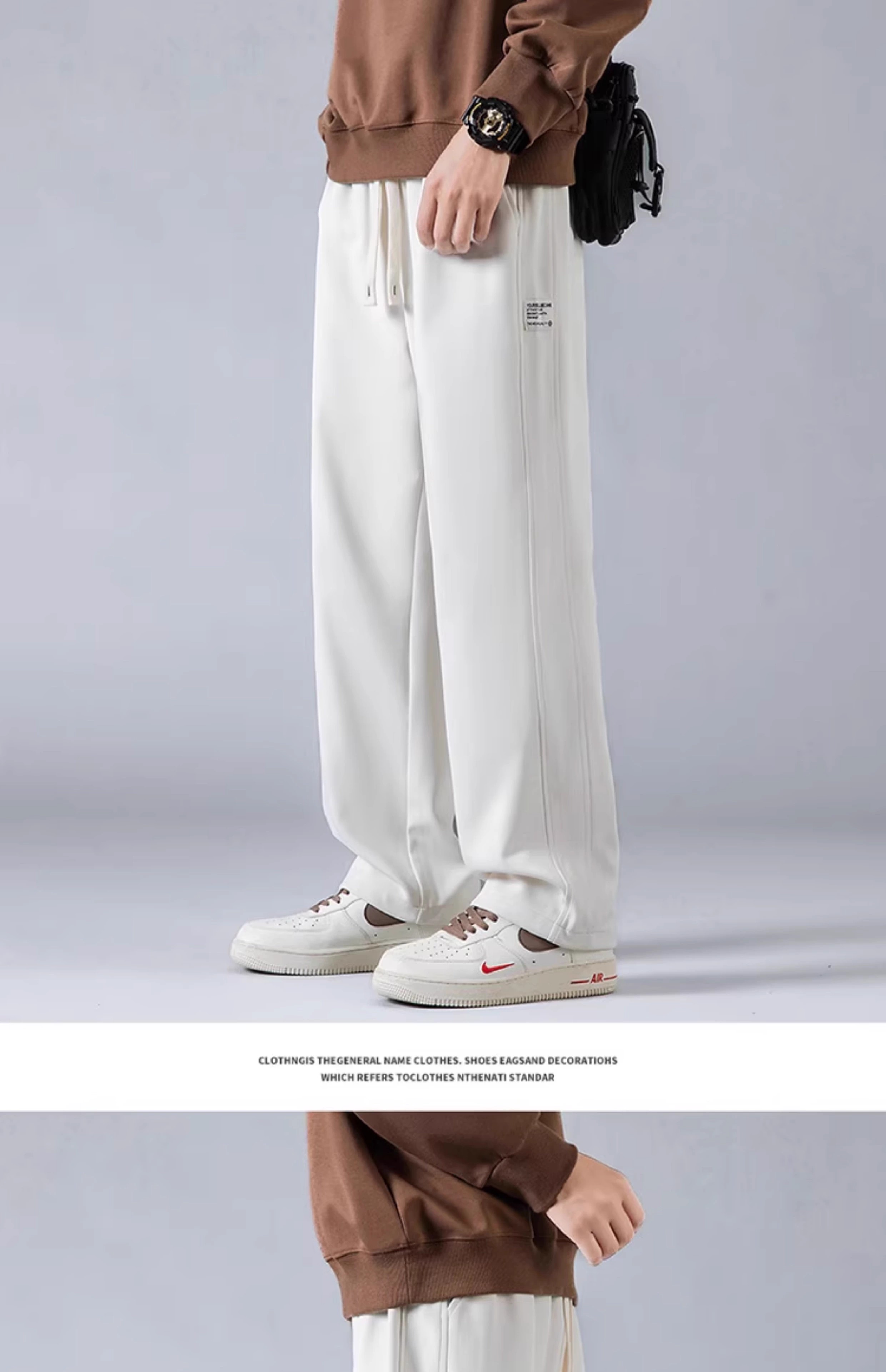 真维斯(Jeanswest)2026秋季青少年裤子男士白色卫裤宽松直筒垂感男生运动休闲长裤子 米白色 M