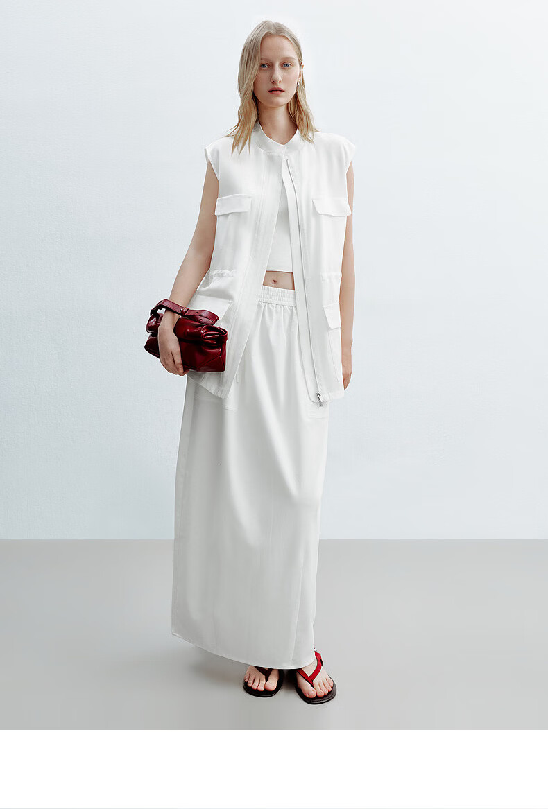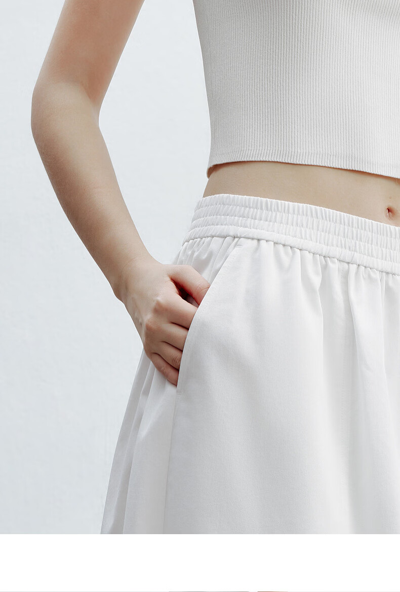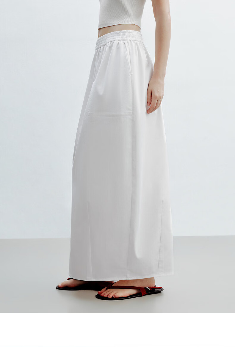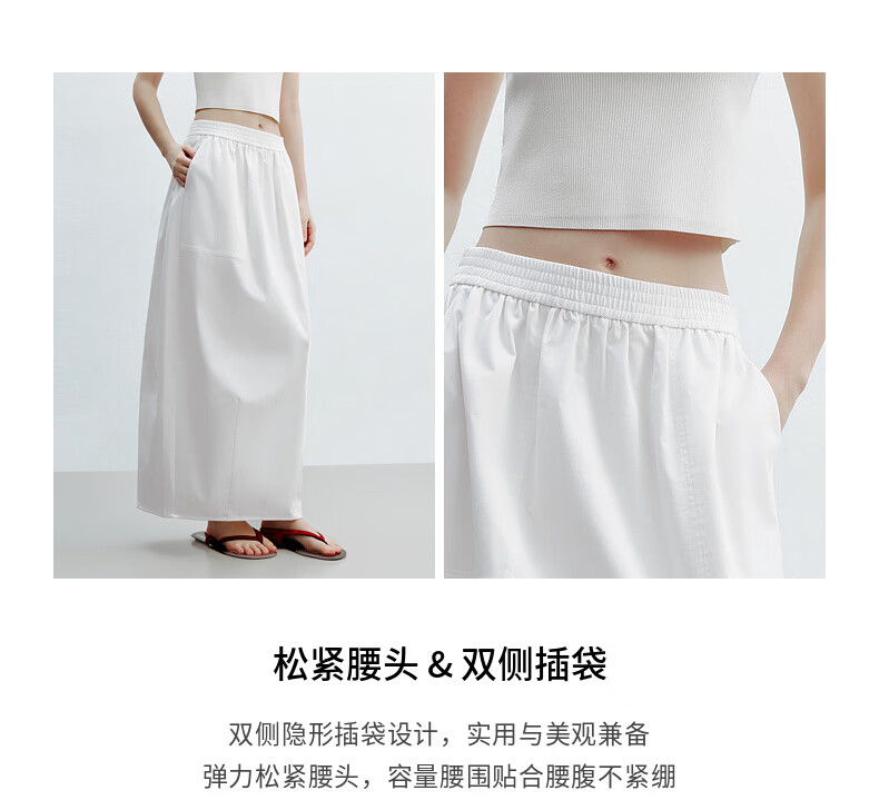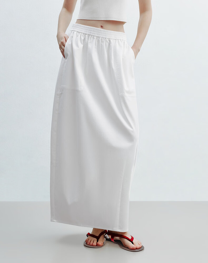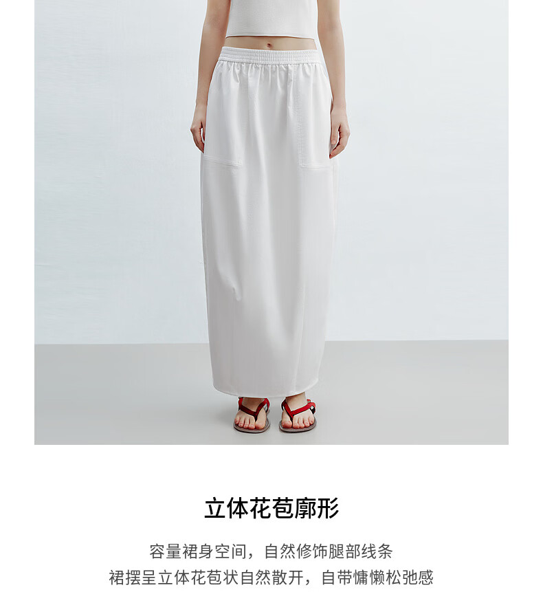 H's白色花苞半身裙女26夏季新款高级设计感莱赛尔混纺立体中长腰裙 本白 M