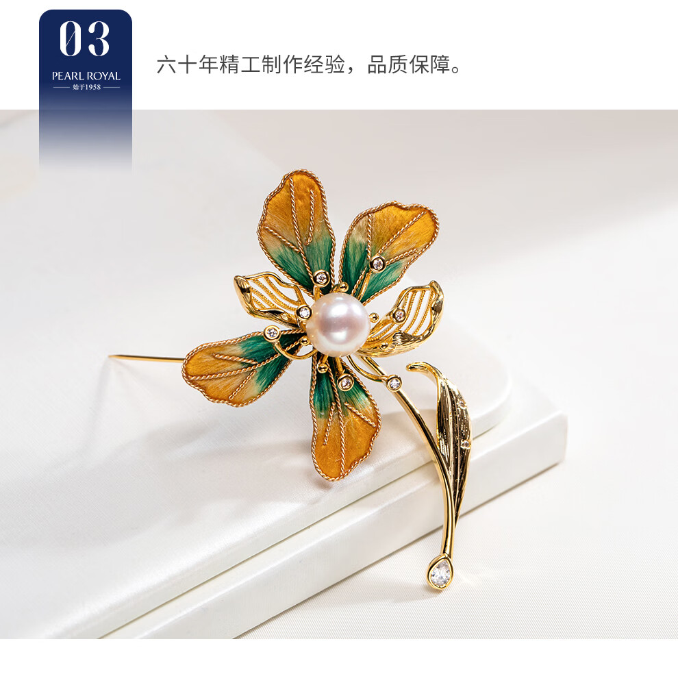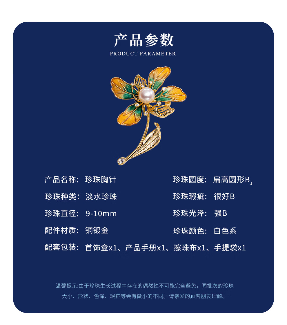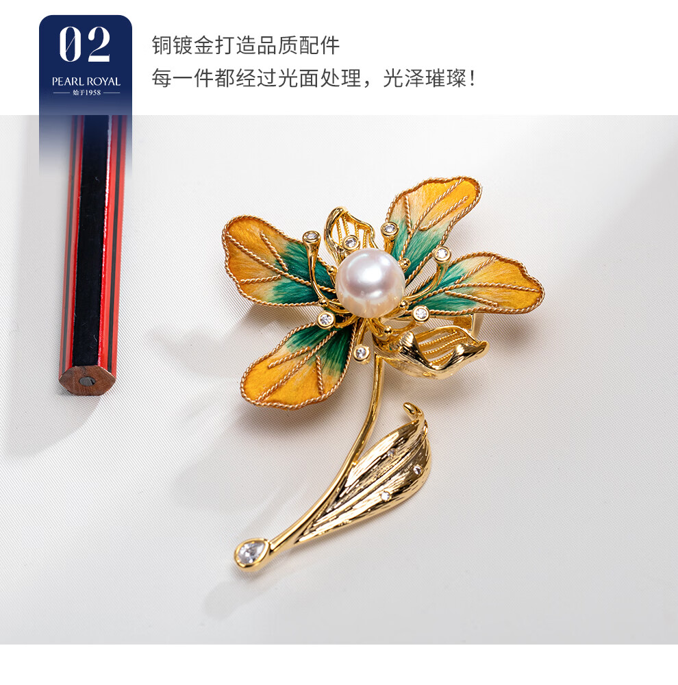 南珠宫丝绒花淡水珍珠胸针精致典雅送礼女H098D-J 9.0-10.0mm