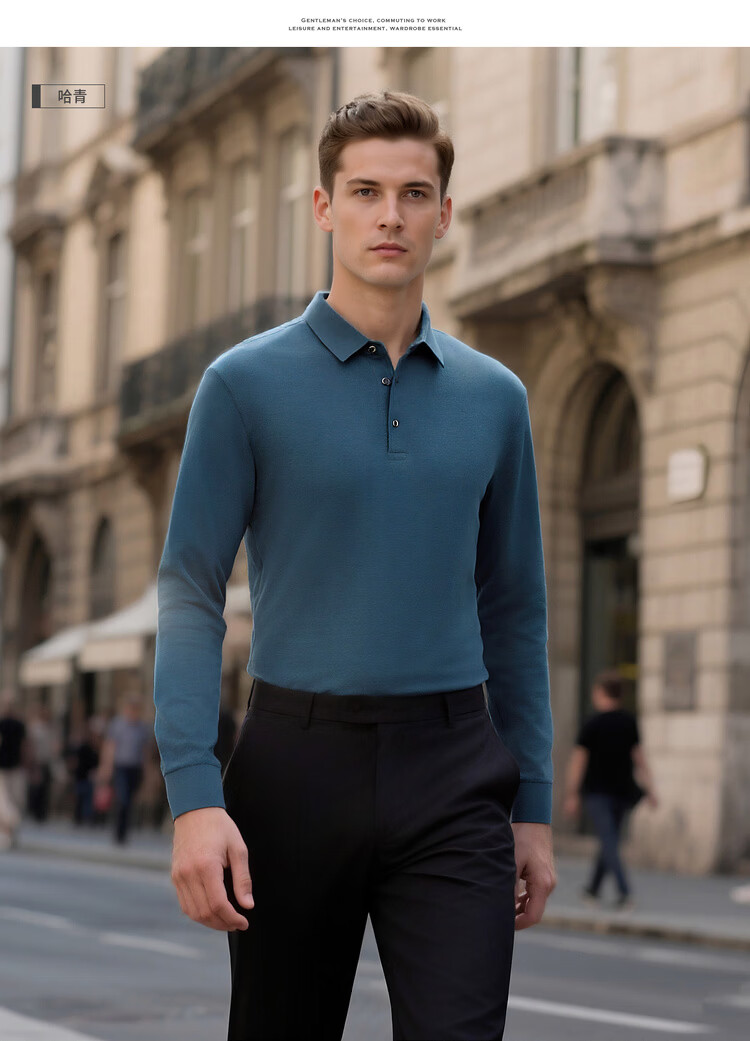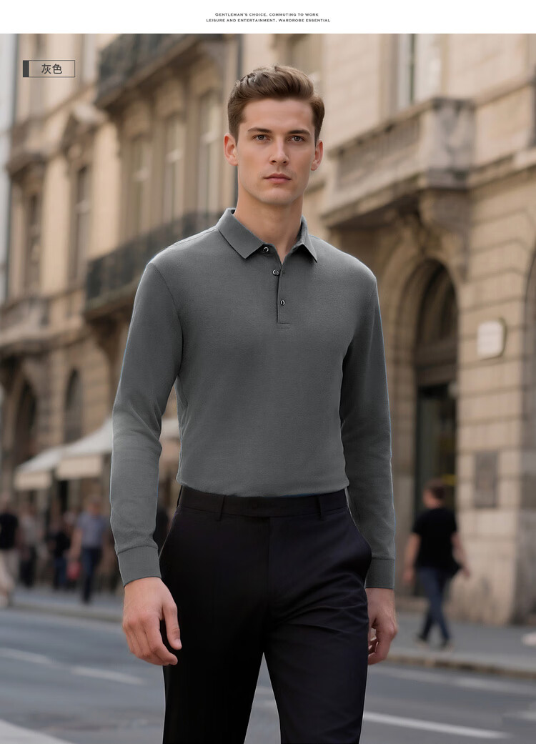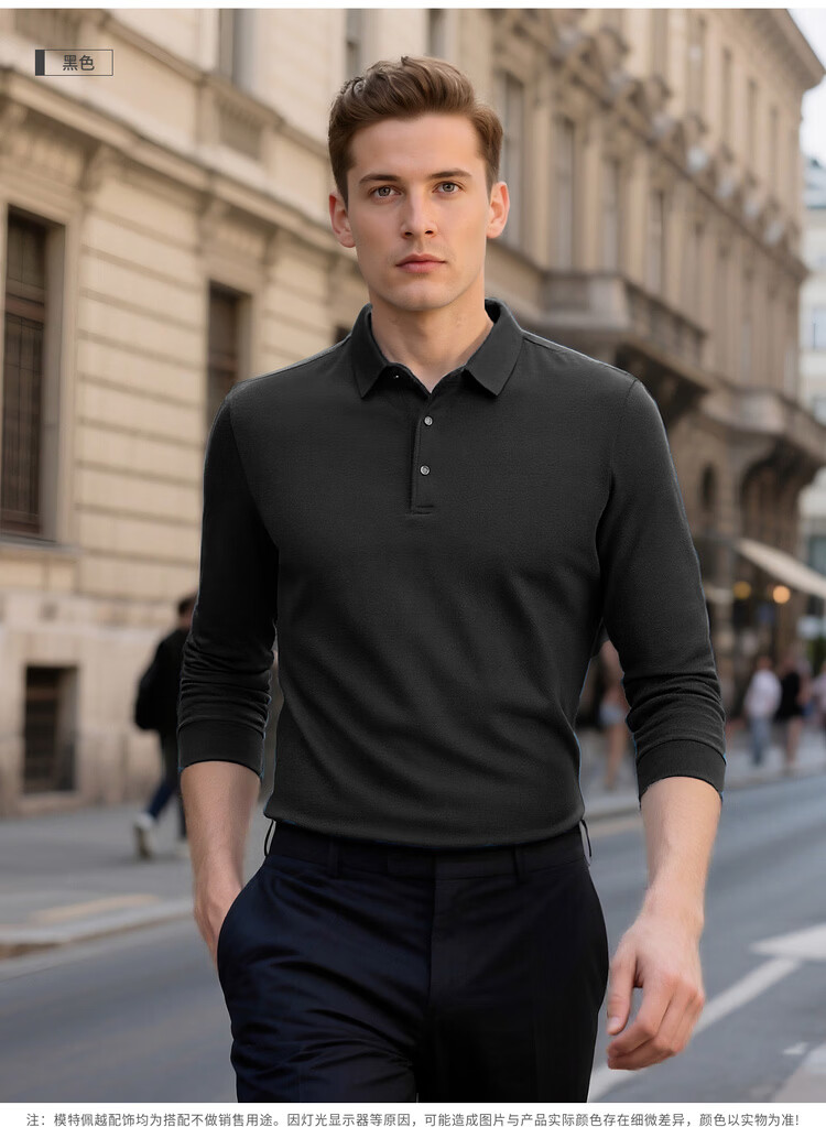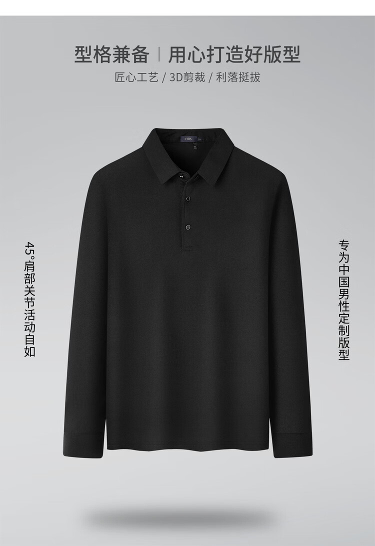 杉杉(FIRS)【柔软亲肤】春秋爆款商务polo衫舒适翻领百搭长袖t恤男体恤 黑色 L 175/92A/115