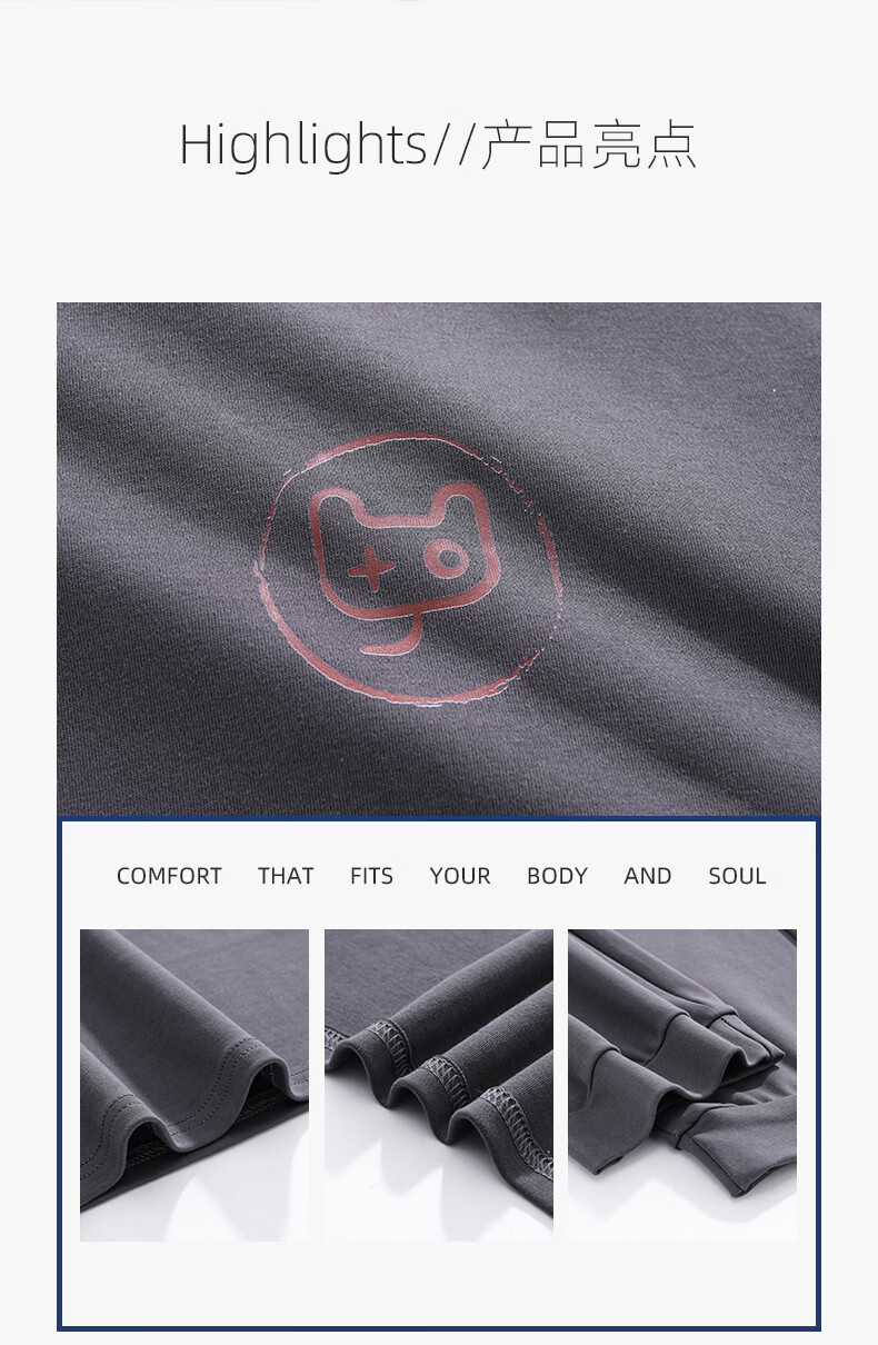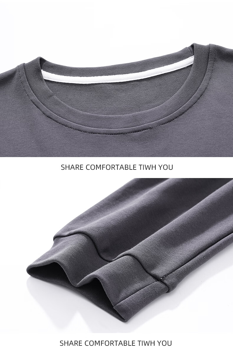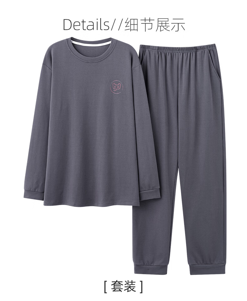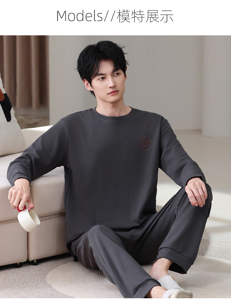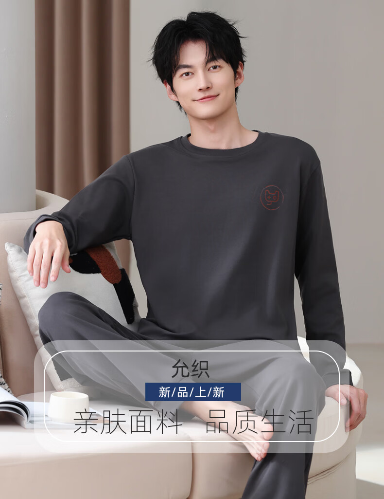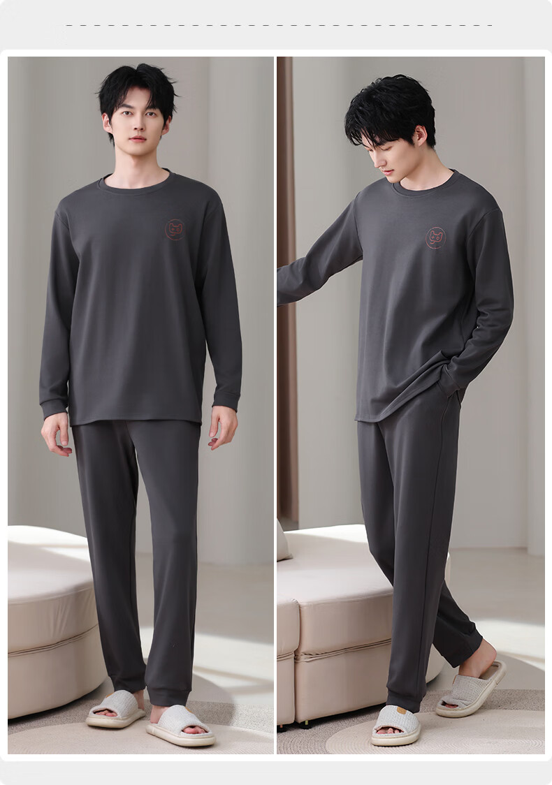 允织莱卡纯棉男睡衣春秋季休闲套头长袖薄款男士家居服可外穿大码套装 8610-灰色 L (170) :建议100-135斤穿着