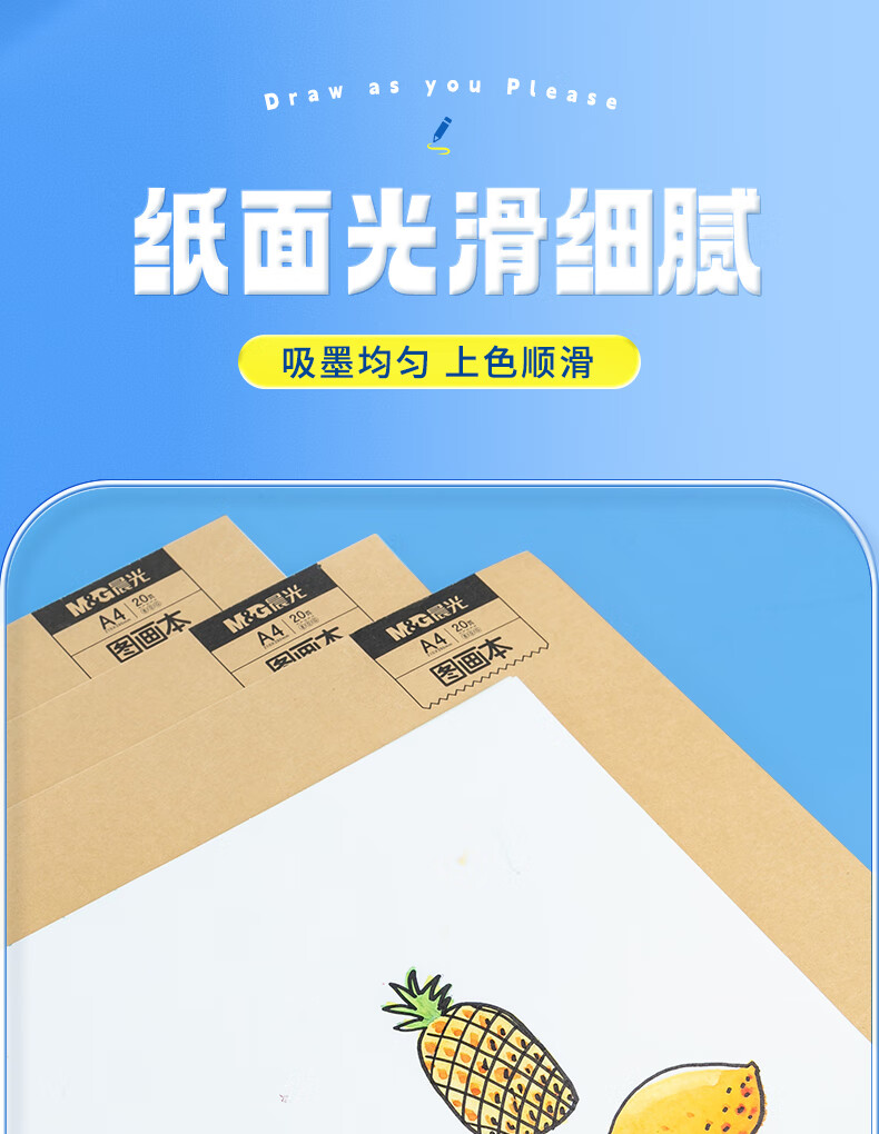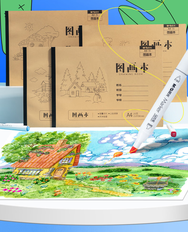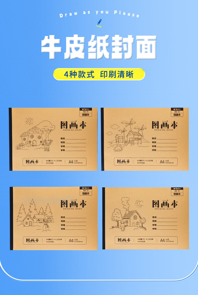晨光(M&G)文具图画本一年级A4 绘画本儿童画画本小学生专用美术本3-6年级幼儿园20张/4本TA4299BG开学必备
