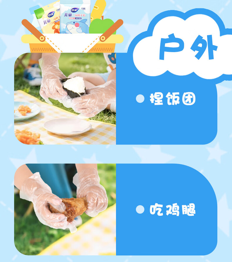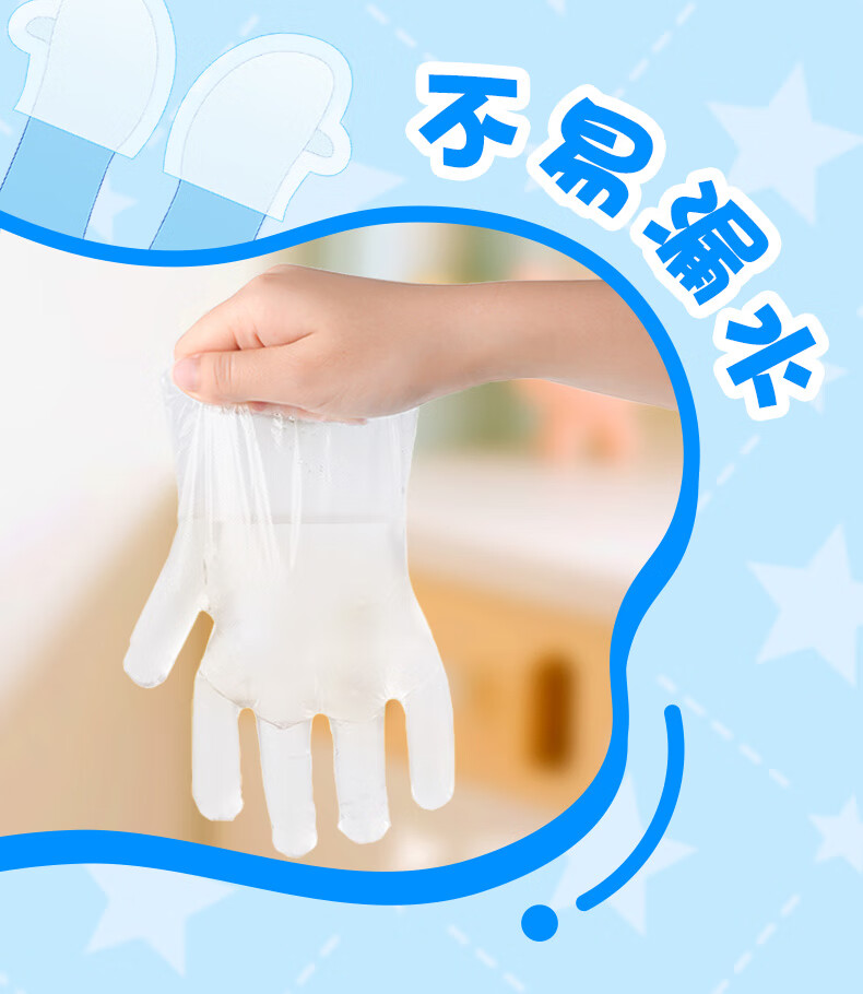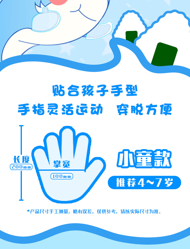 妙洁儿童一次性手套200只 推荐4-7岁 食品级餐饮画画手套 独立包装