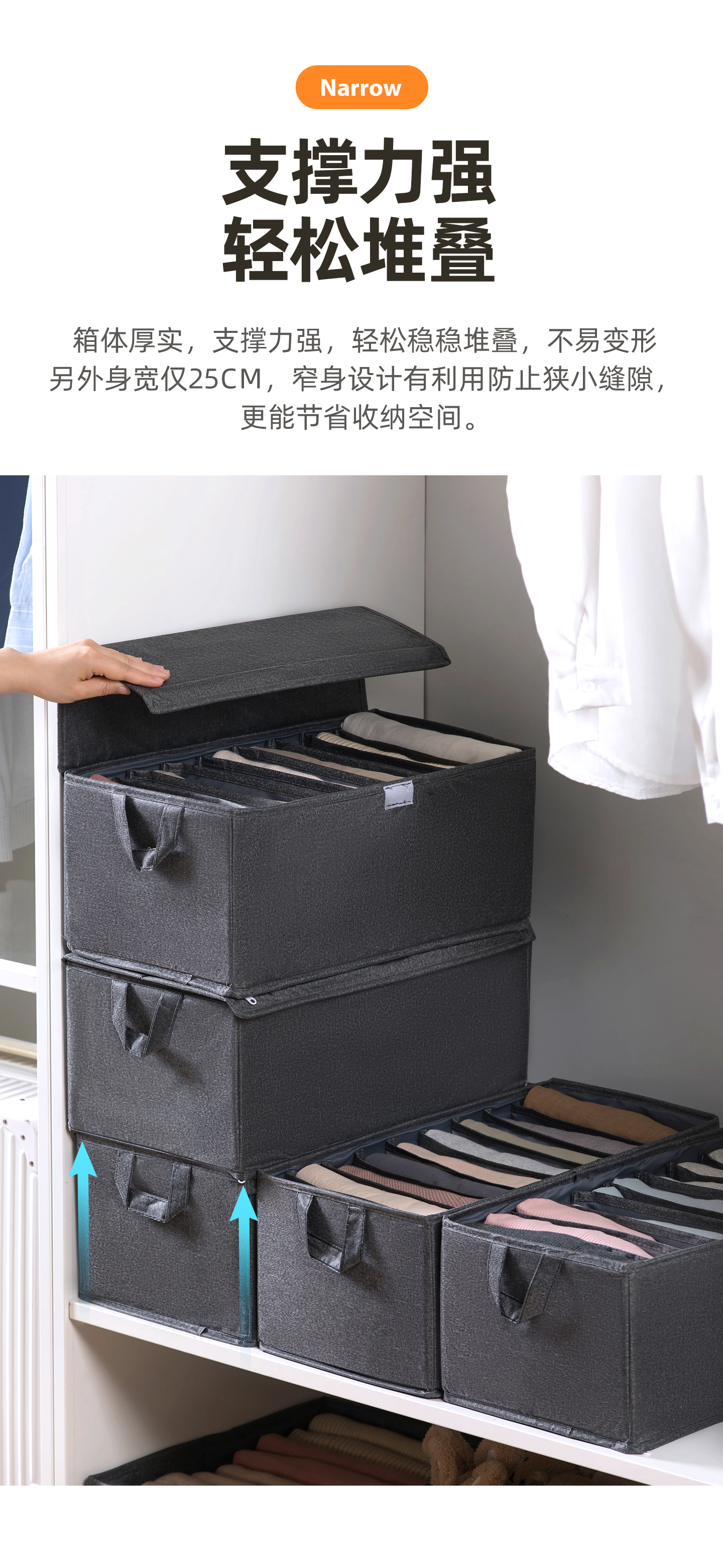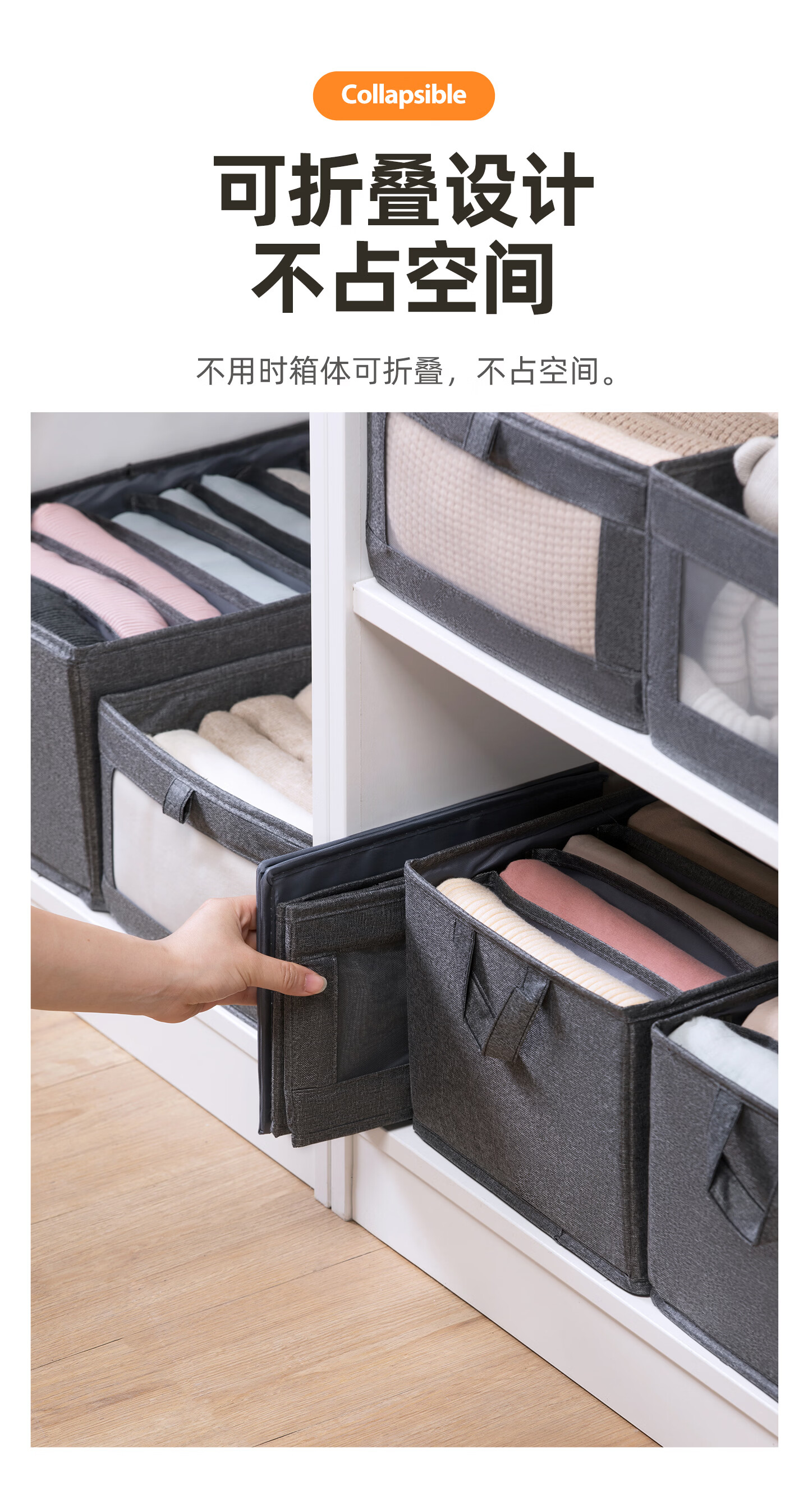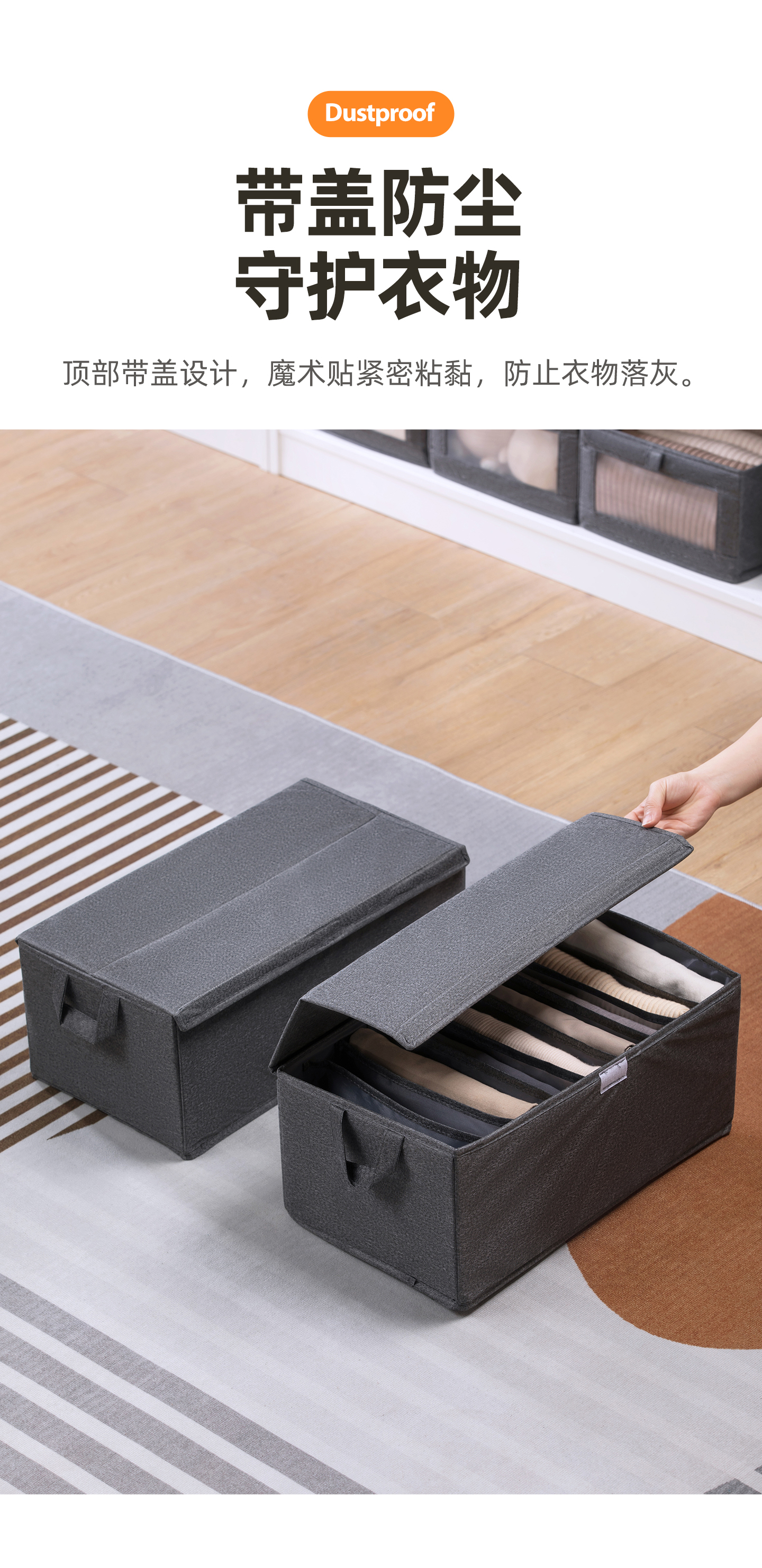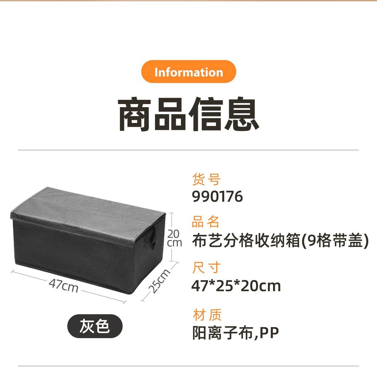 茶花收纳箱布艺百纳箱衣物收纳盒衣柜整理箱家用被子棉麻收纳袋 灰色1个【9分隔】带盖布艺收纳筐