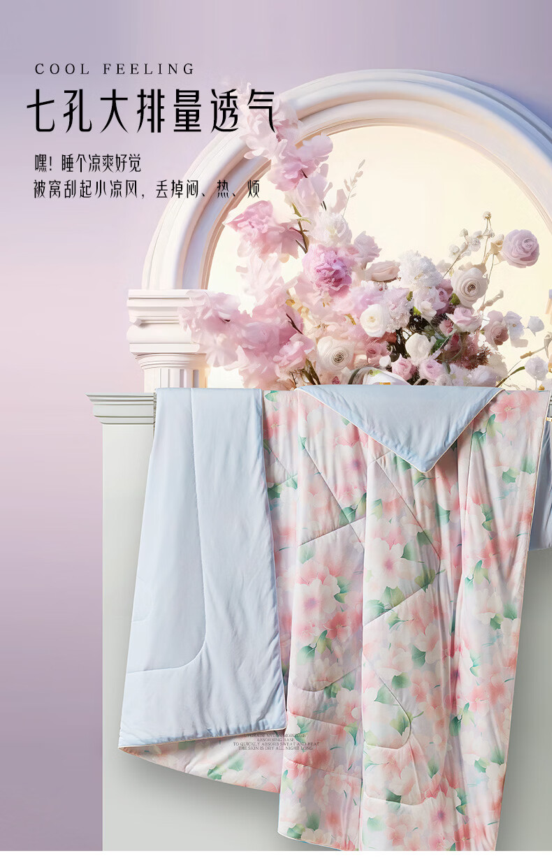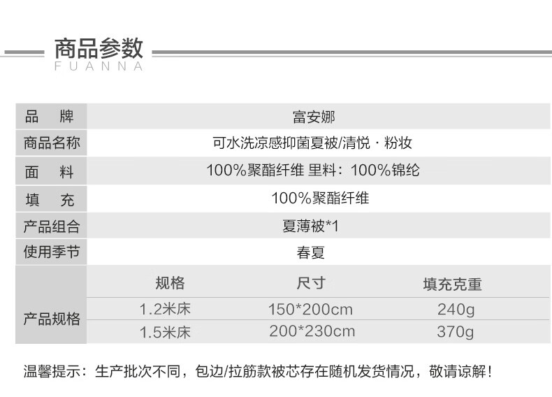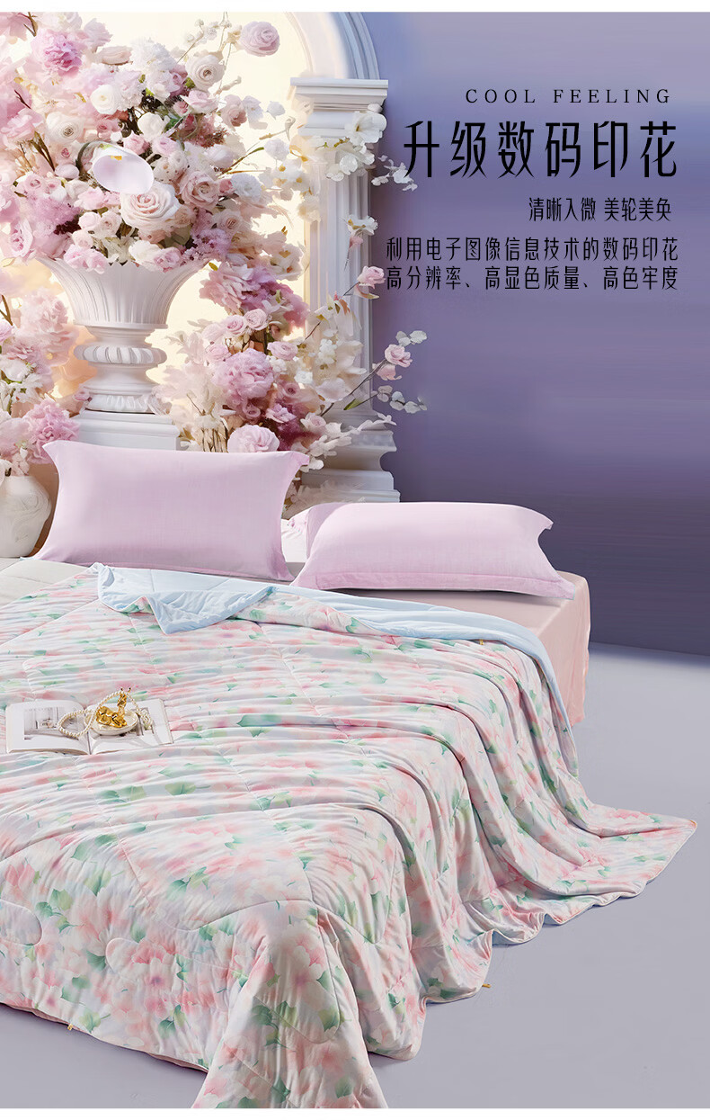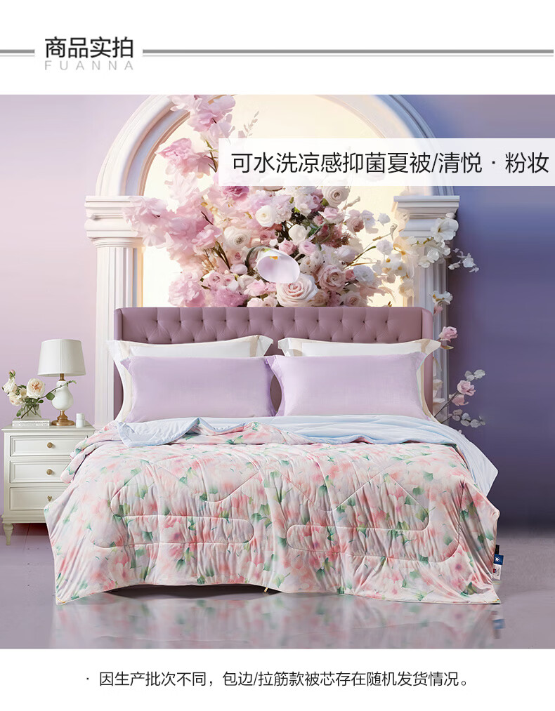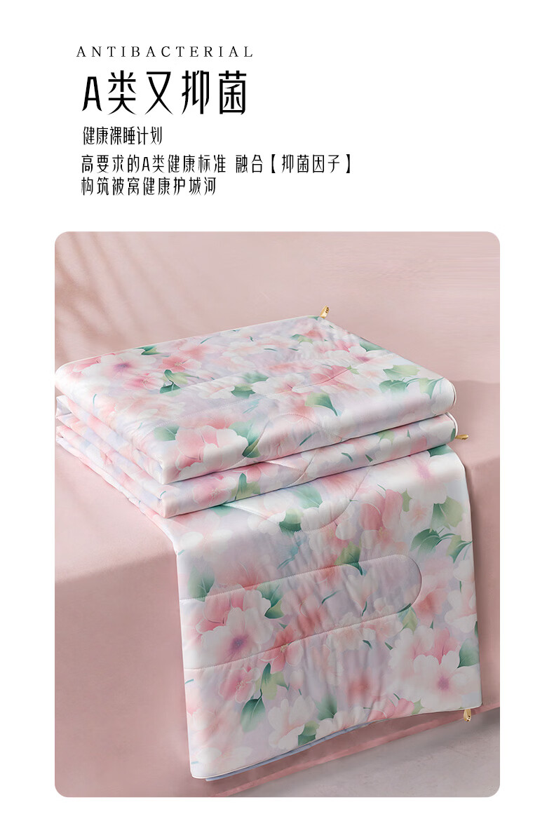 富安娜 抑菌凉感空调被子 可水洗凉感被夏季家用夏凉被薄被 A类可水洗凉感抑菌夏被-粉妆 1.2米/1.5米床适用 150cm*200cm
