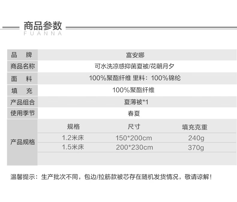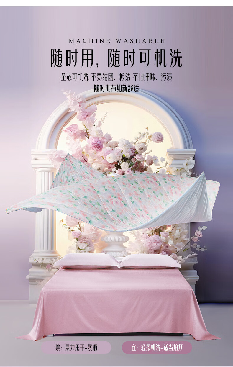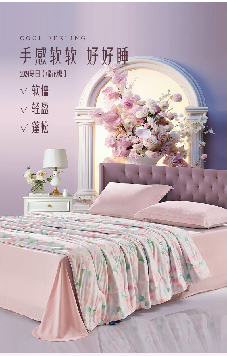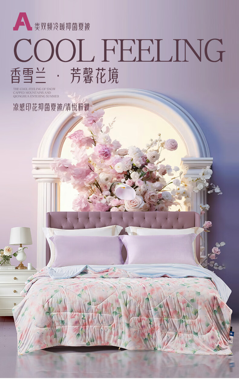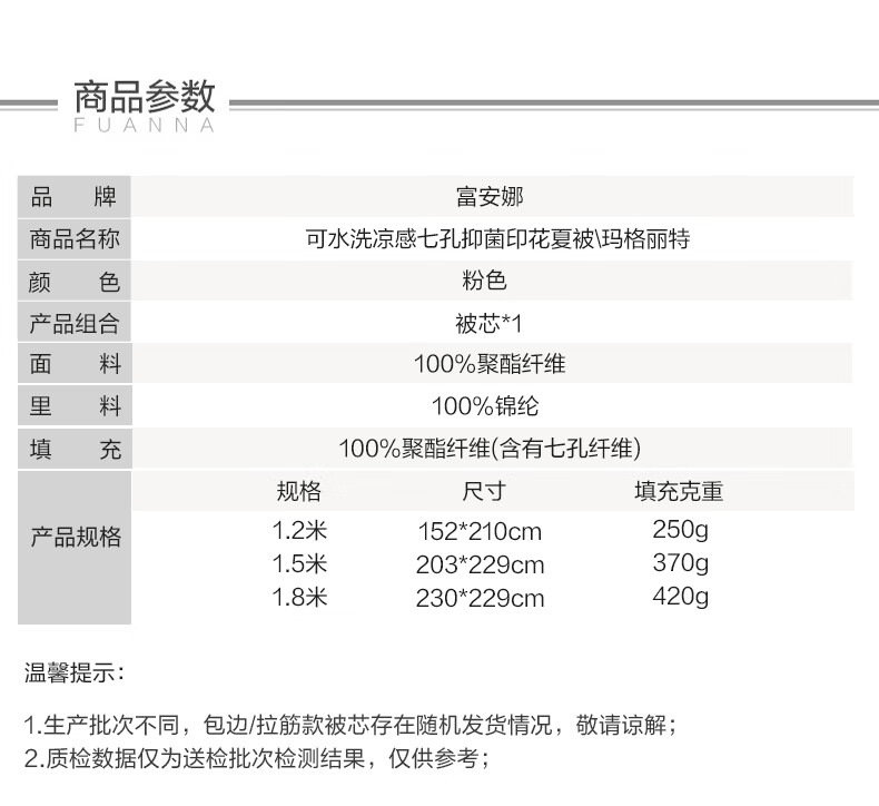 富安娜 抑菌凉感空调被子 可水洗凉感被夏季家用夏凉被薄被 A类可水洗凉感抑菌夏被-粉妆 1.2米/1.5米床适用 150cm*200cm