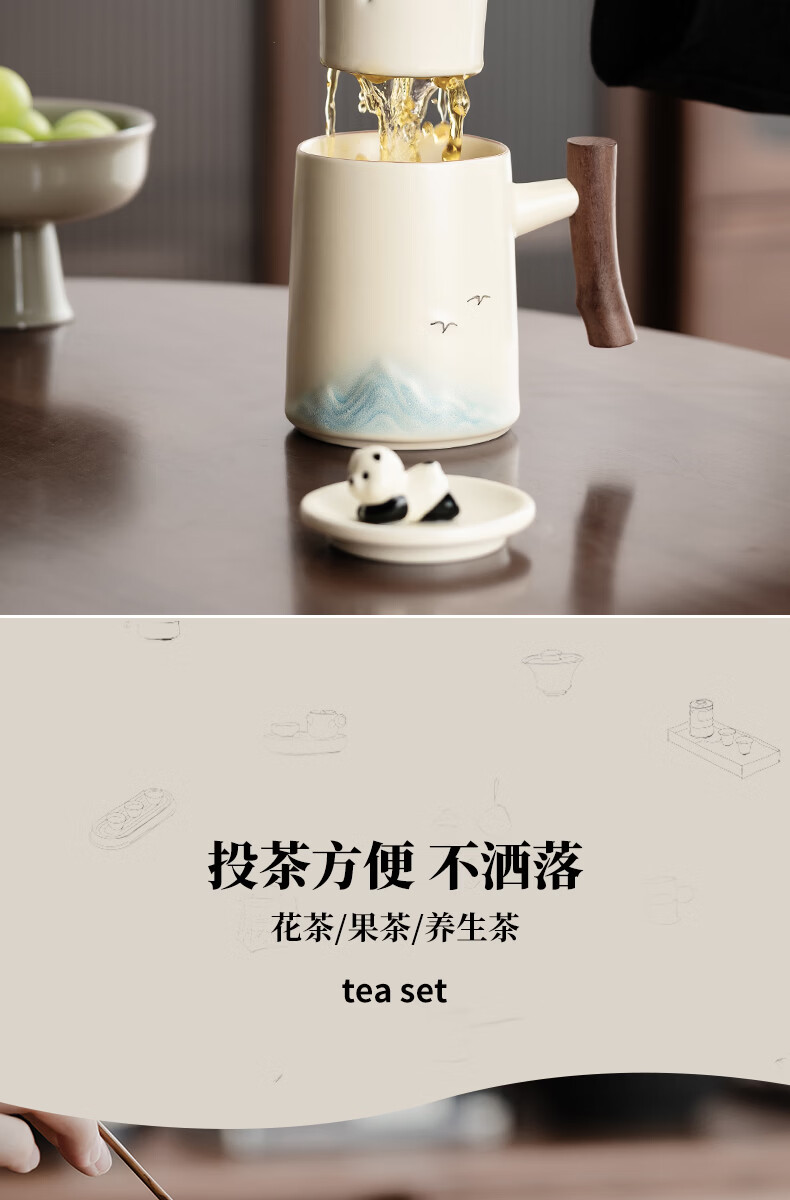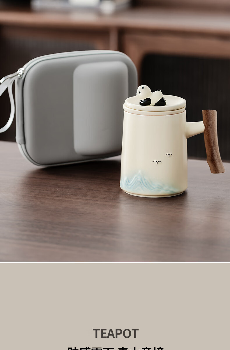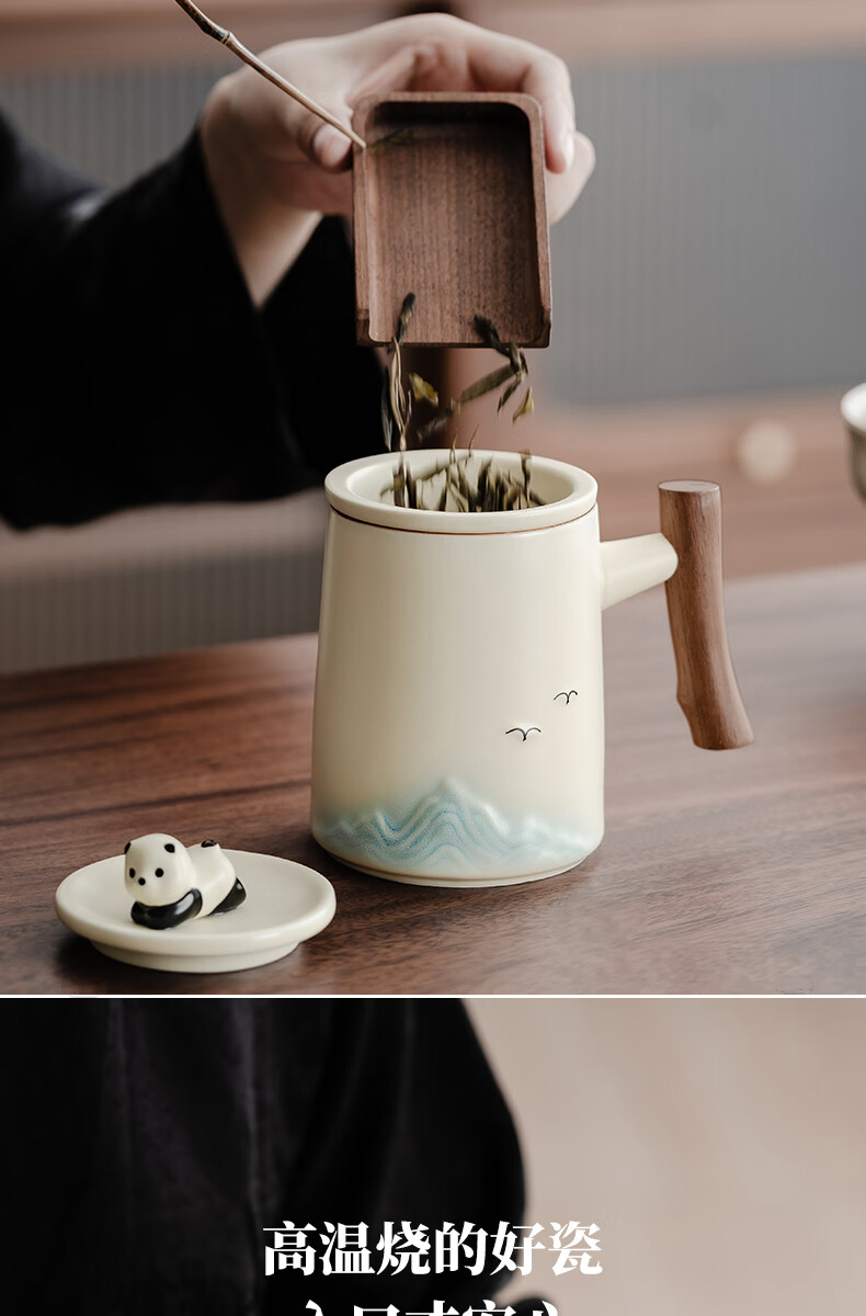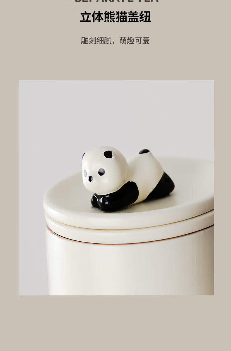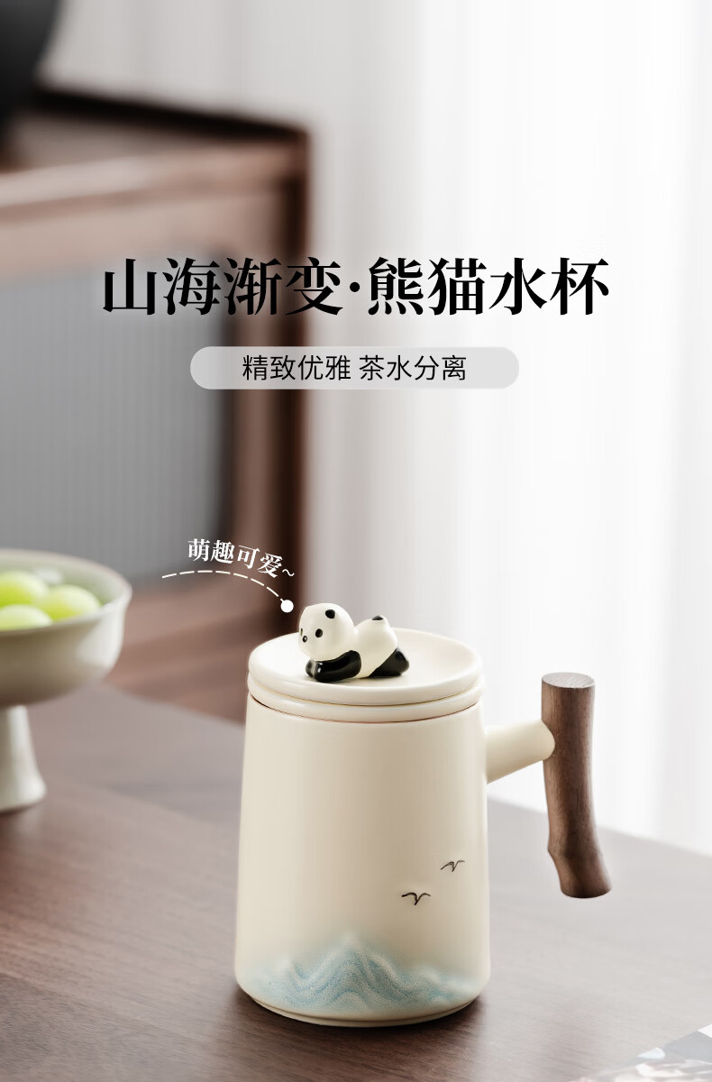 不拙茶水分离泡茶杯家用带盖喝水马克杯办公室高颜值大容量男女陶瓷杯 【彩盒装】熊猫渐变蓝水杯