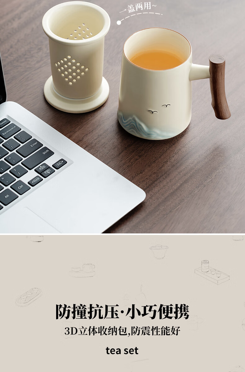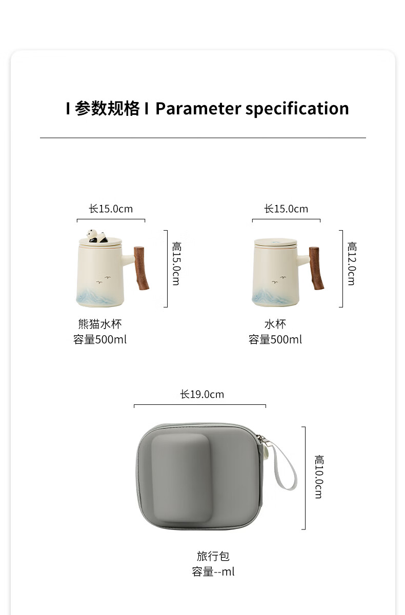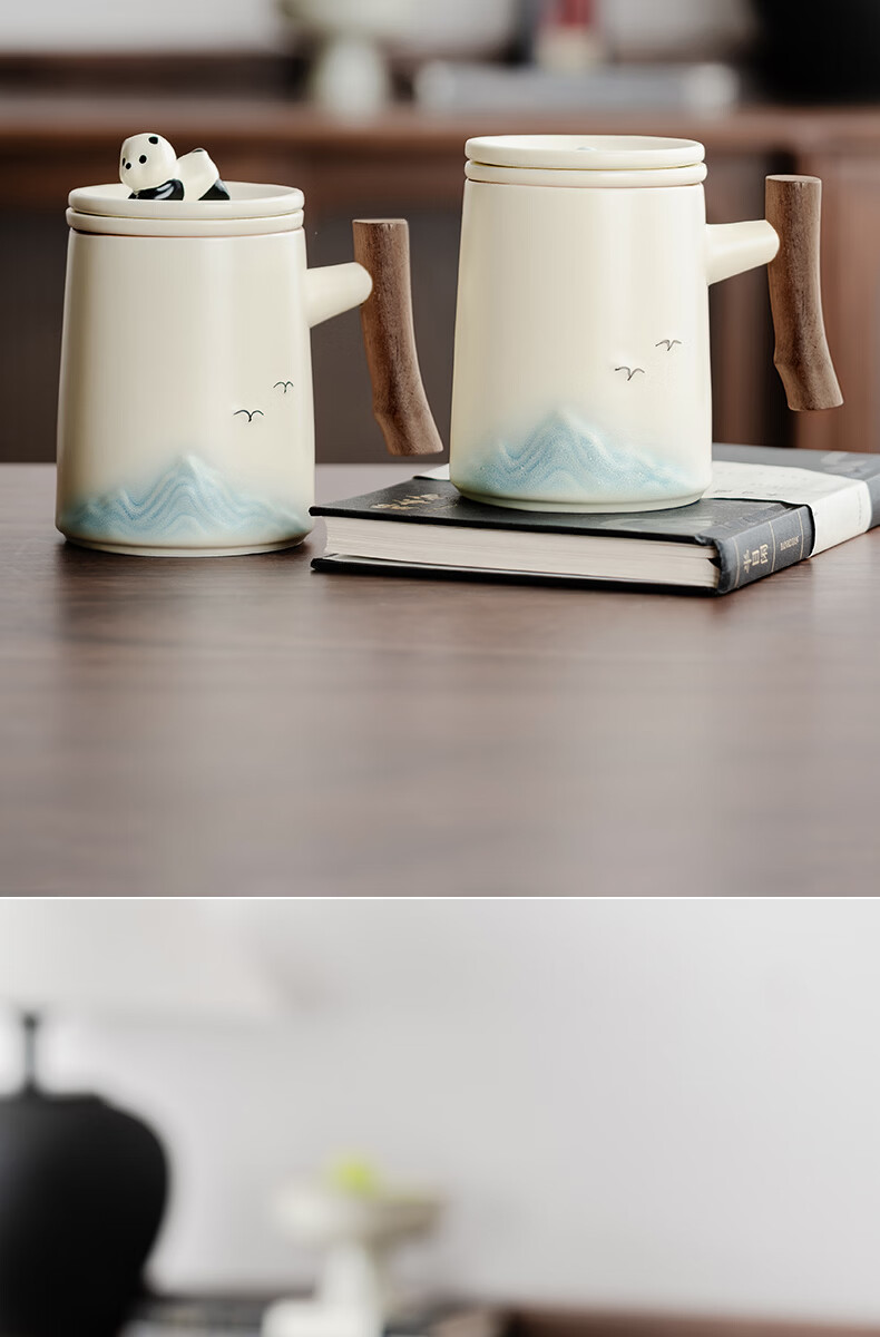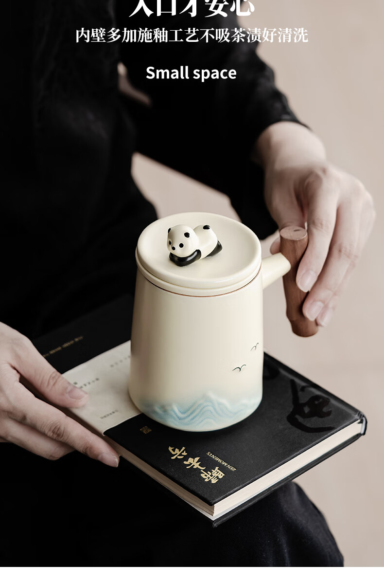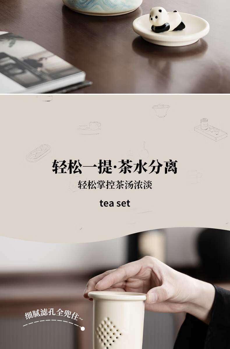 不拙茶水分离泡茶杯家用带盖喝水马克杯办公室高颜值大容量男女陶瓷杯 【彩盒装】熊猫渐变蓝水杯