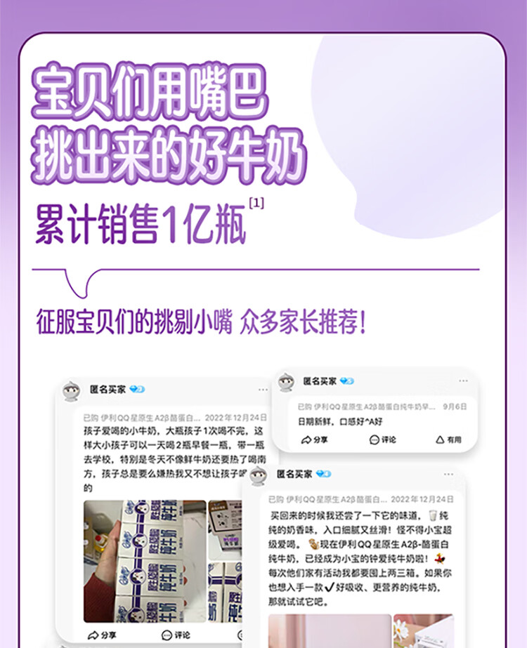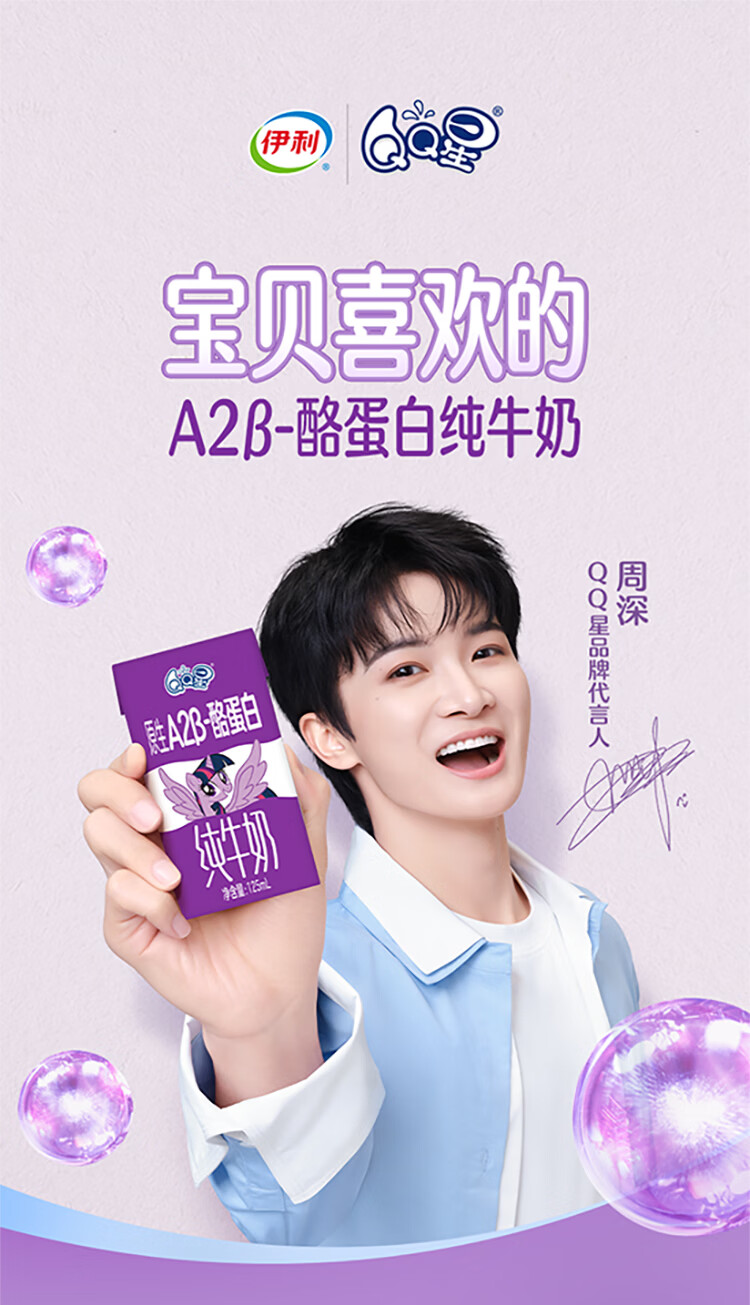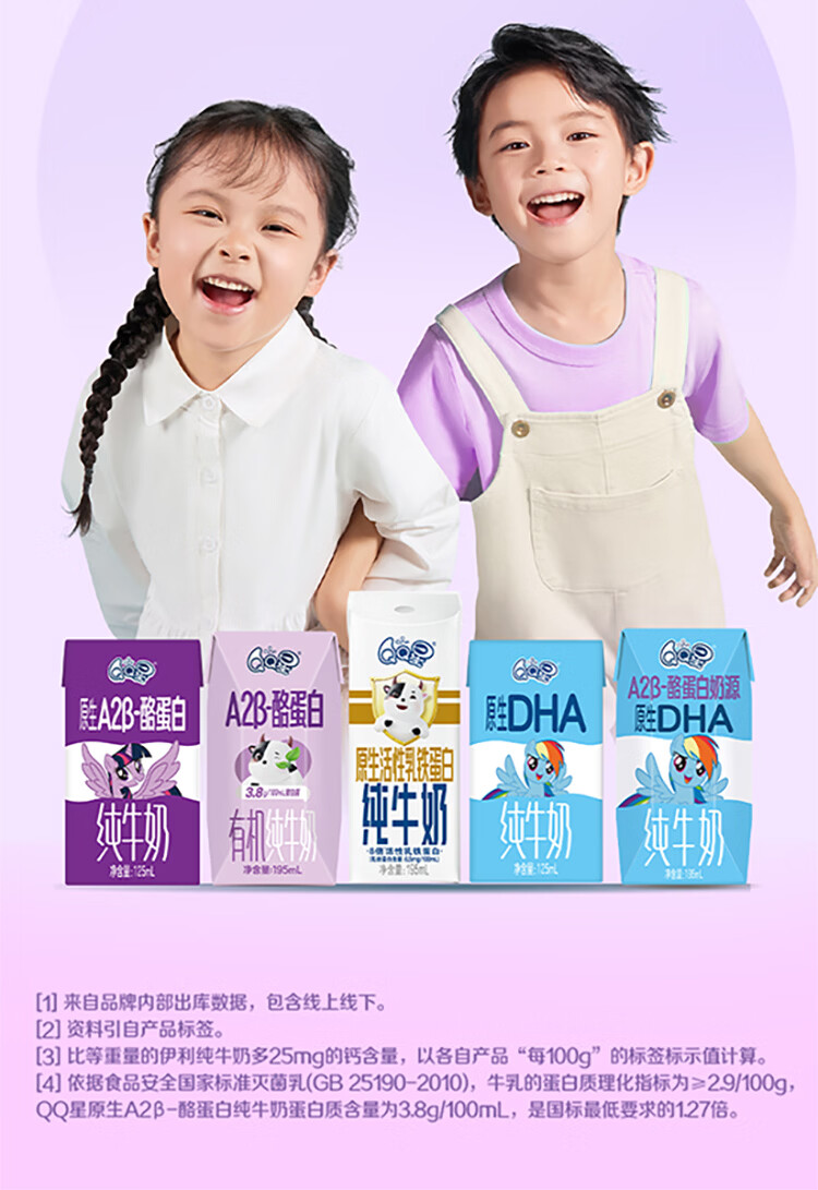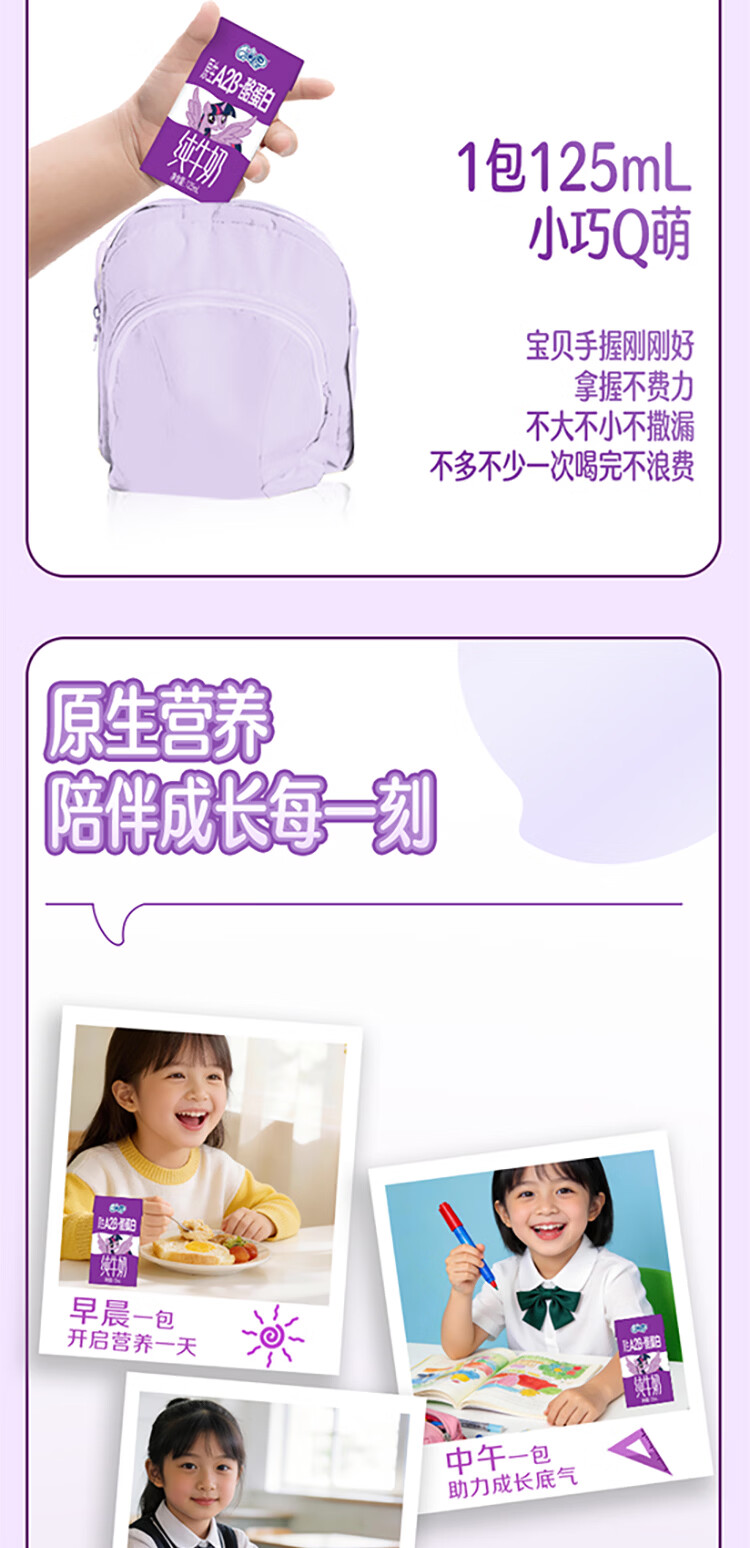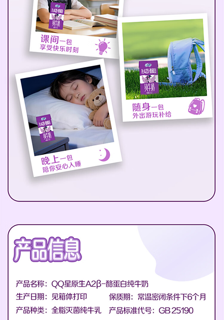 QQ星原生A2β-酪蛋白高钙儿童牛奶125ml*16 礼盒装 周深同款