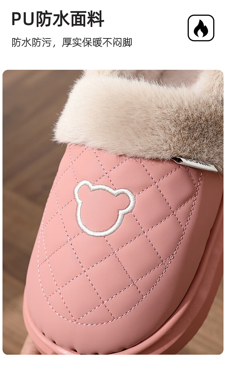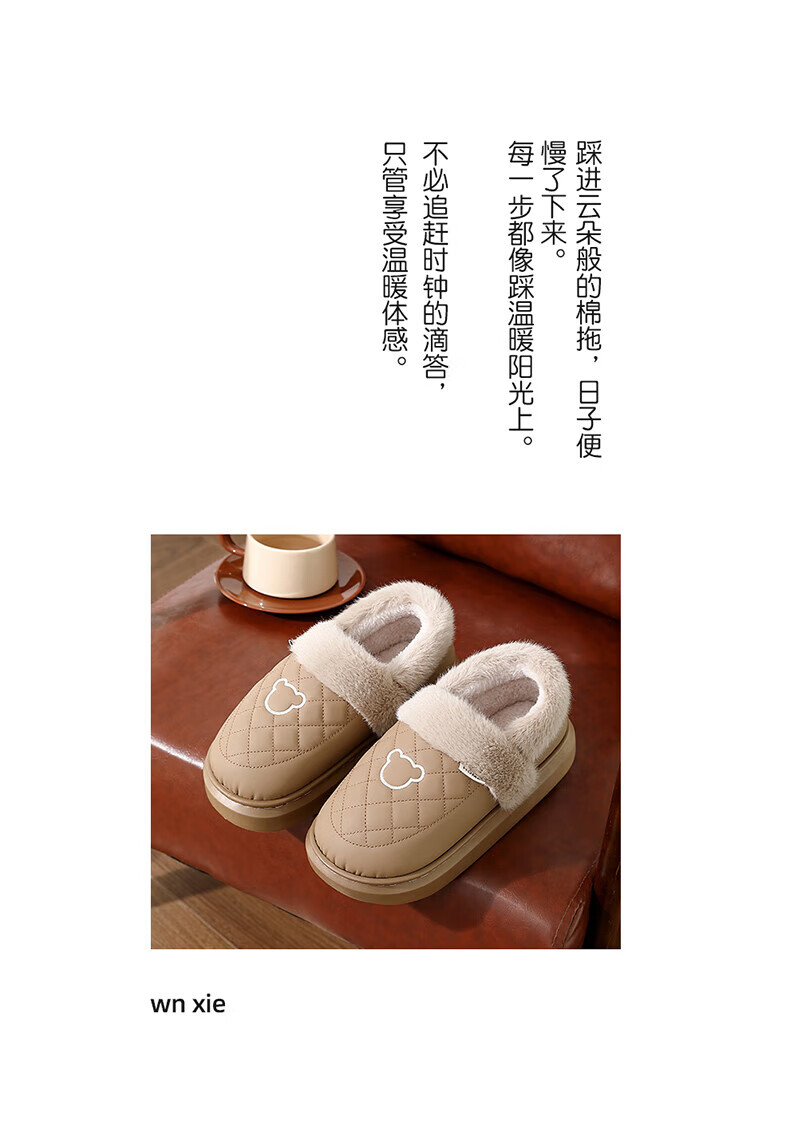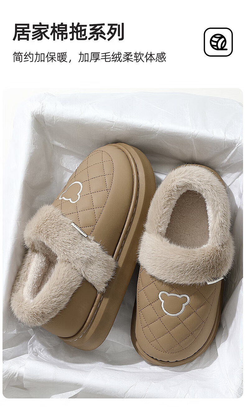 FZT防水棉拖鞋女2025新款室内家居防滑包跟保暖厚底毛绒棉拖外穿女士 深咖【防水小熊】 36-37 标准码【内长225mm】