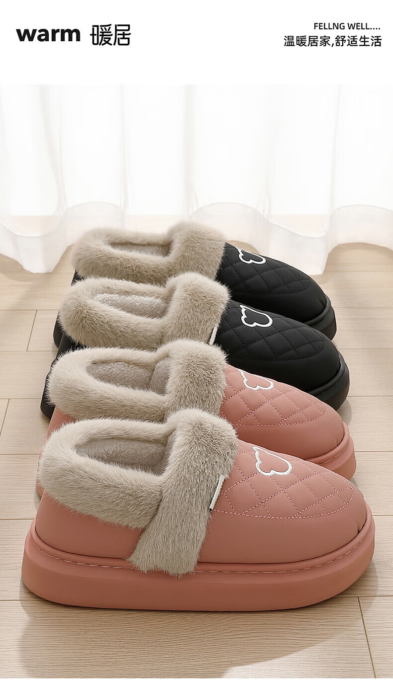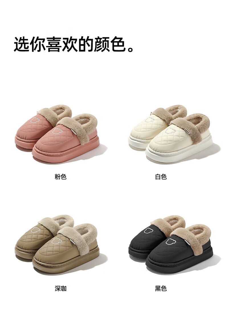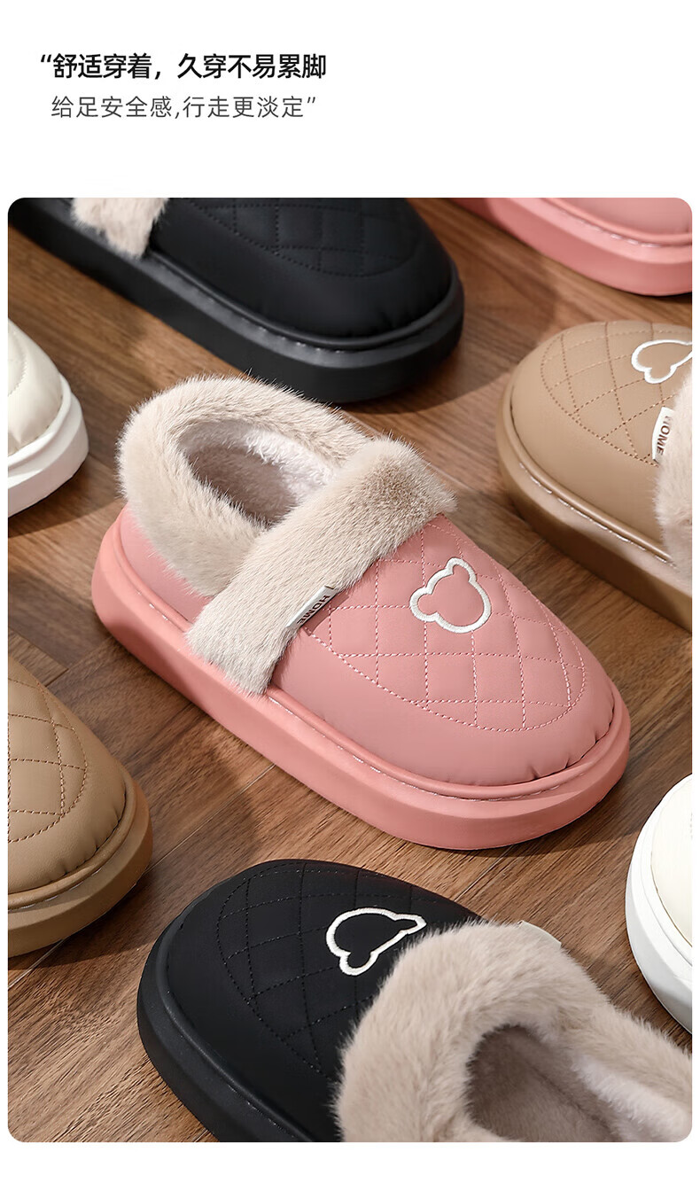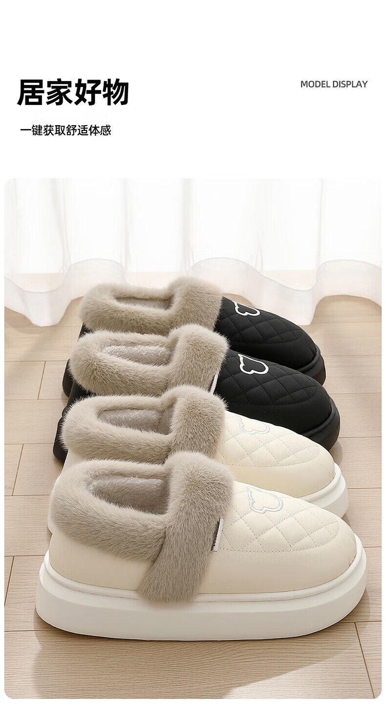FZT防水棉拖鞋女2025新款室内家居防滑包跟保暖厚底毛绒棉拖外穿女士 深咖【防水小熊】 36-37 标准码【内长225mm】