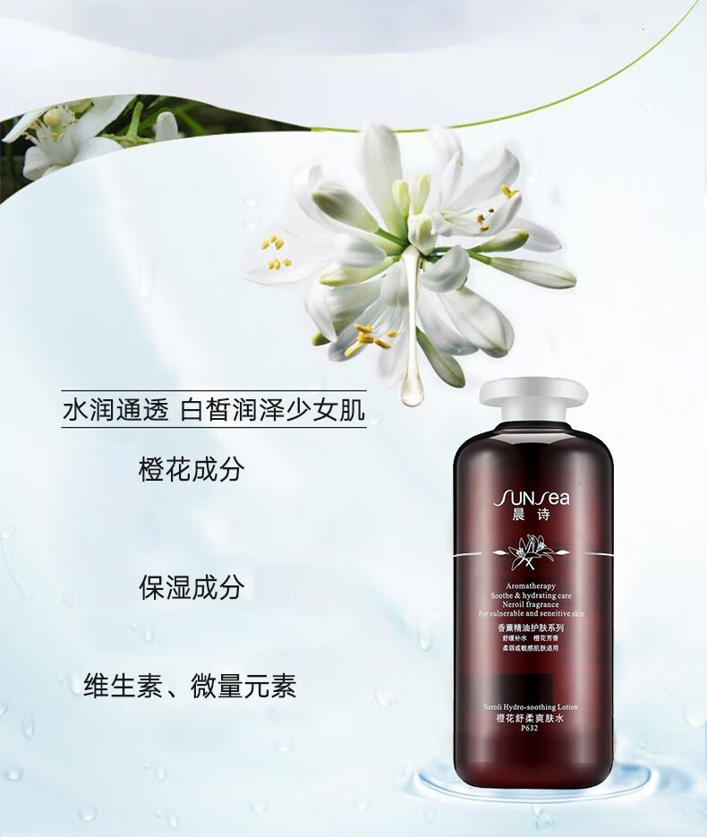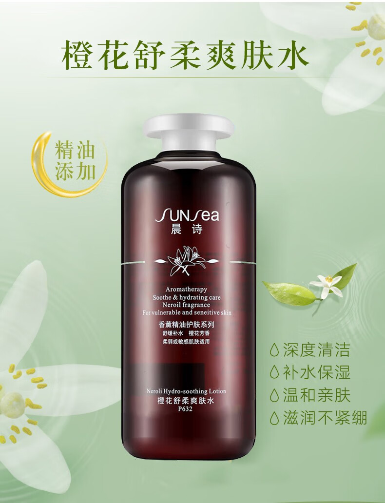 晨诗(sunsea)橙花舒柔爽肤水森林雅舍平衡肌肤舒缓锁水保湿500ml P632