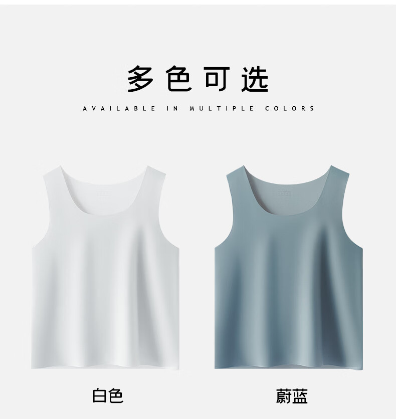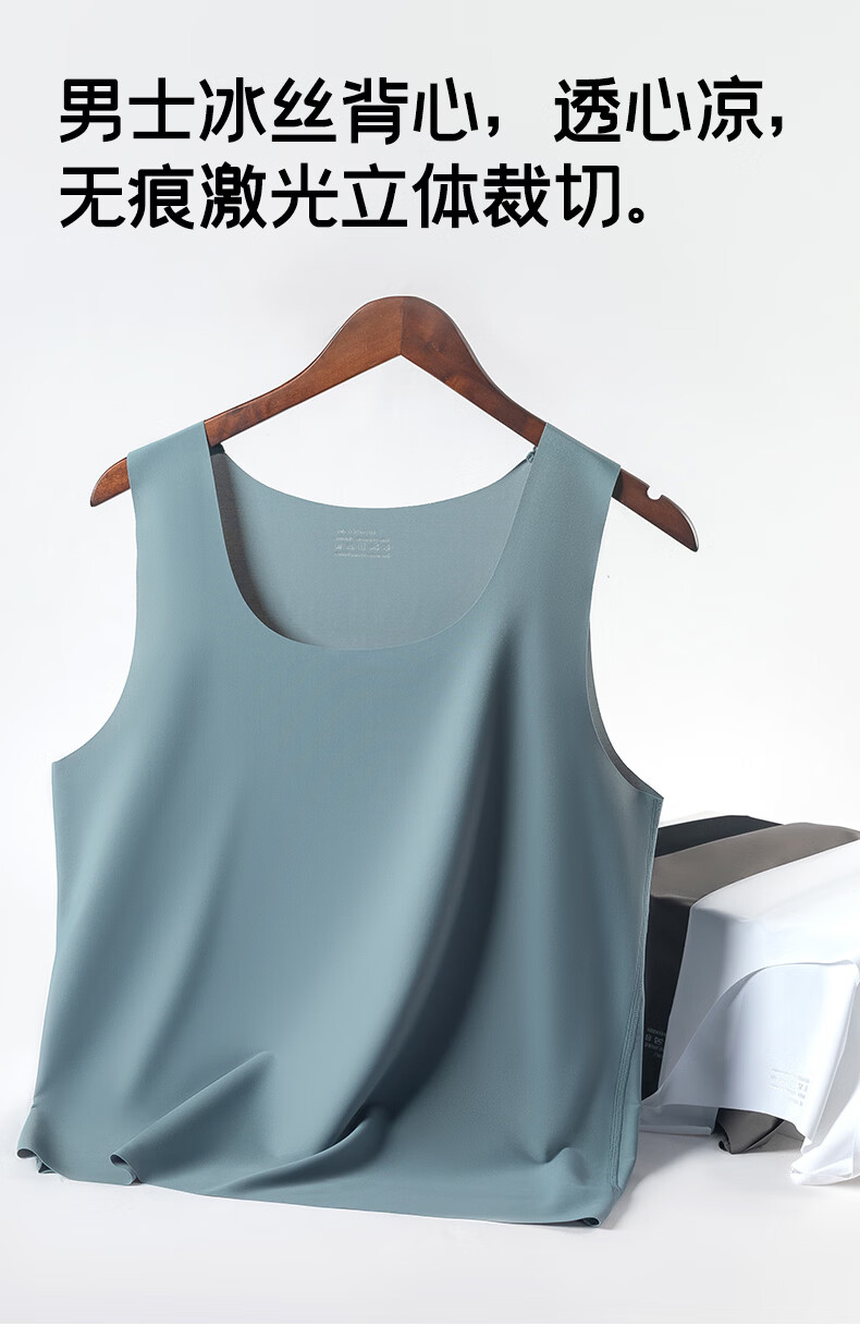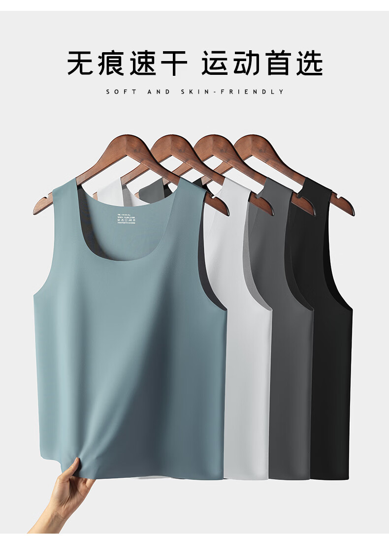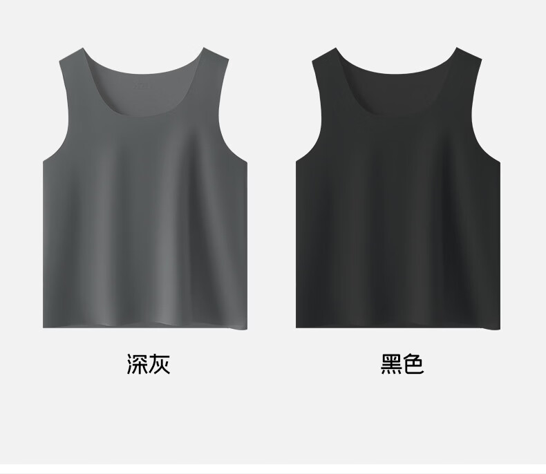 猫人男士无痕背心圆领夏季透气速干纯色运动健身打底冰丝短袖汗杉 白色+深灰 【冰丝透气无痕速干背心】 3XL 【建议160-180斤】
