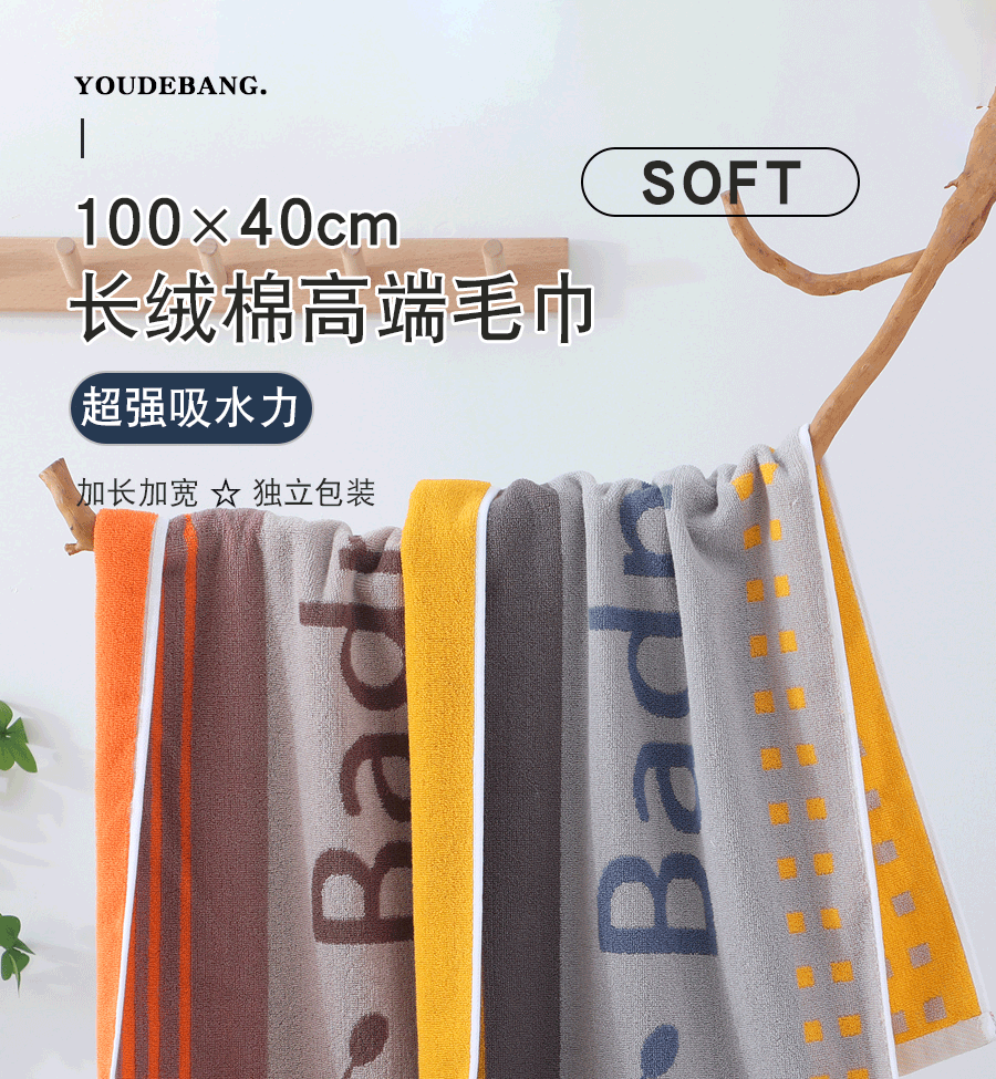 友得邦运动毛巾全棉加长加宽不掉毛褪色挂脖跑步健身擦汗洗澡吸水家用巾 藏蓝+灰色+咖啡-奔向未来 3条 100cm*40cm 尺寸:±2c