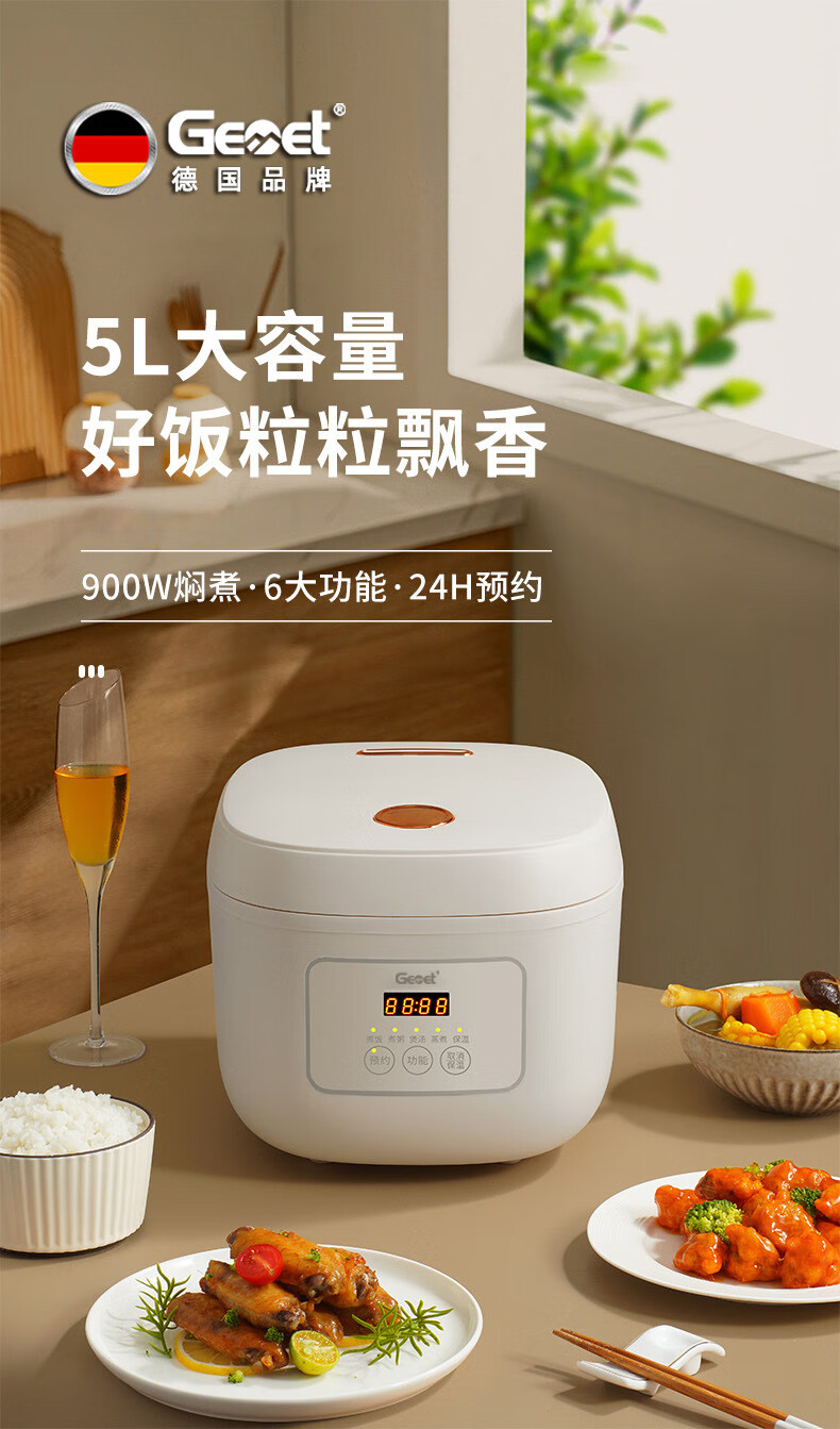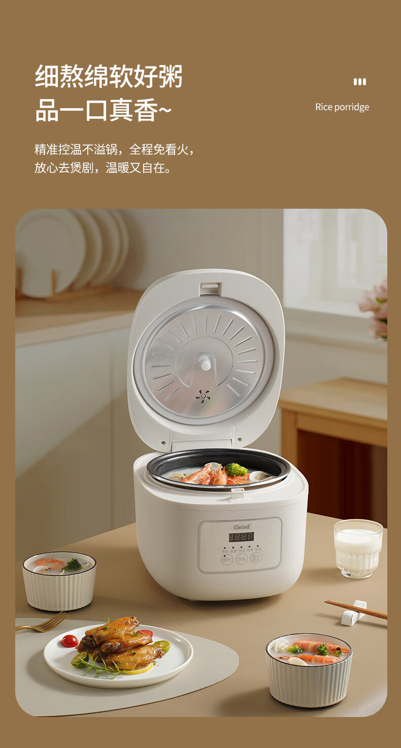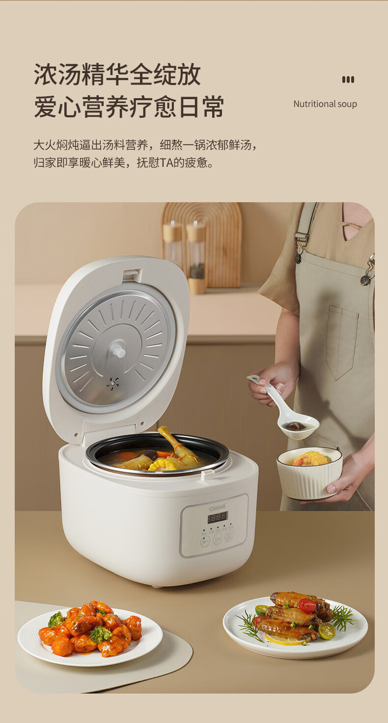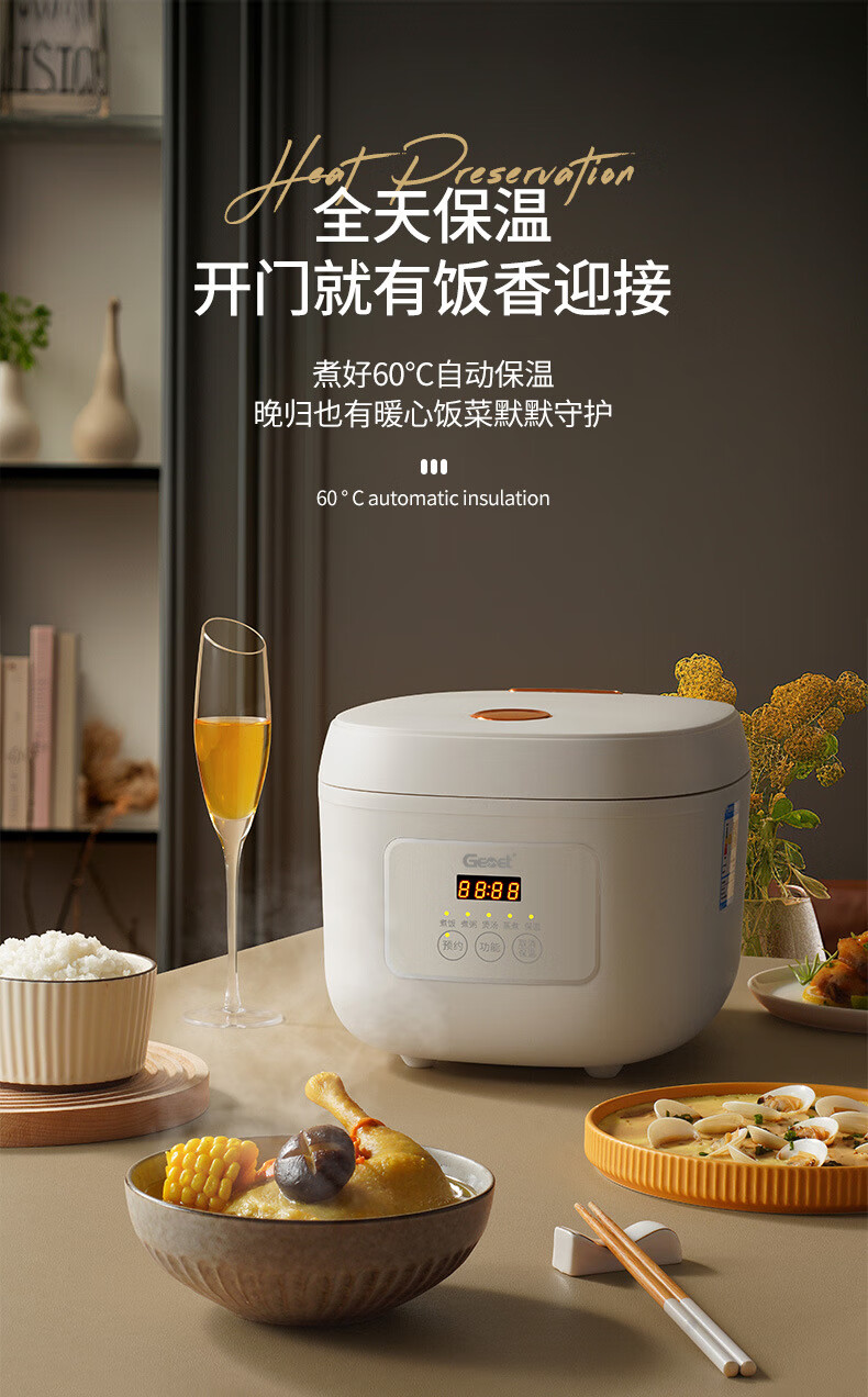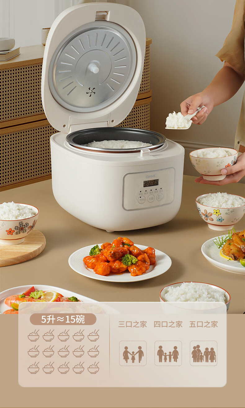 GEMET青春版不粘内丹电饭煲4-5人家用无涂层电饭锅不锈钢内胆煮饭5升容量 米白色 3L