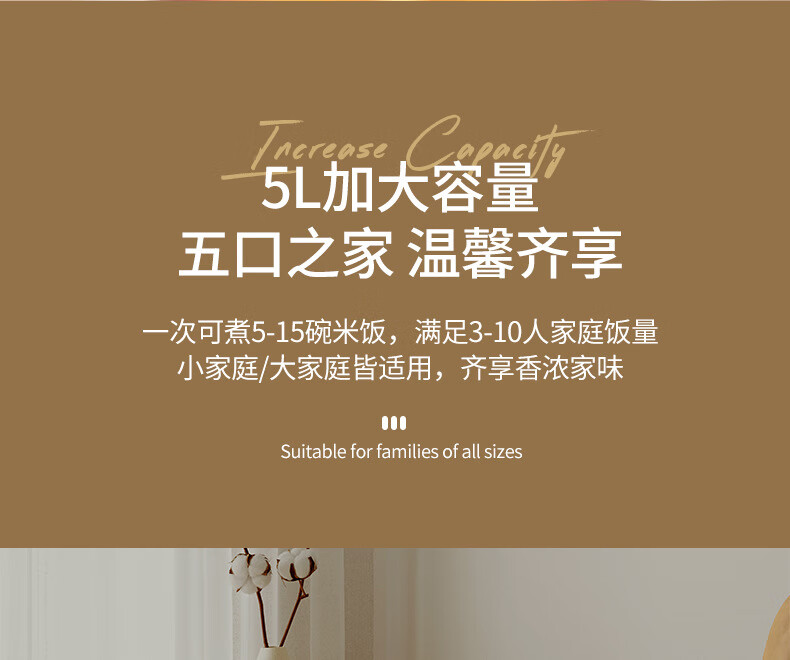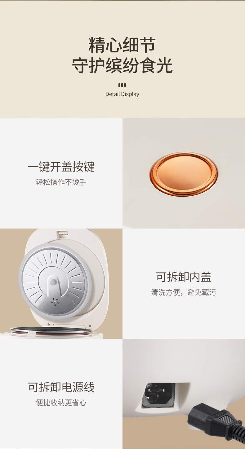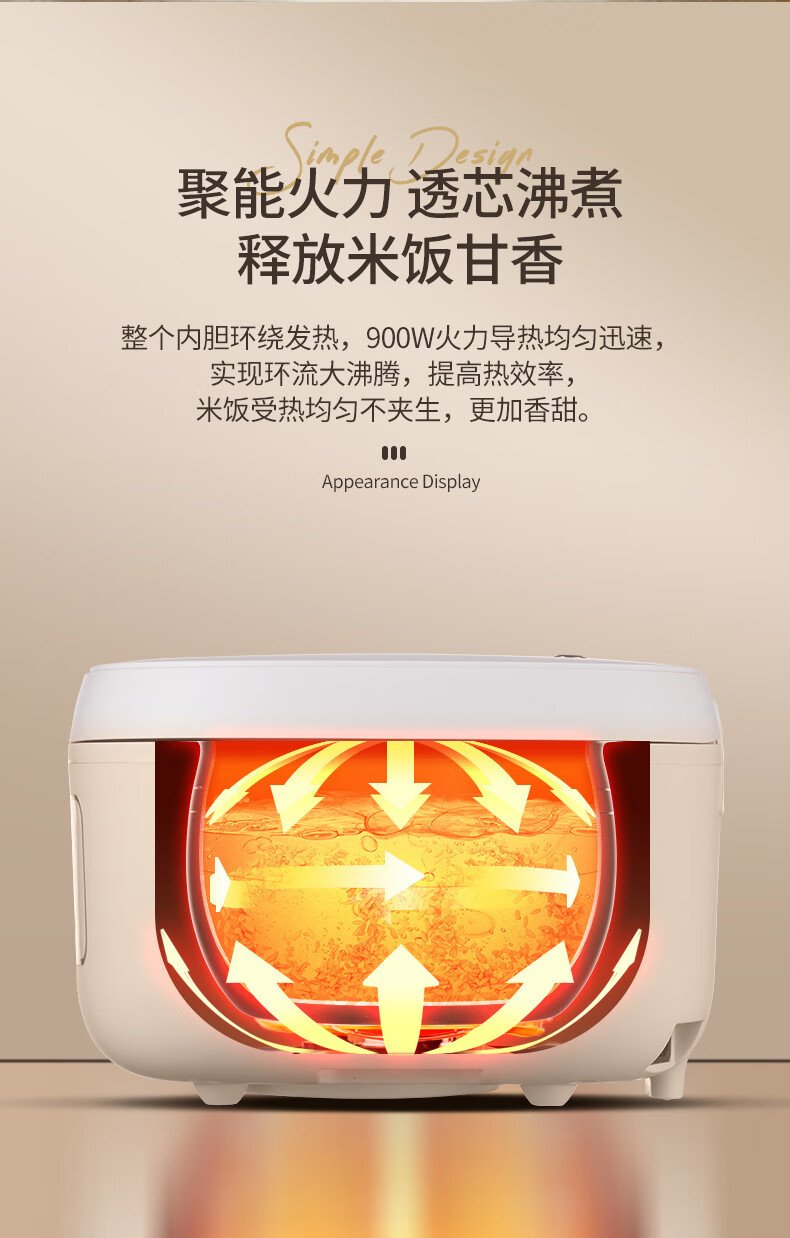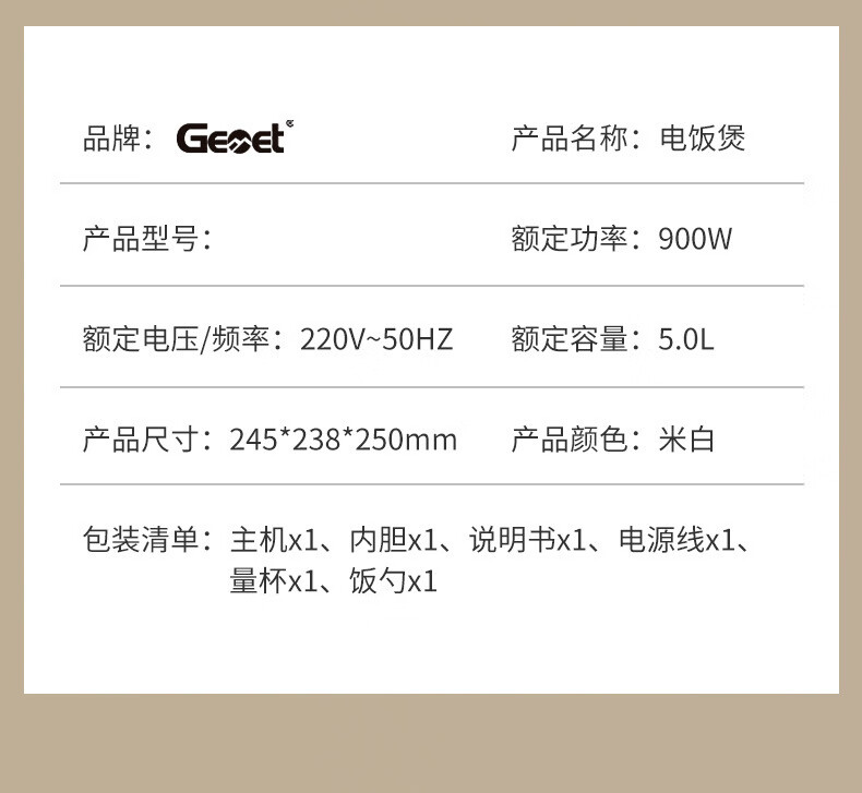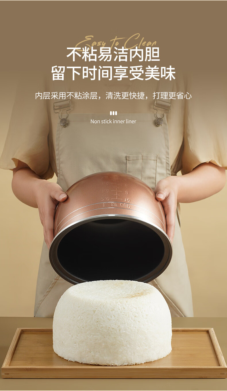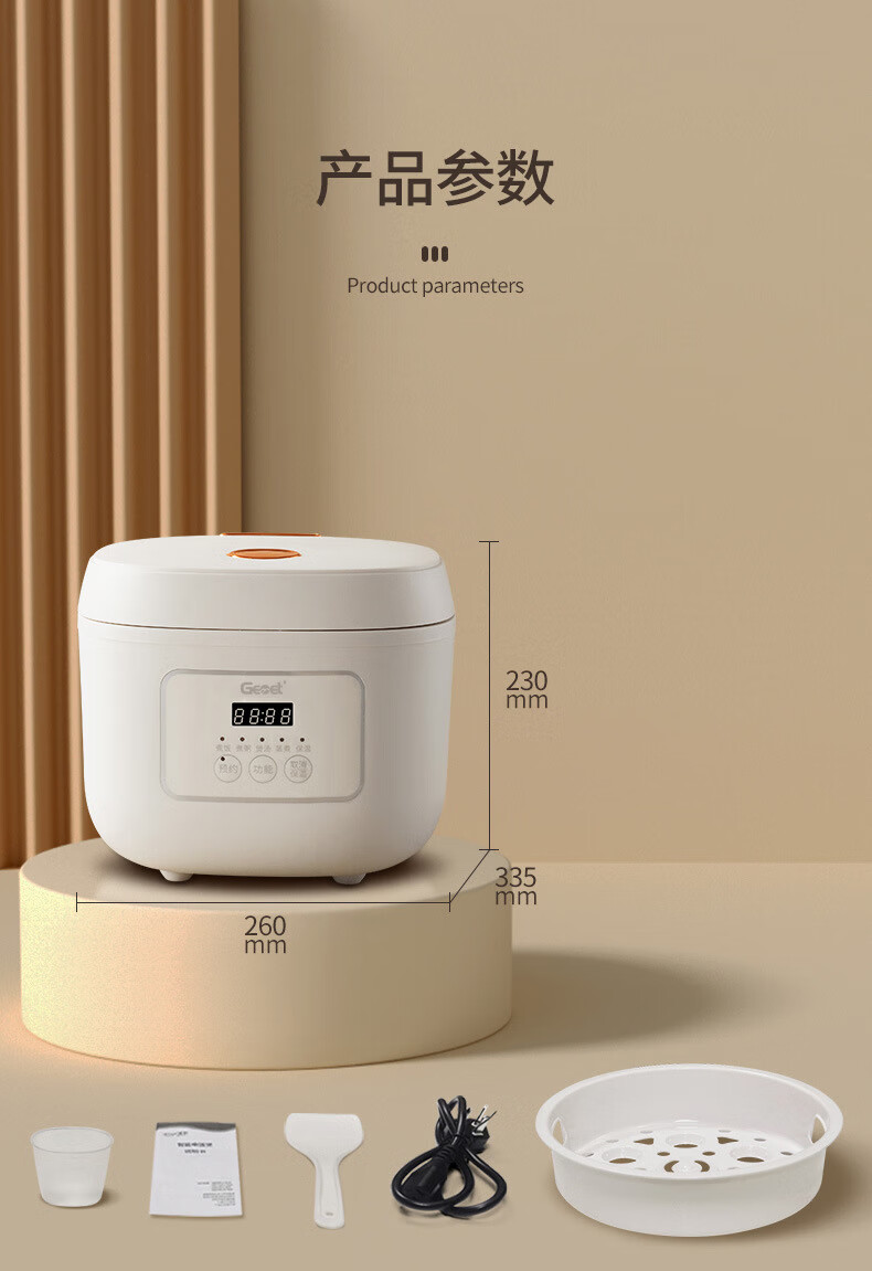 GEMET青春版不粘内丹电饭煲4-5人家用无涂层电饭锅不锈钢内胆煮饭5升容量 米白色 3L