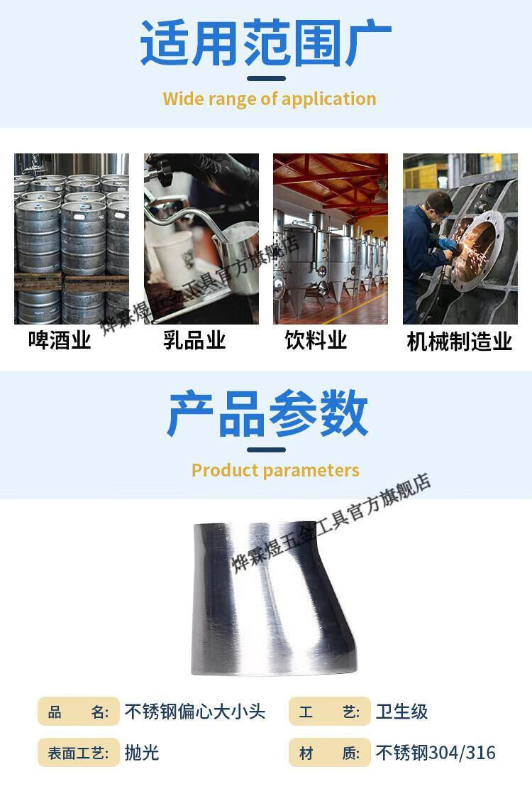 烨霖煜316L不锈钢卫生级偏心焊接大小头 变径管异径接头76以下可定制 316 Φ219*76
