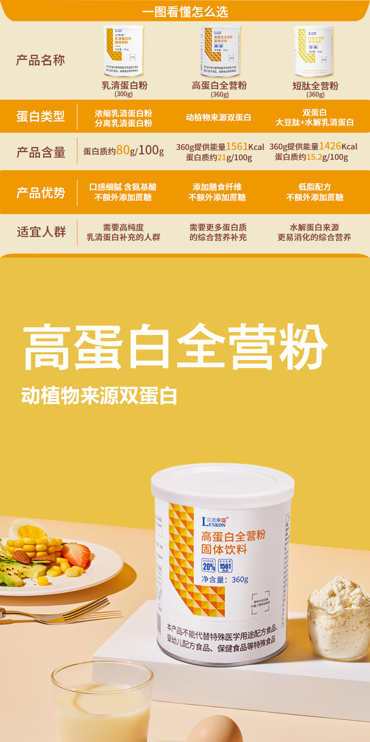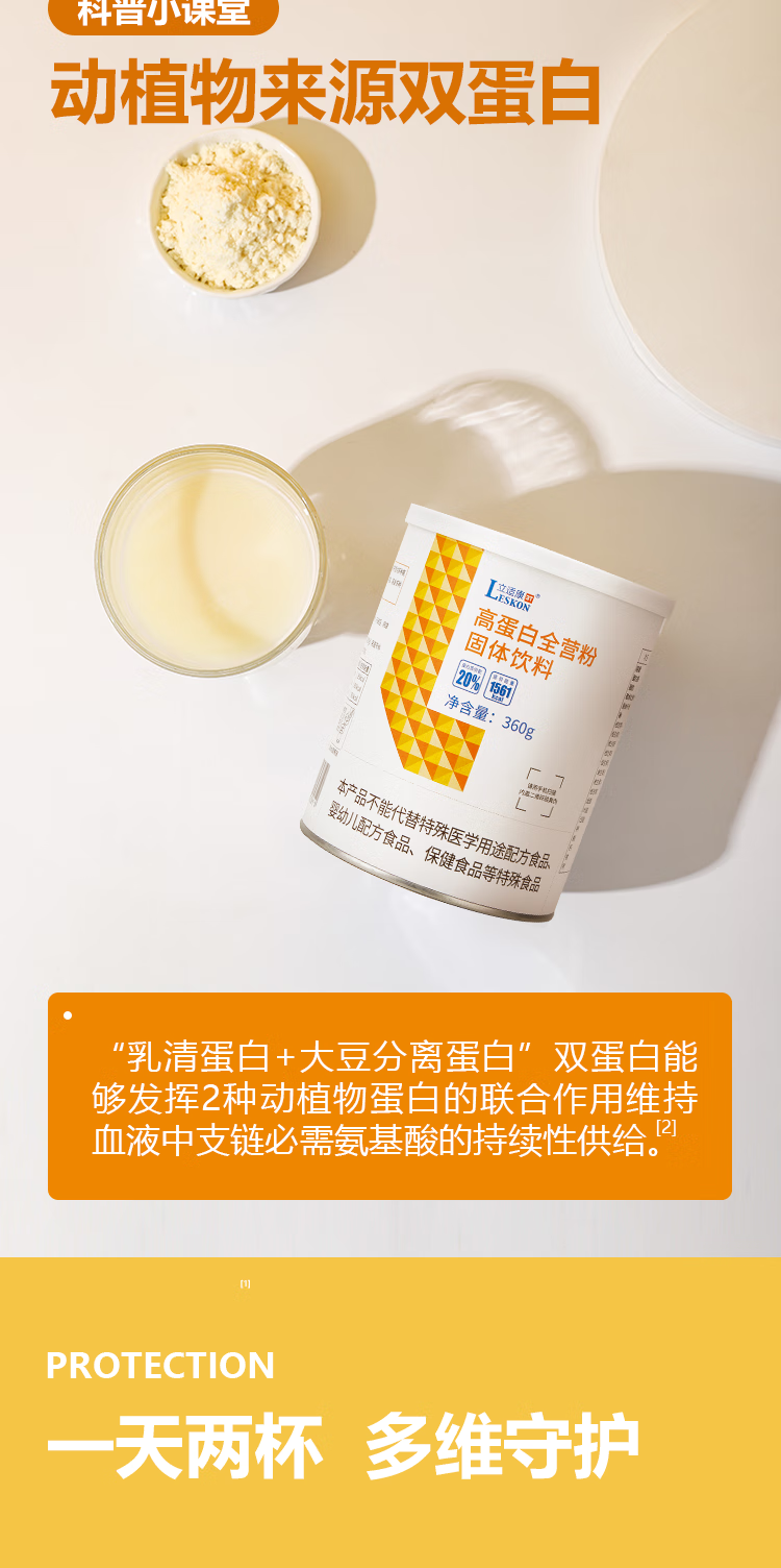 立适康高蛋白营养素粉含膳食纤维混合蛋白流食鼻饲营养补充360g防伪查询 高蛋白1罐【动植物双蛋白】 360g*1罐