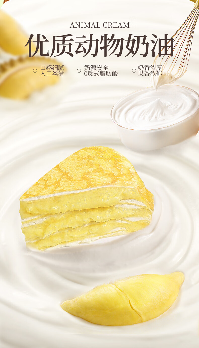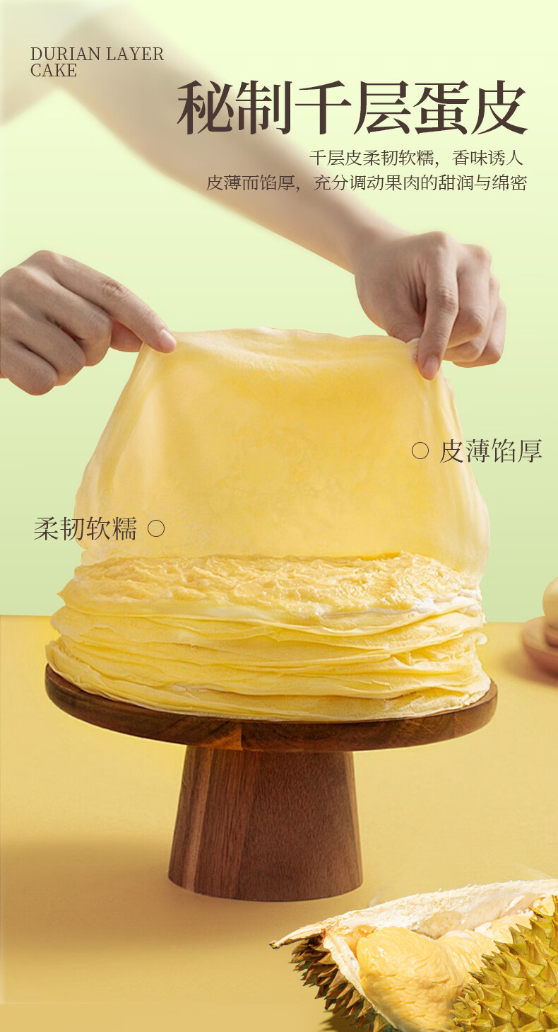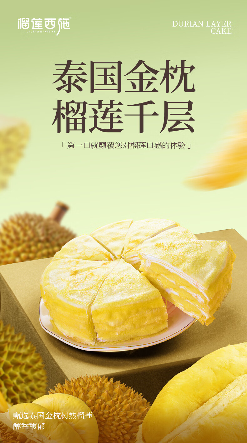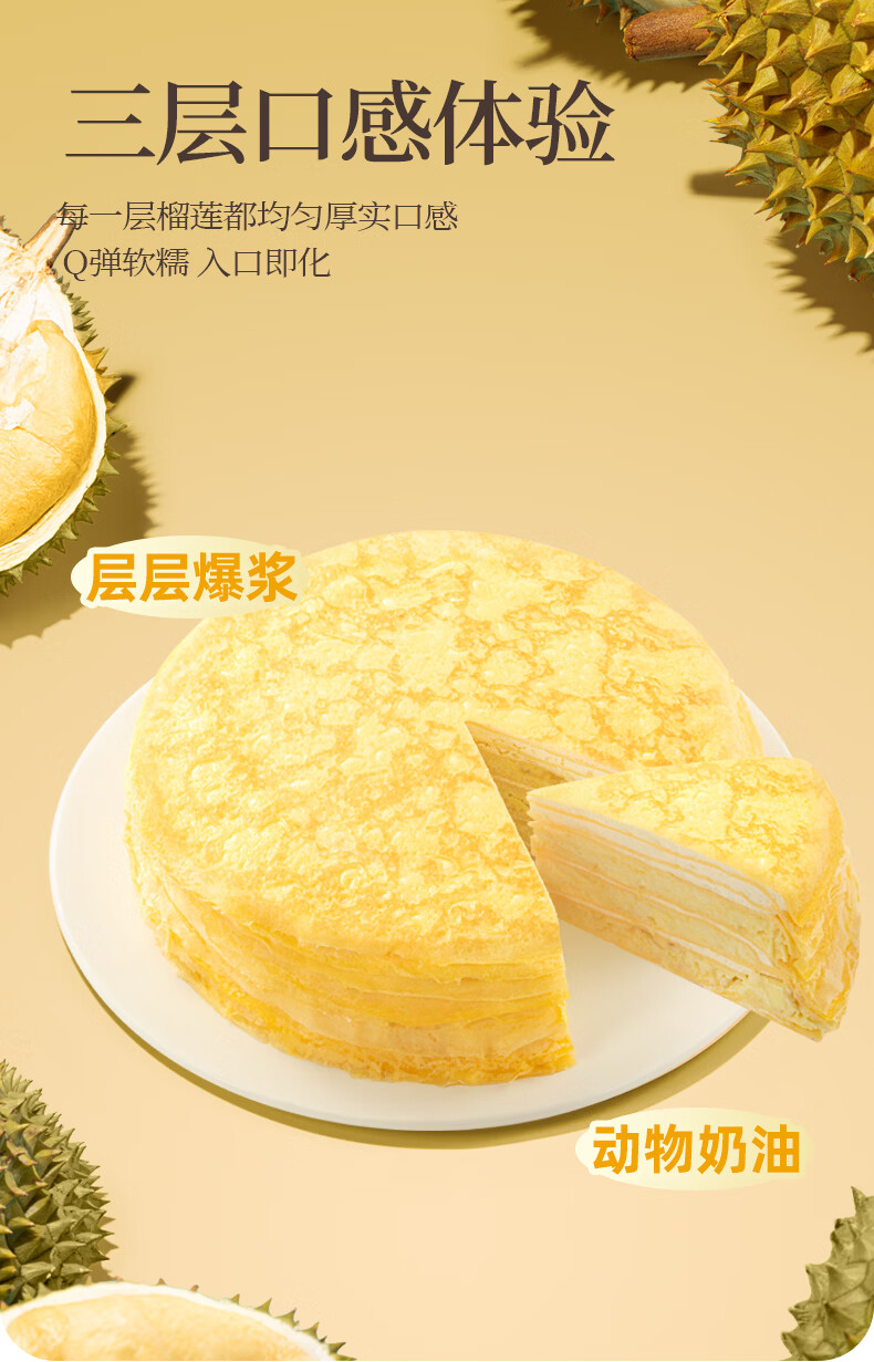 榴莲西施(liulianxishi)榴莲千层蛋糕6英寸纯动物奶油生日新鲜蛋糕果肉下午茶甜品 榴莲千层6英寸400g*3盒