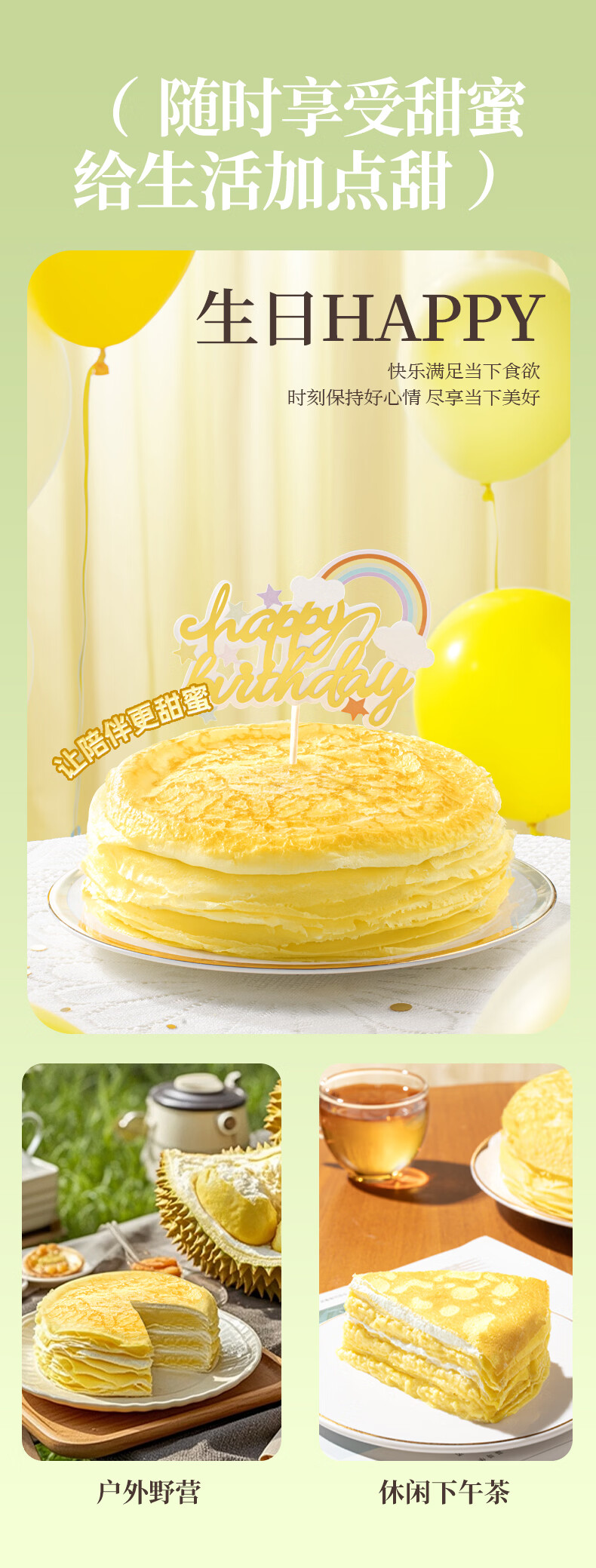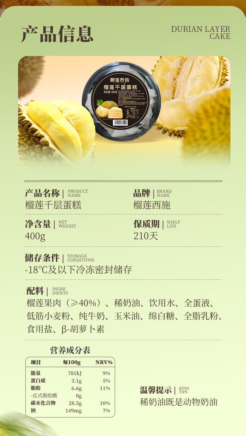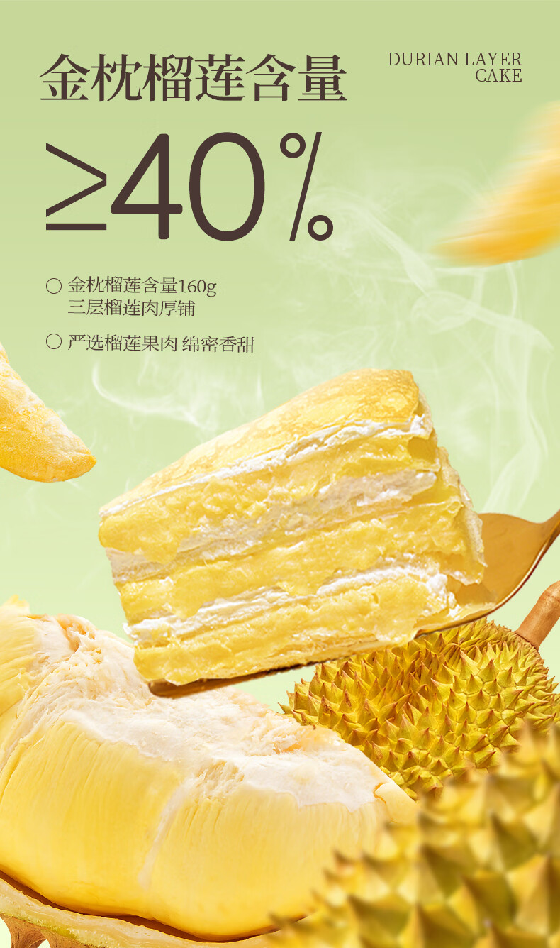榴莲西施(liulianxishi)榴莲千层蛋糕6英寸纯动物奶油生日新鲜蛋糕果肉下午茶甜品 榴莲千层6英寸400g*3盒