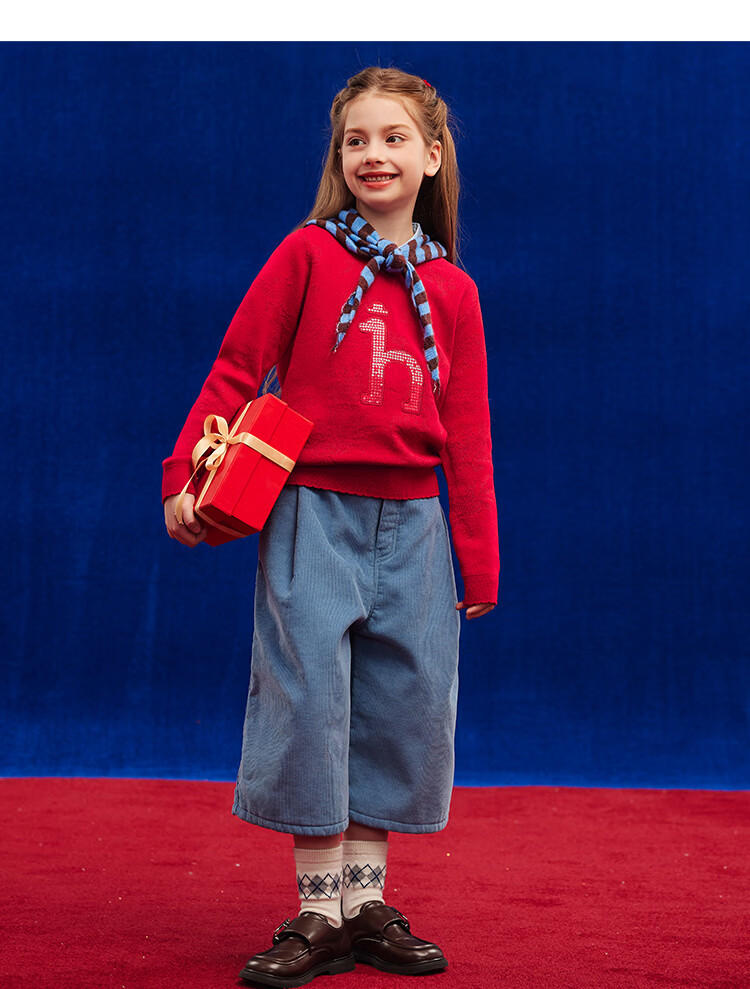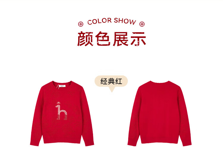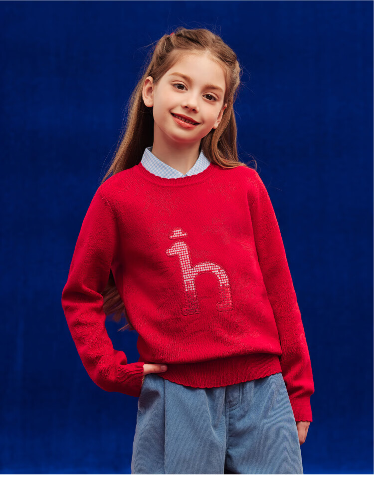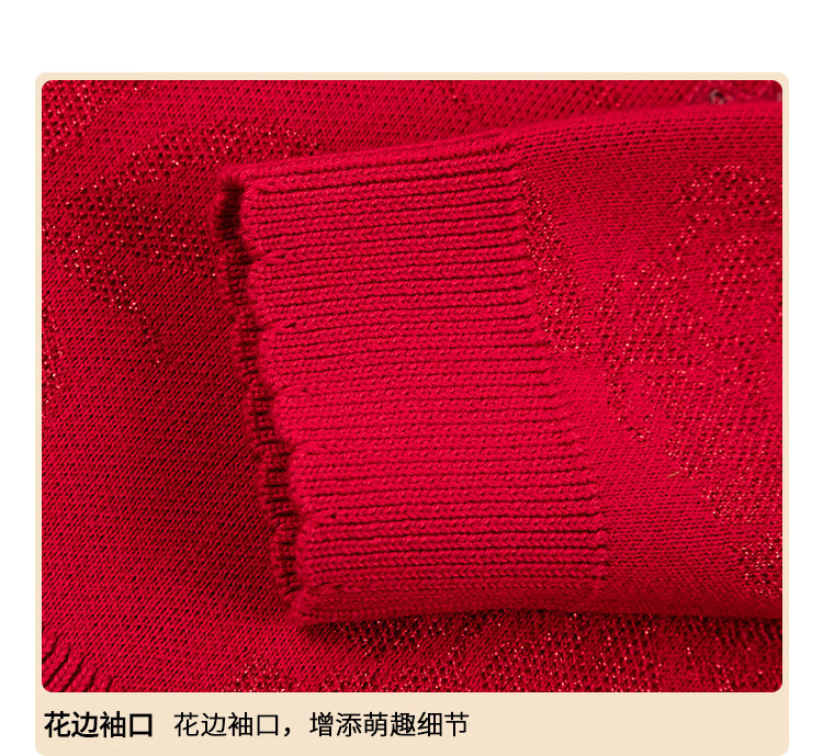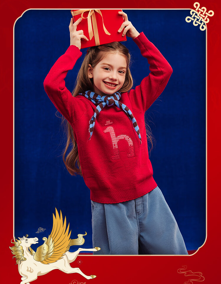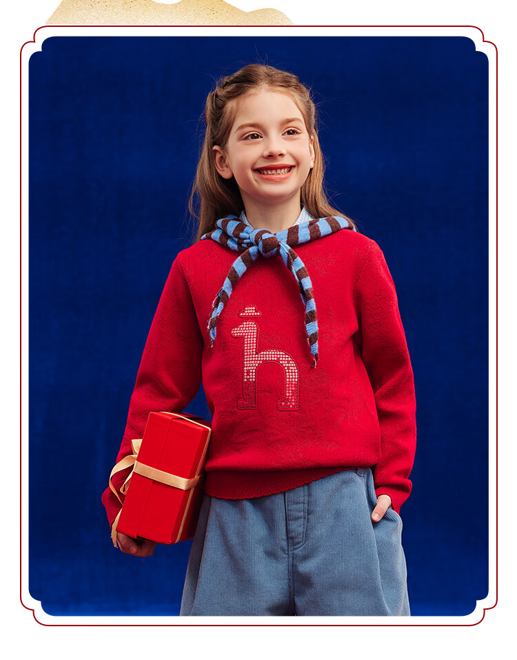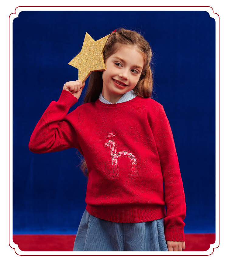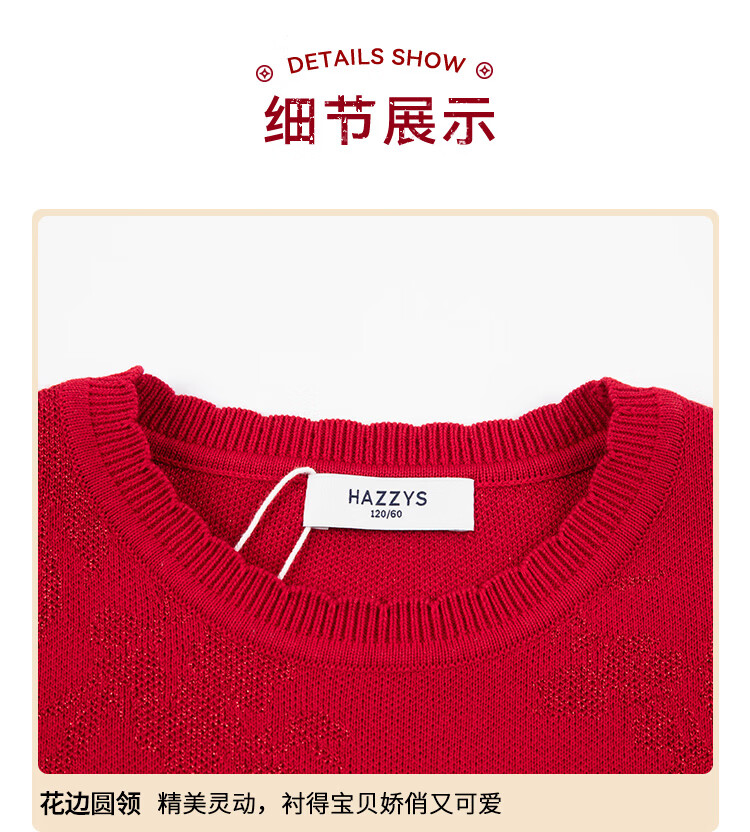 哈吉斯(HAZZYS)童装女童毛衣2026春新年经典红针织线衣上衣拜年服 经典红 165