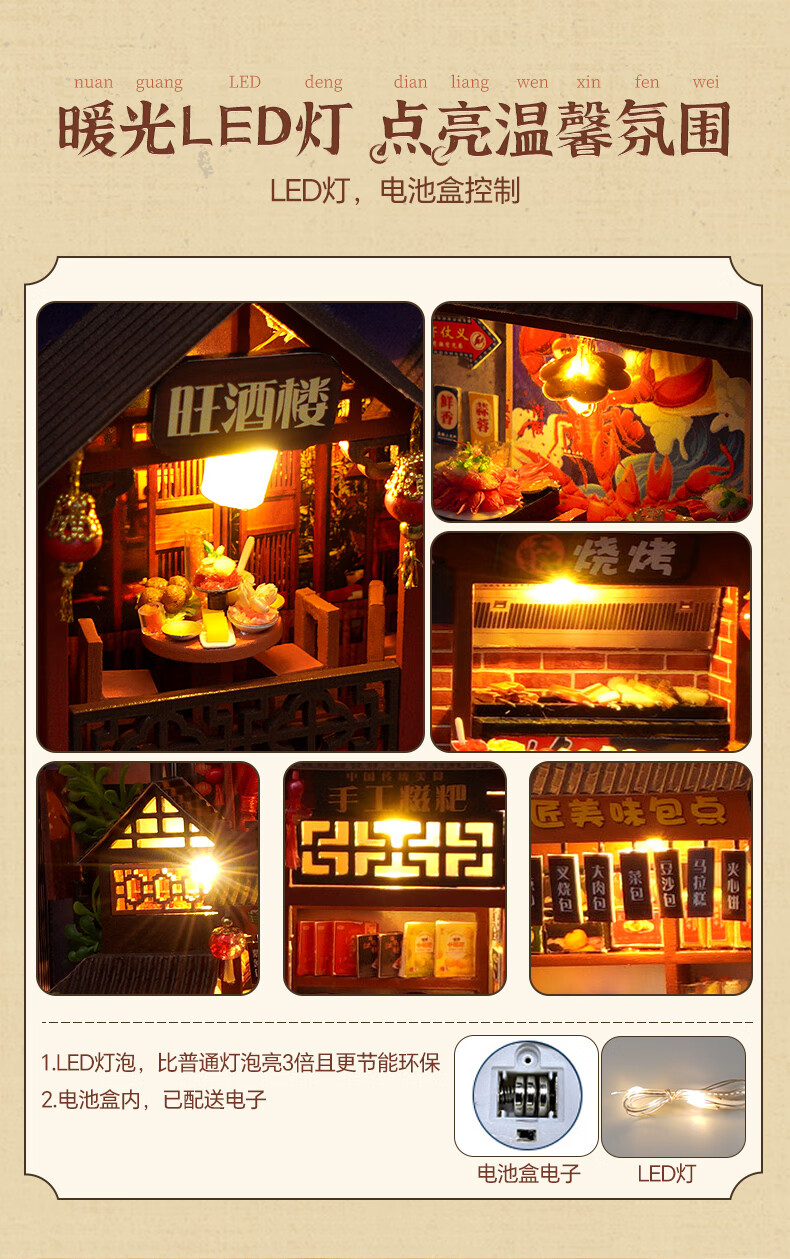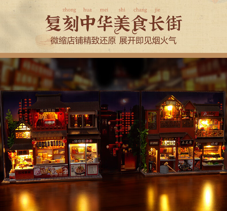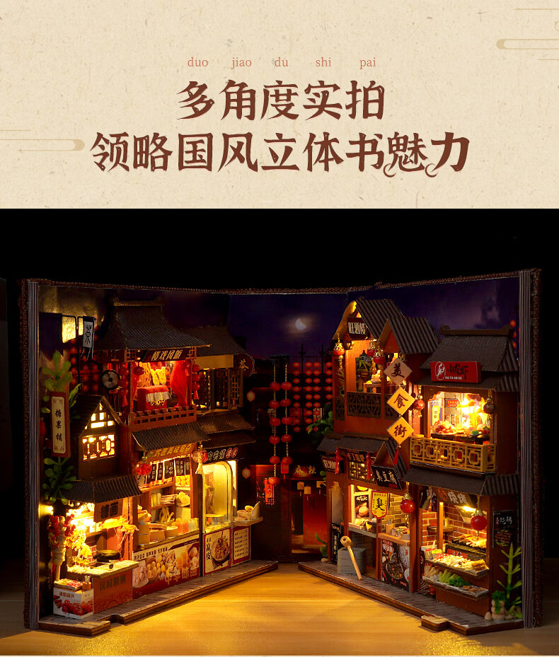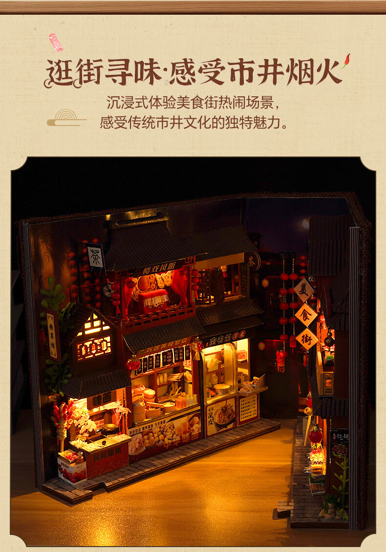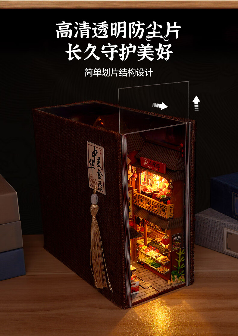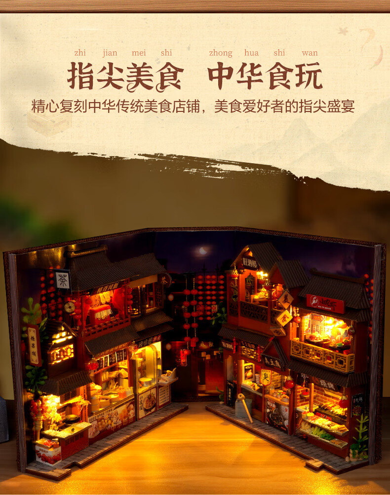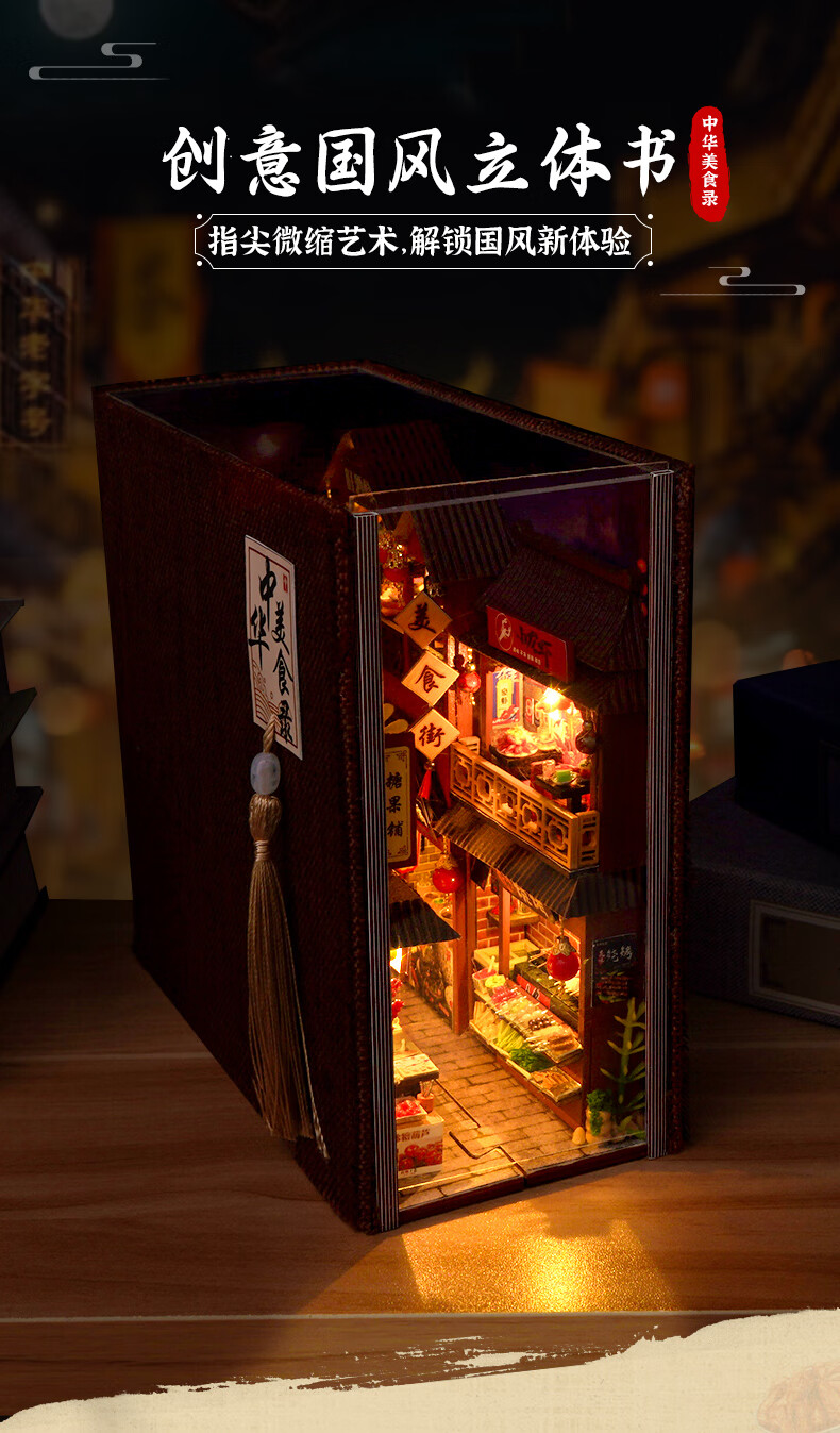 巧之匠diy手工小屋拼装书立模型积木3d立体拼图玩具微缩场景手工礼物 中华美食录+工具+LED灯【热销爆款】
