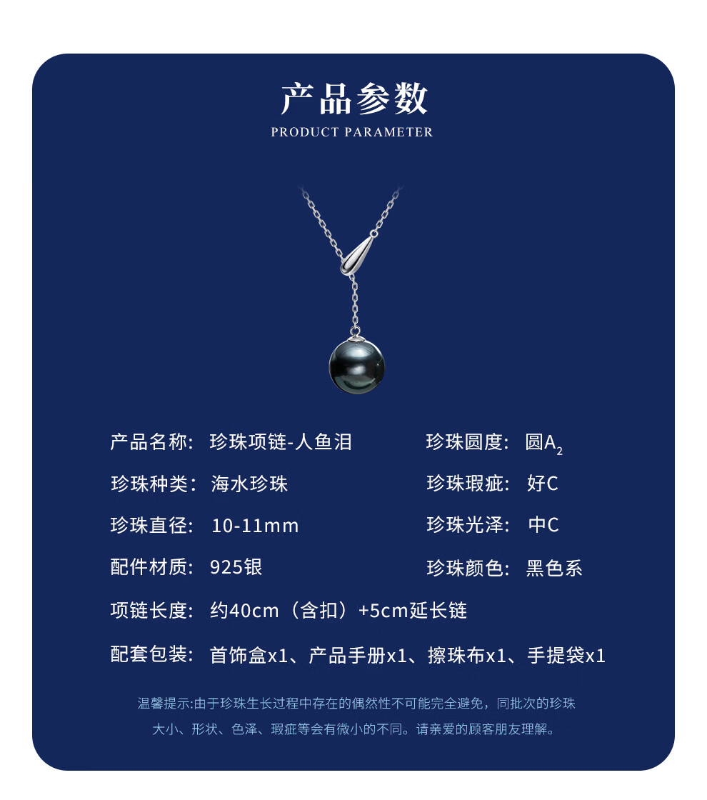 南珠宫人鱼泪925银海水大溪地珍珠项链简约百搭生日礼物送老婆 10.0-11.0mm 约40cm(含扣)+5cm延长链