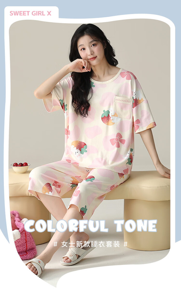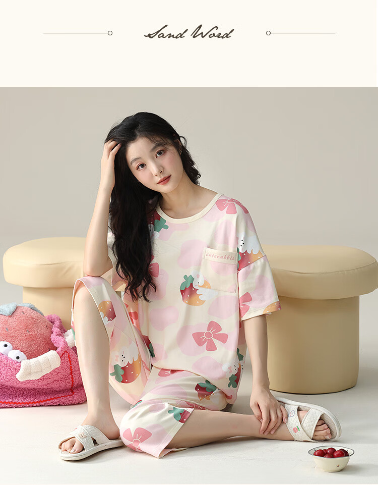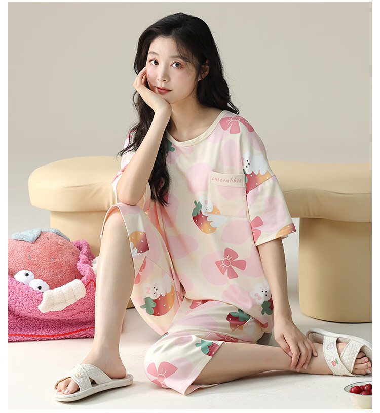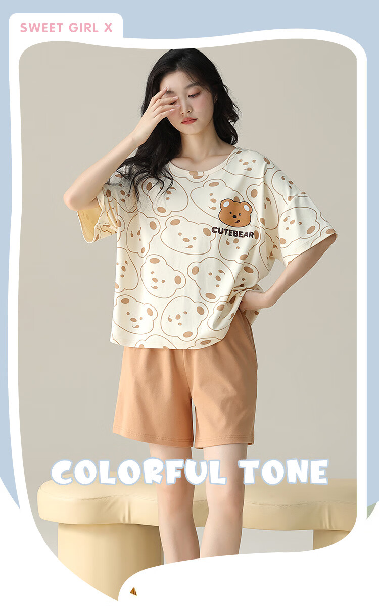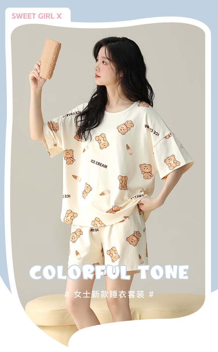 洁丽雅睡衣女夏天短袖短裤柔软舒适春夏季可爱卡通少女生家居服套装 可爱小熊【100%棉】 M 【建议80-100斤】