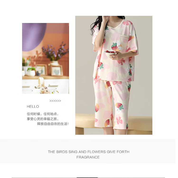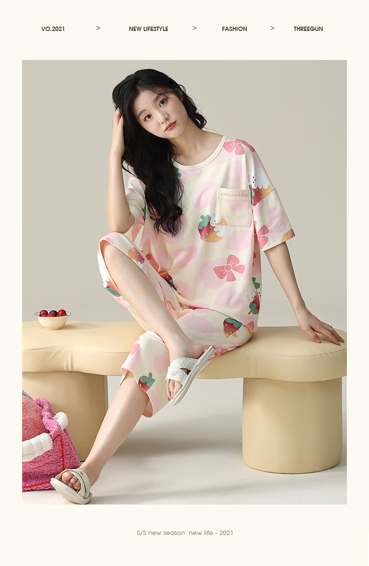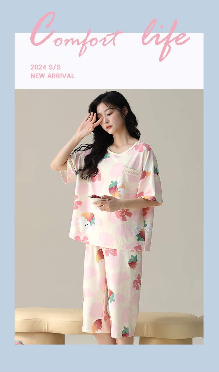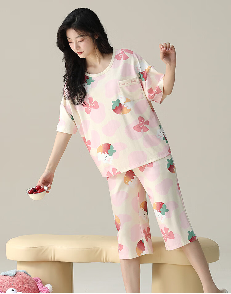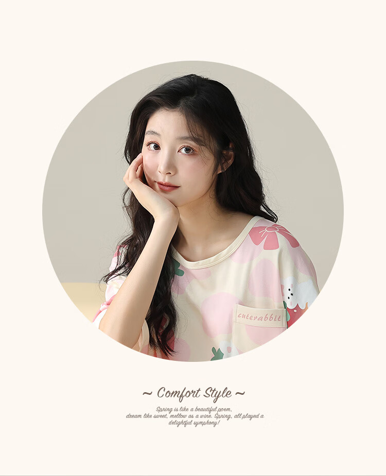 洁丽雅睡衣女夏天短袖短裤柔软舒适春夏季可爱卡通少女生家居服套装 可爱小熊【100%棉】 M 【建议80-100斤】