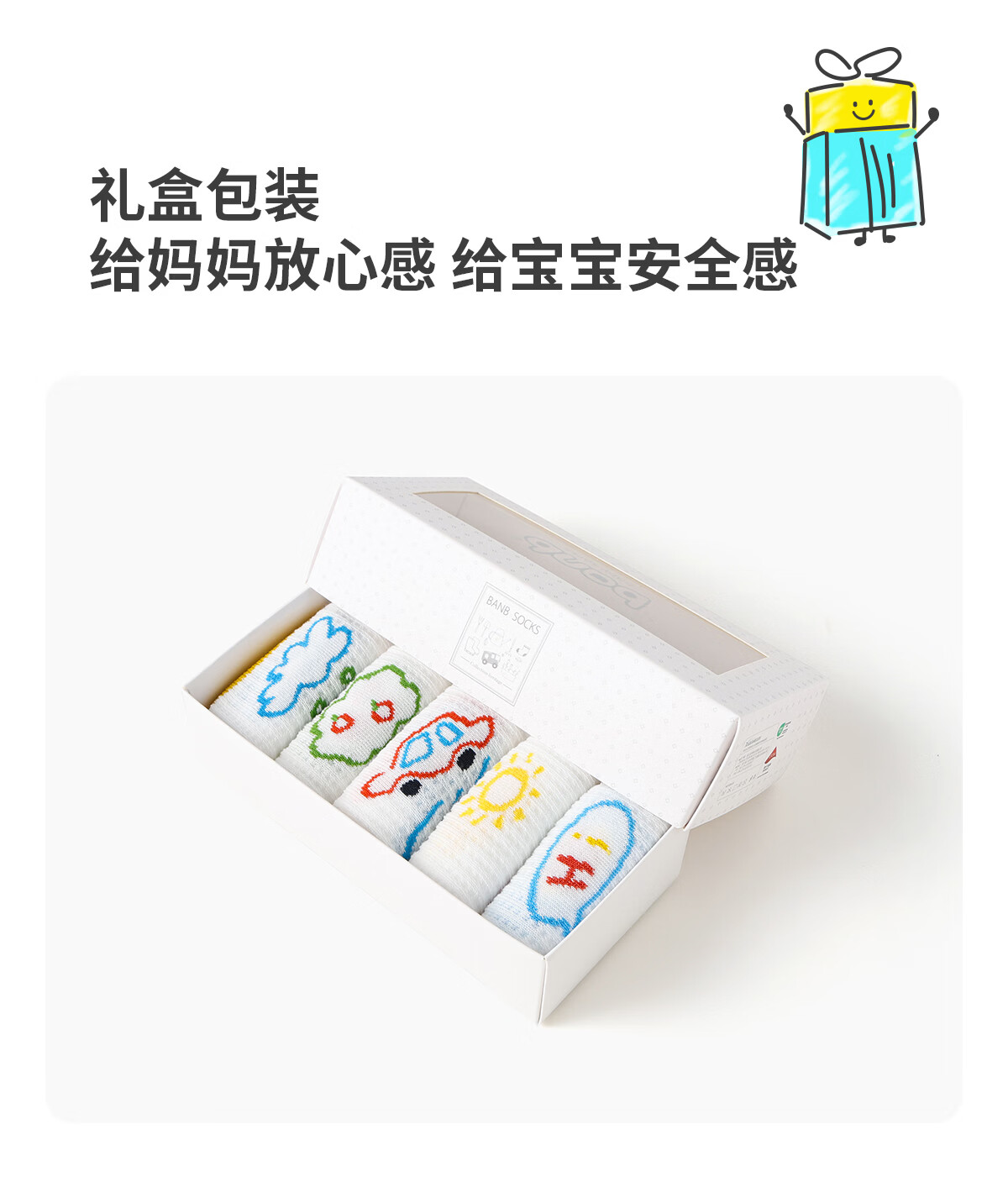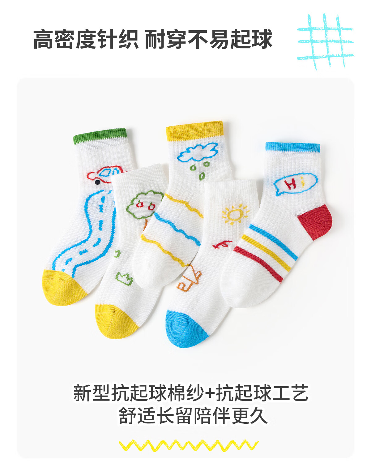 斑比男童袜子春夏款网眼透气棉袜中大童宝宝夏季无骨可爱儿童袜子 BB2602 春夏款儿童袜子 5双 0-1岁 建议脚码16码以内【12-14】