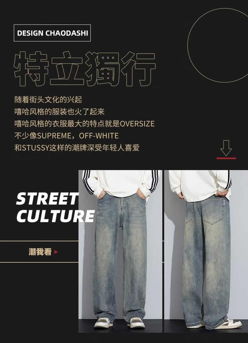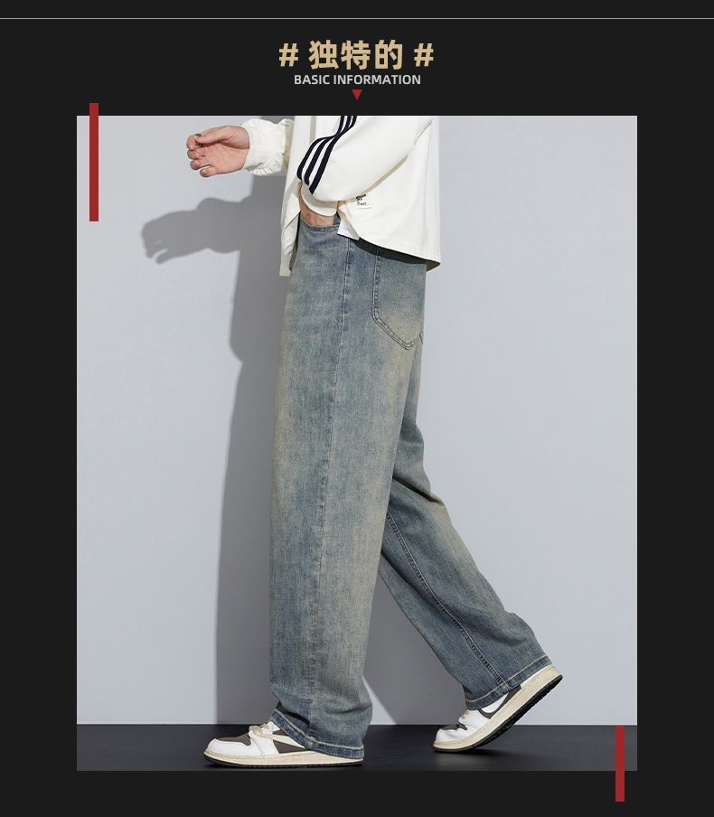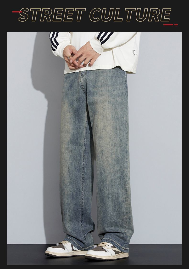 真维斯(Jeanswest)牛仔裤男2026美式高街复古直筒裤男百搭水洗春季新款潮牌休闲裤子 怀旧色 M