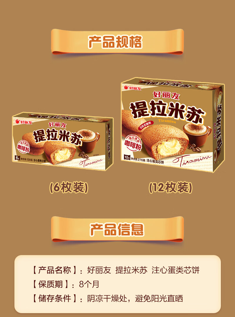 好丽友(ORION)提拉米苏12枚276g 休闲零食营养早餐夹心面包下午茶糕点点心零食