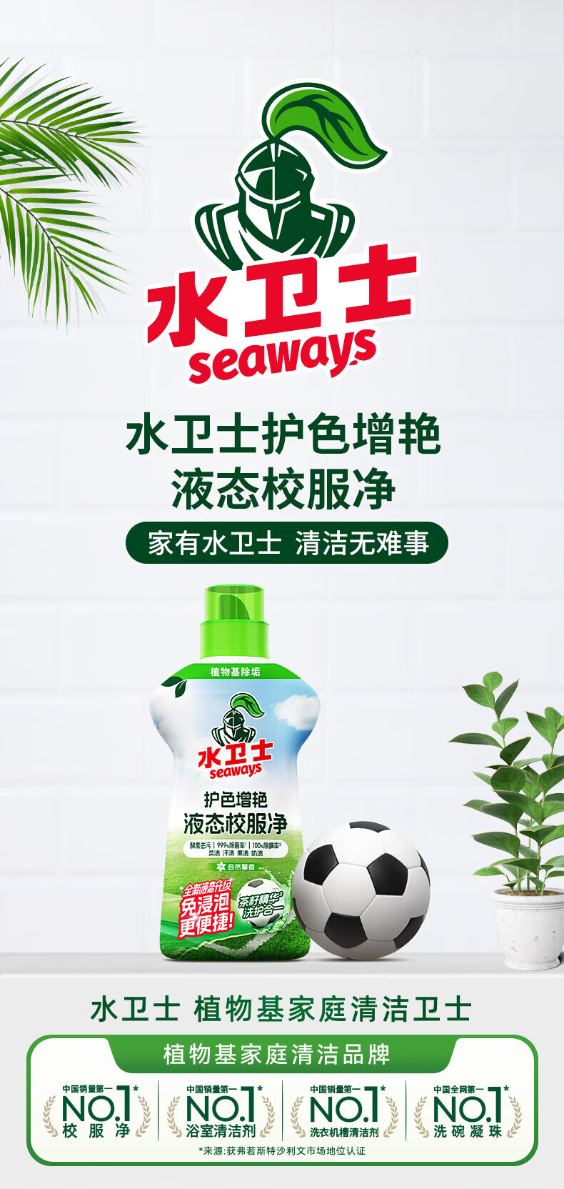 水卫士液态校服净洗衣去污渍彩漂彩色衣物通用去黄除菌液态新升级 液态校服净1kg*2瓶