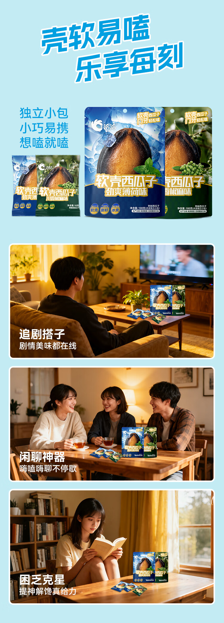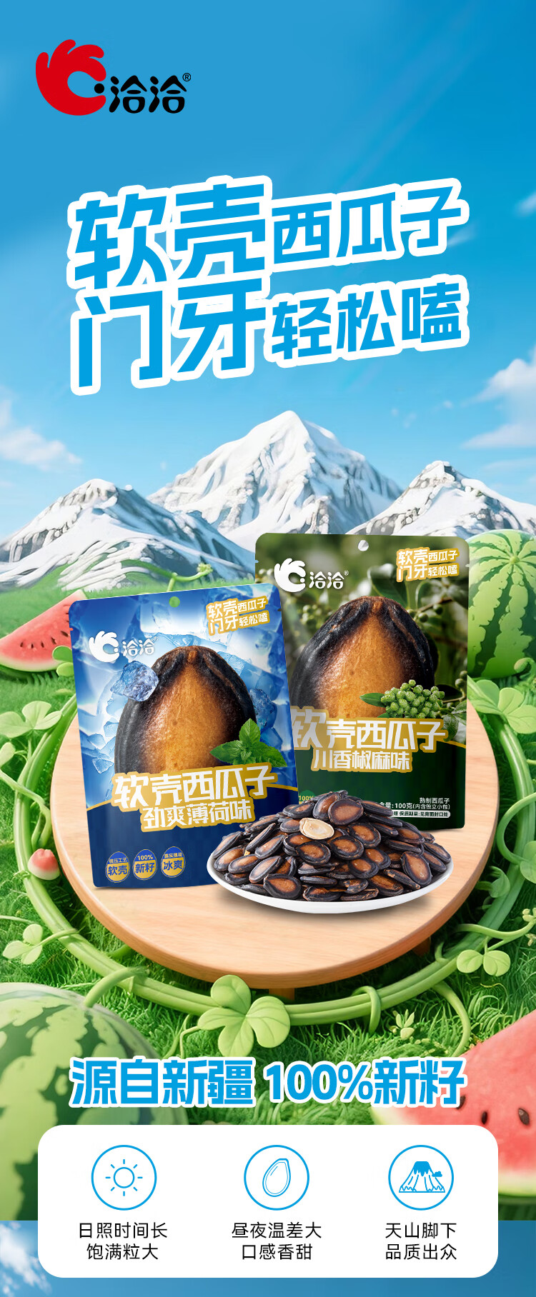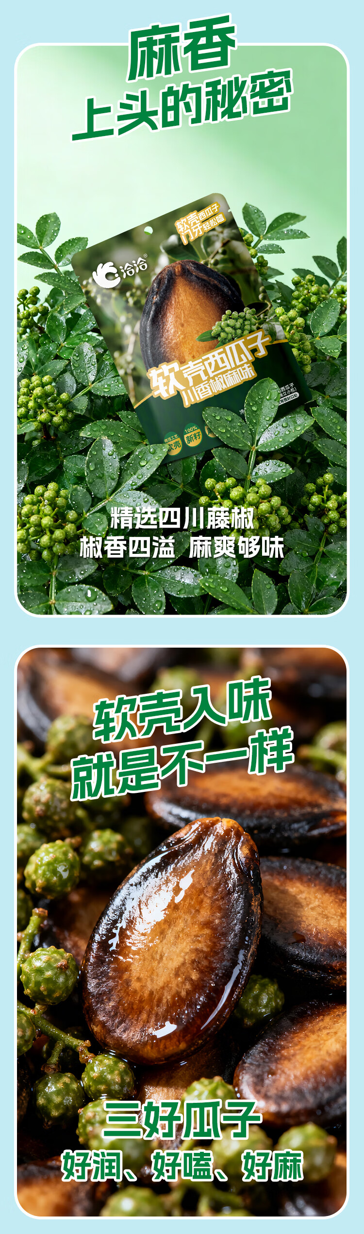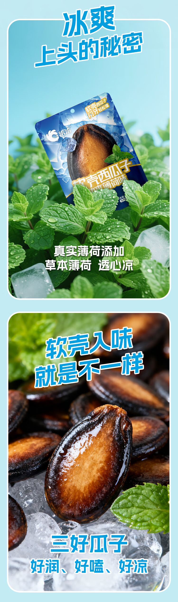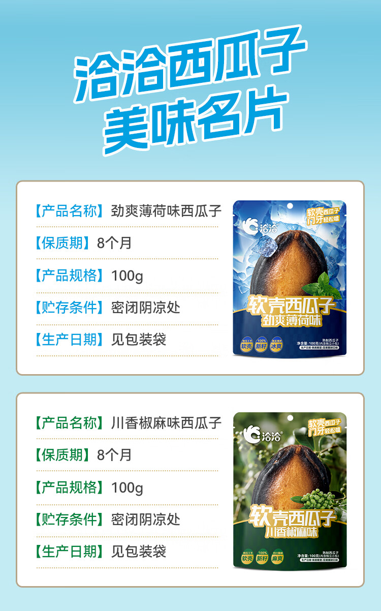 洽洽小而香洽洽新品软壳西瓜子100g湿瓜子劲爽薄荷味川香椒麻大片年货节送礼 劲爽薄荷味100g*2袋