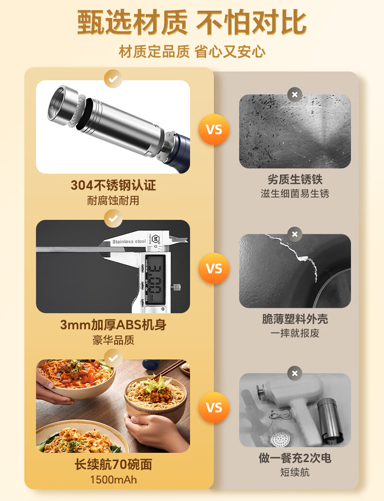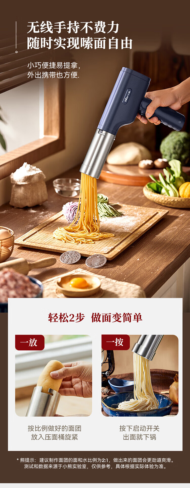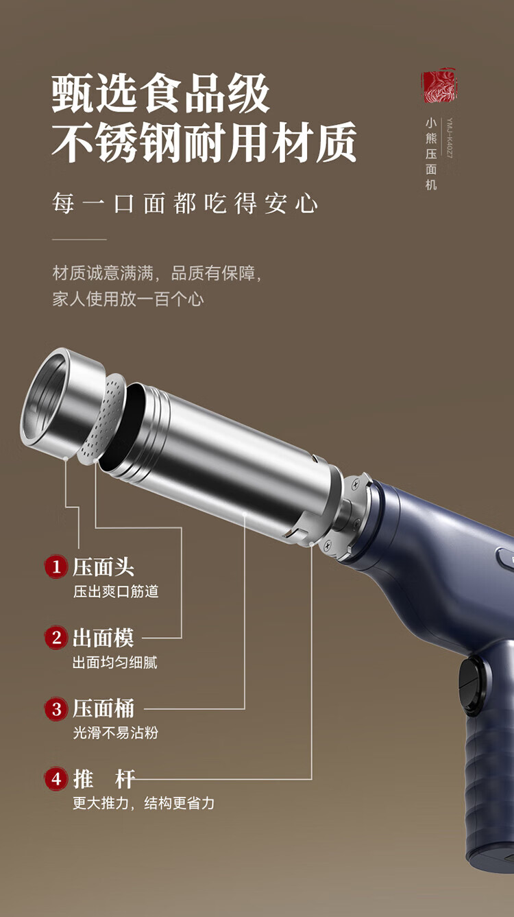 小熊(Bear)面条机家庭用 家用压面机 无线手持压面枪 小型电动自动不锈钢饸饹压面条机 5种出面模具YMJ-K40Z7