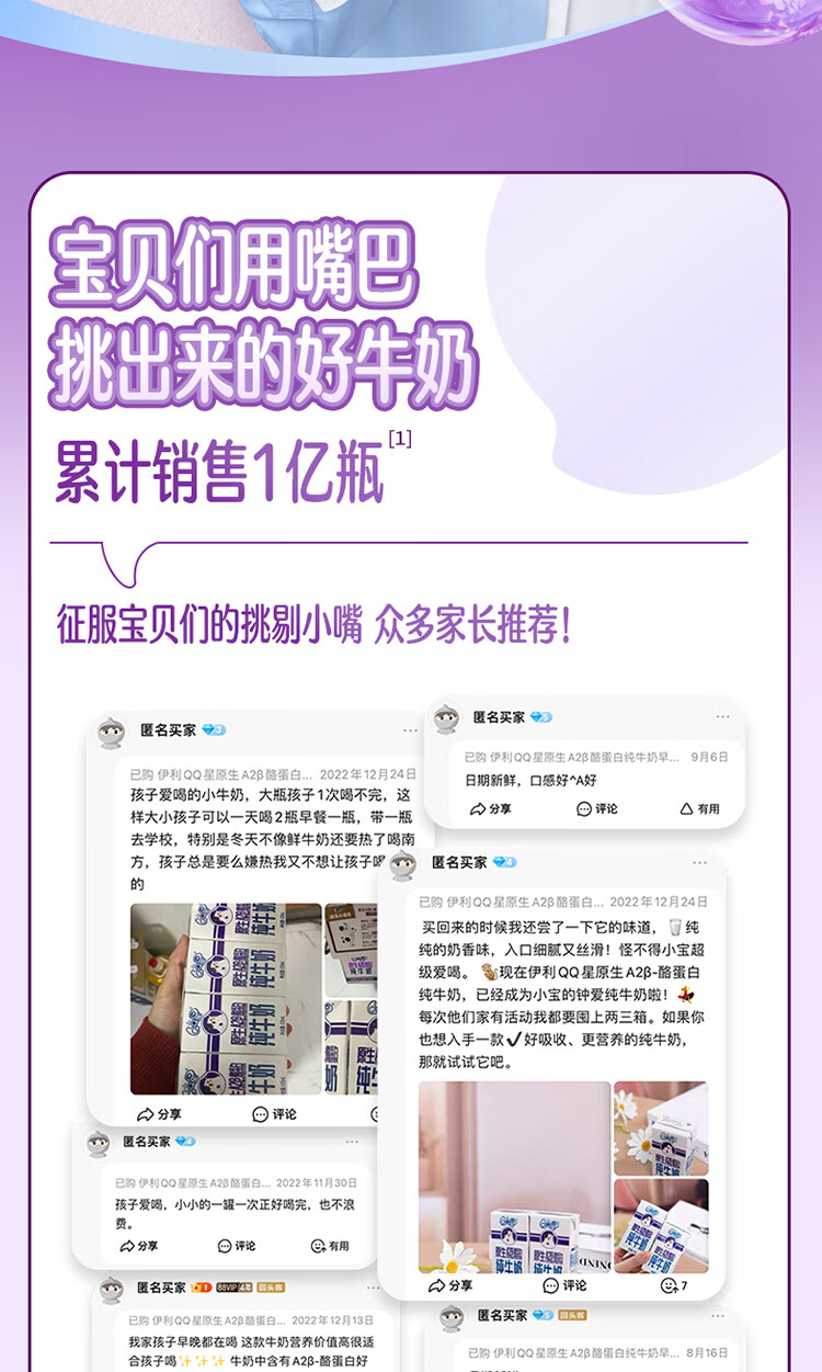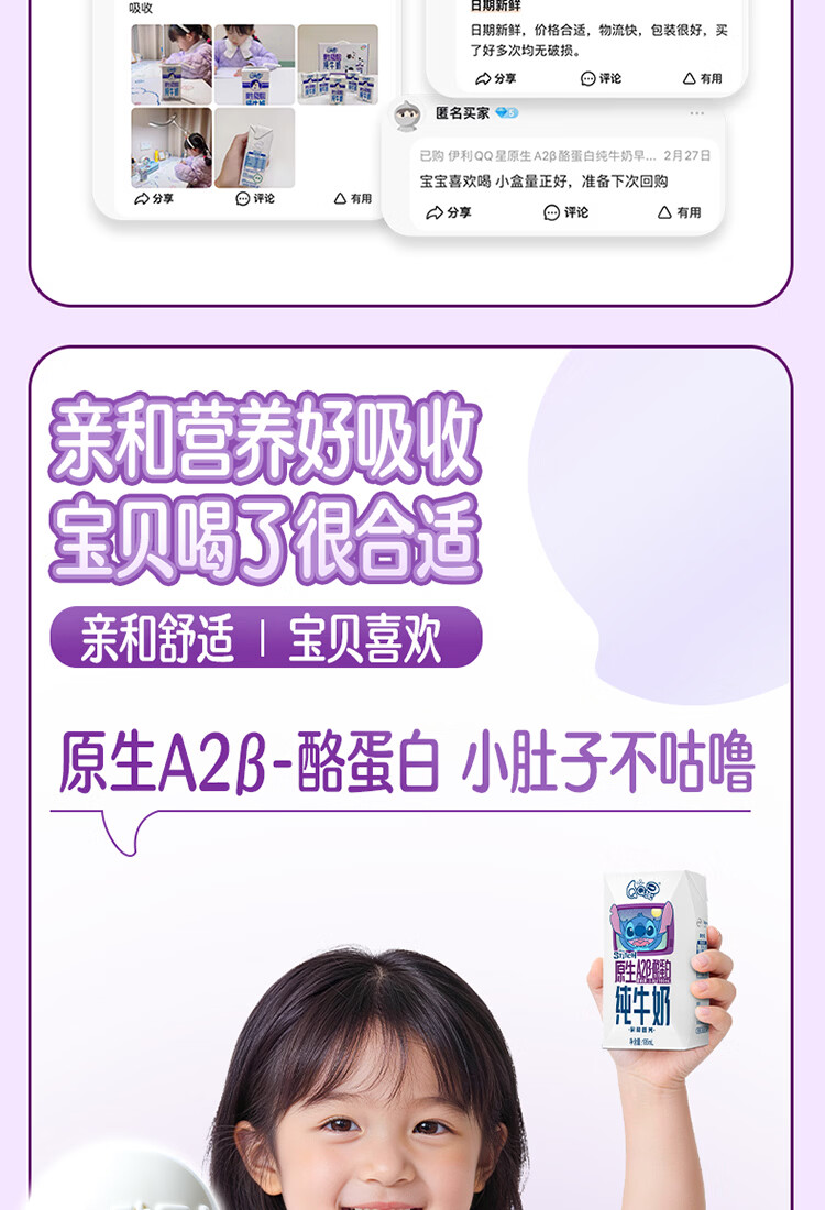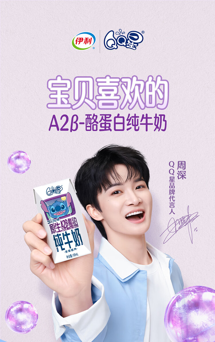 QQ星伊利儿童牛奶原生A2β-酪蛋白195ml*12盒 礼盒装【周深同款QQ星】