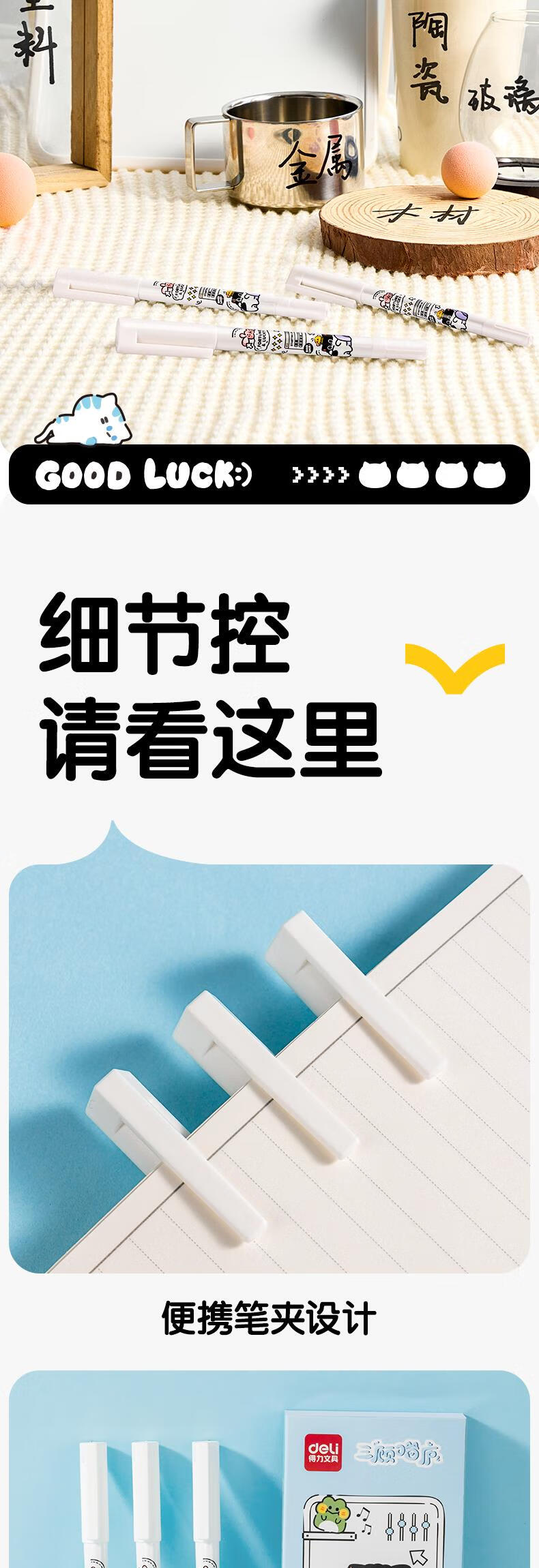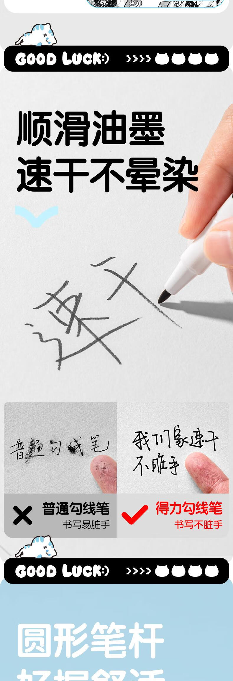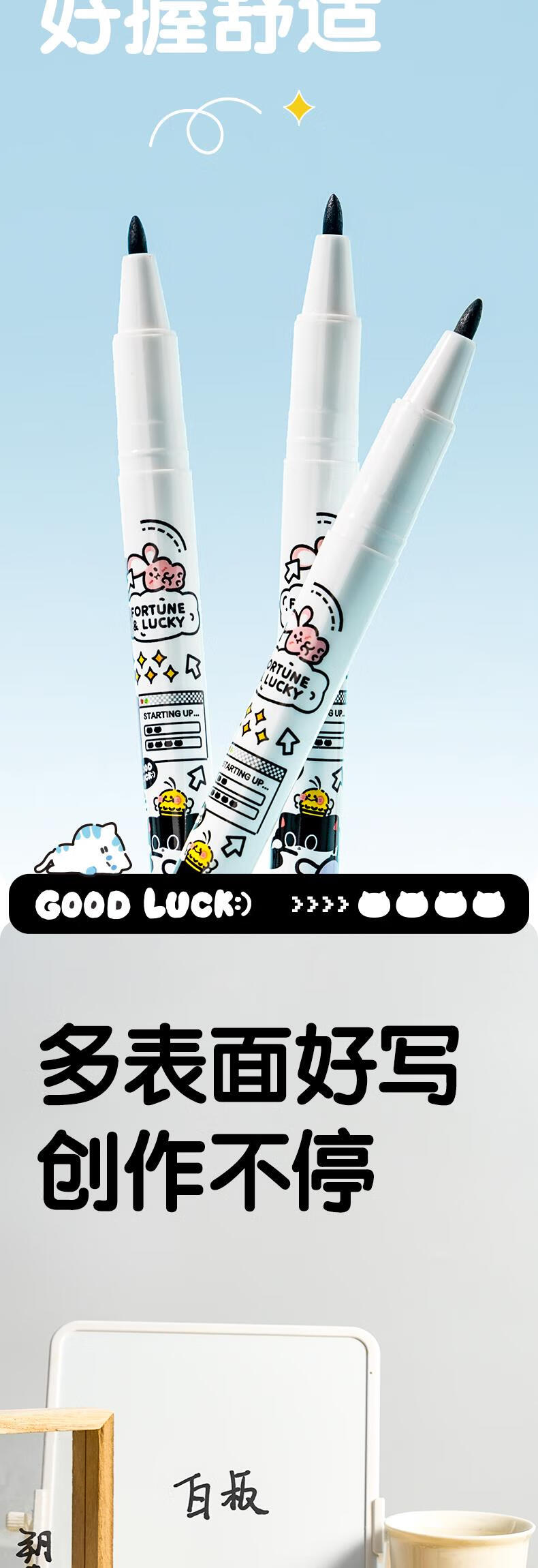 得力(deli)6支三顾喵庐双头1.2mm/0.5mm水性速干勾线笔黑色专业绘画手绘素描画画女孩儿童SN210