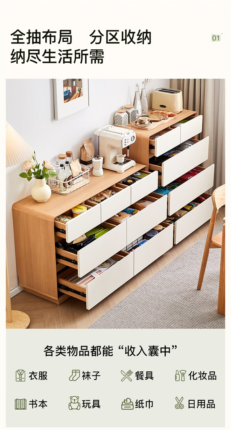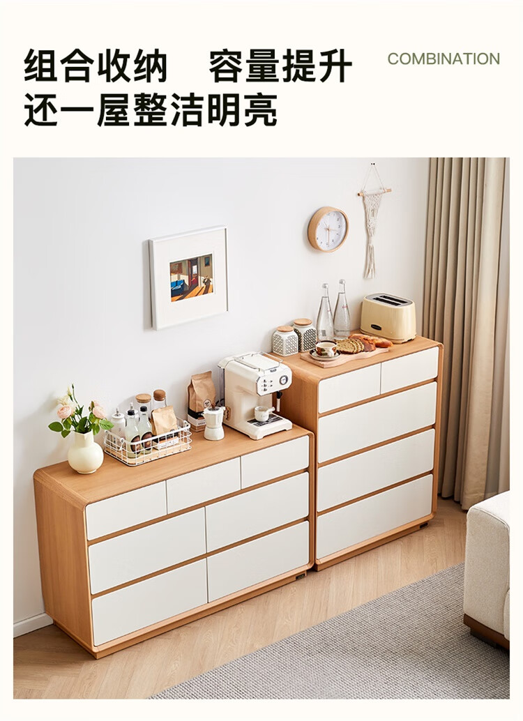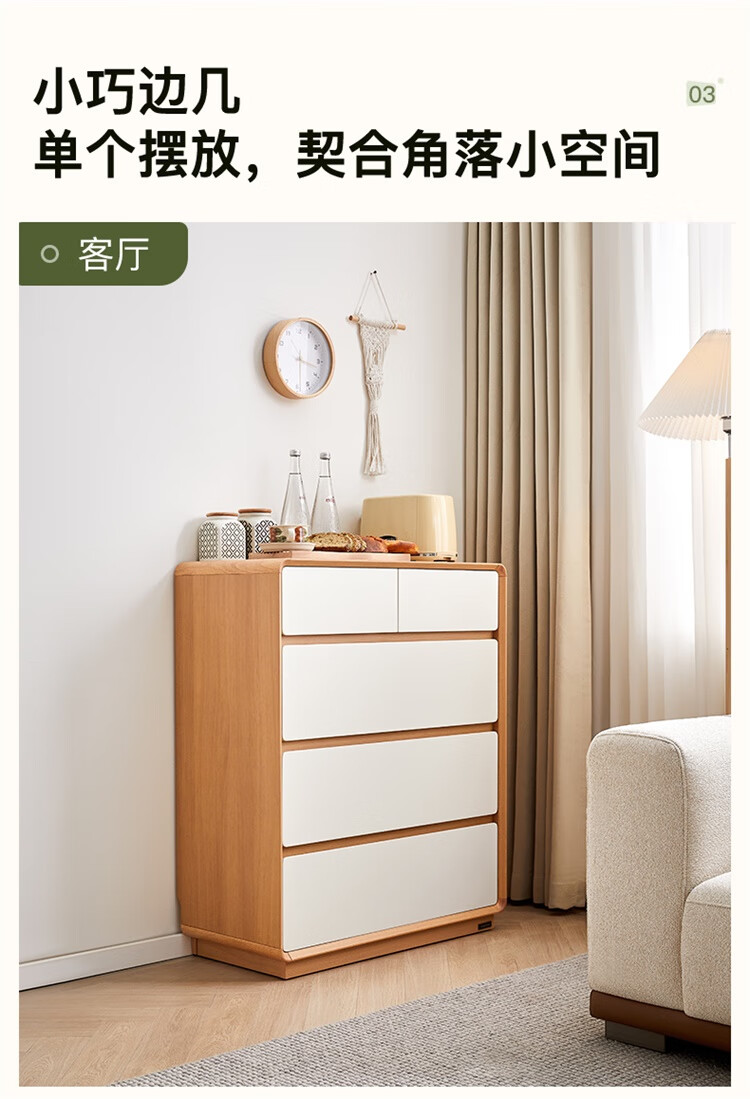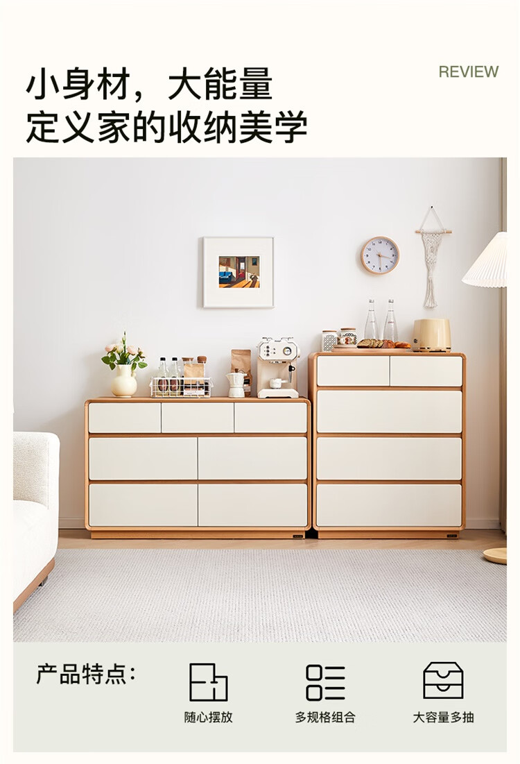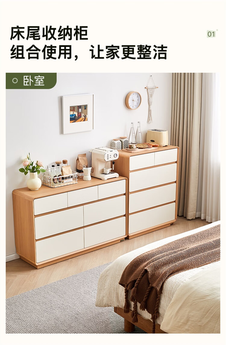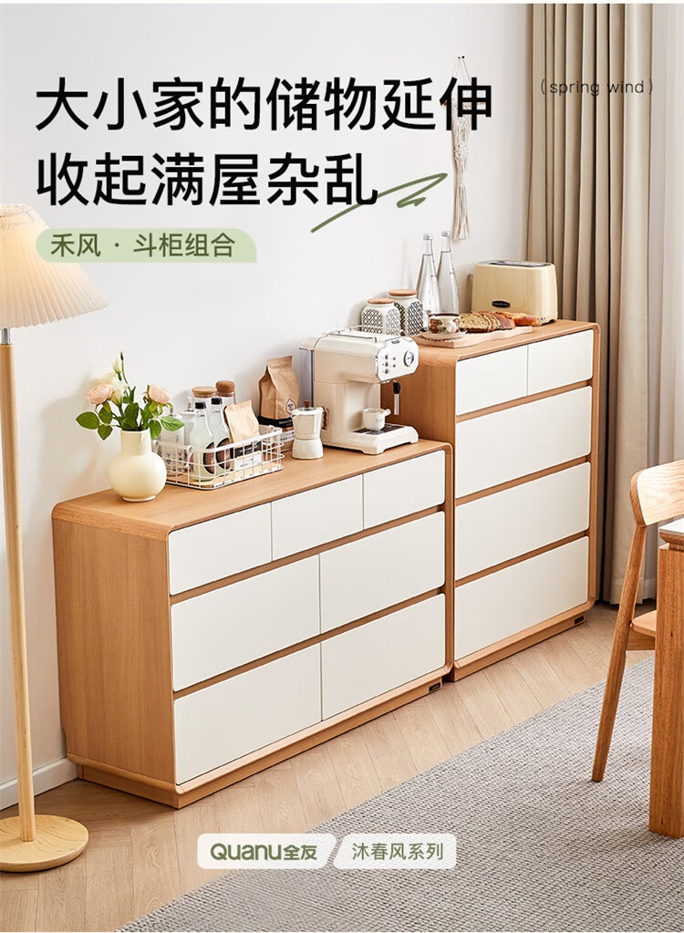 全友家居 原木奶油风斗柜卧室床尾柜客厅家用抽屉式收纳储物置物柜子
