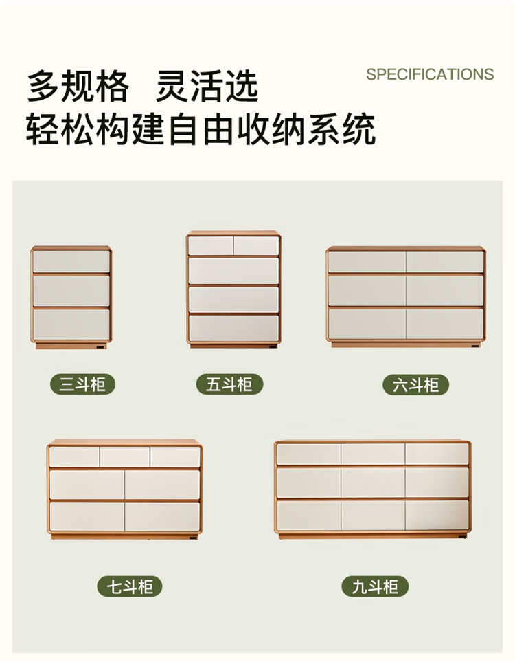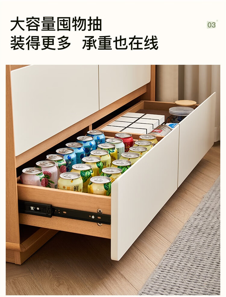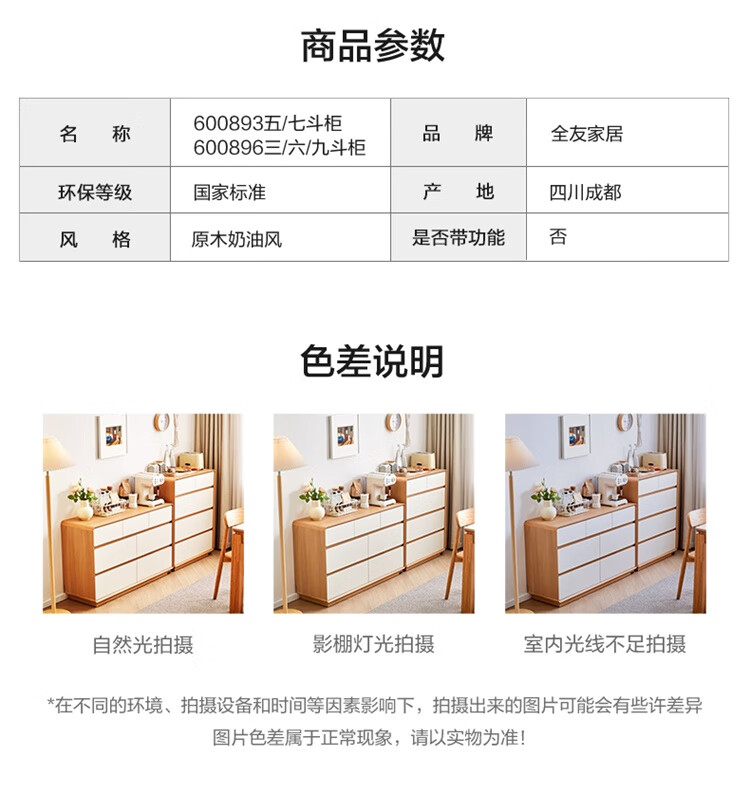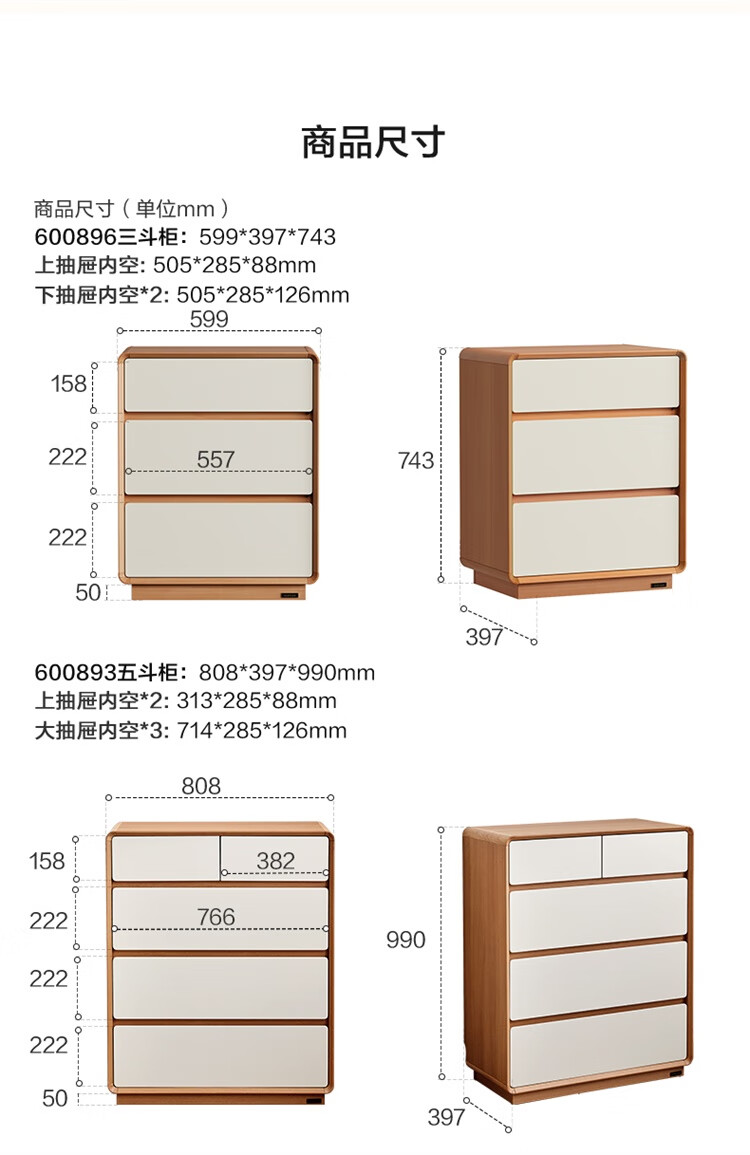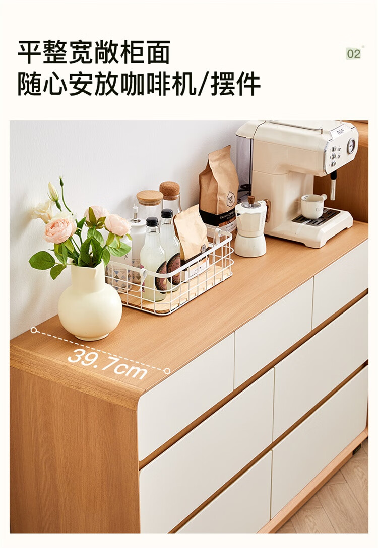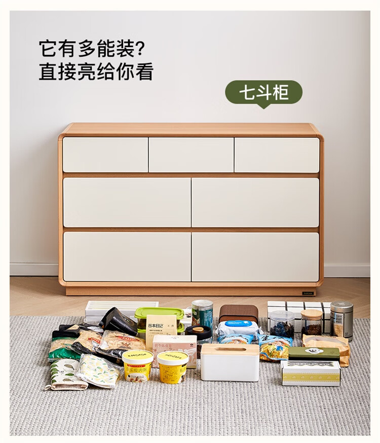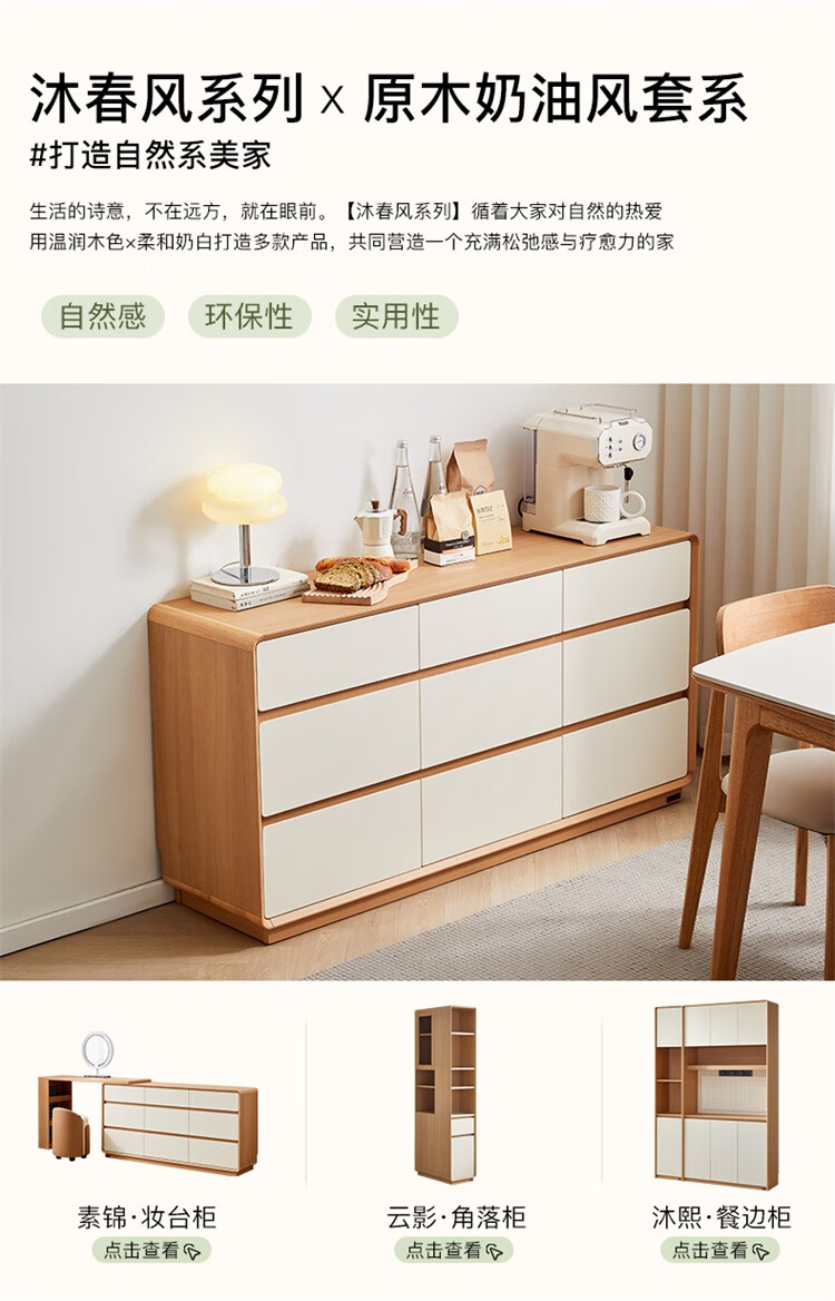 全友家居 原木奶油风斗柜卧室床尾柜客厅家用抽屉式收纳储物置物柜子
