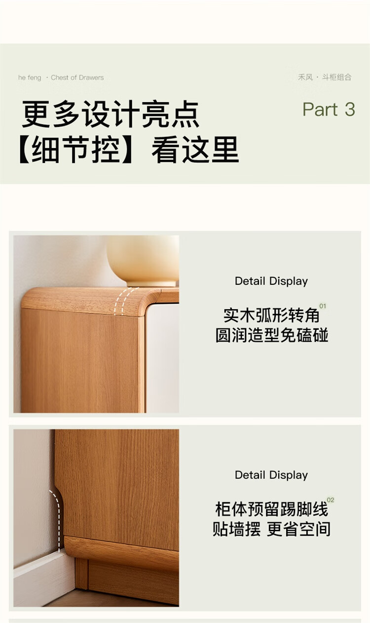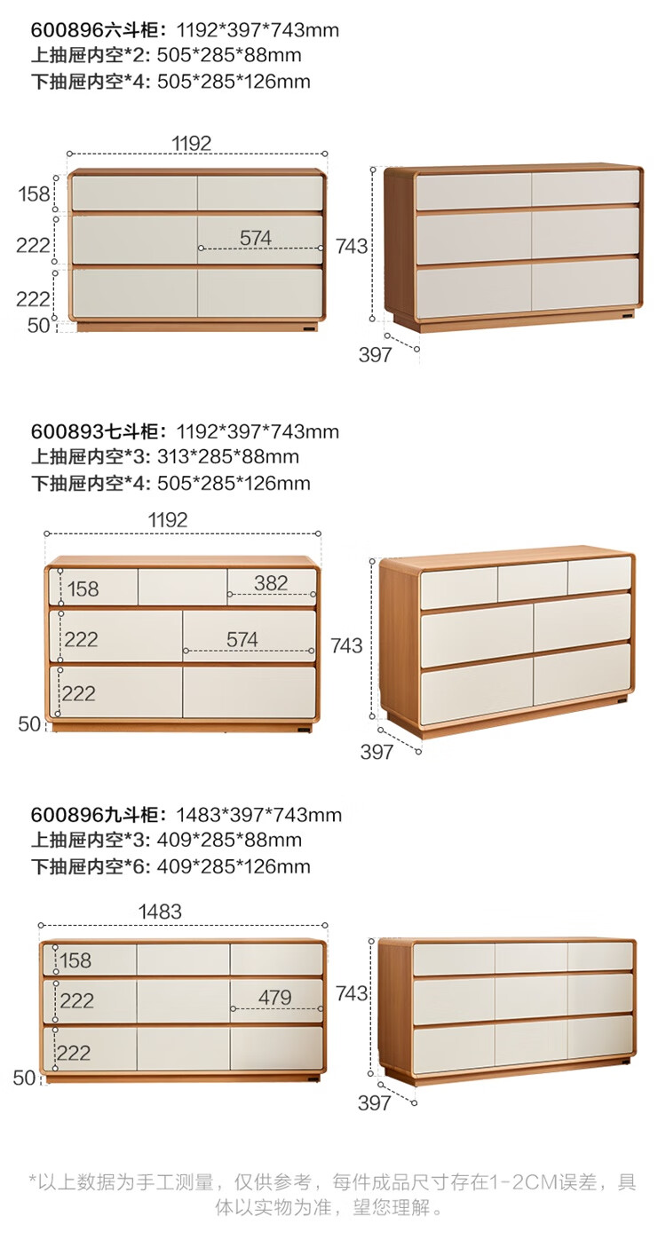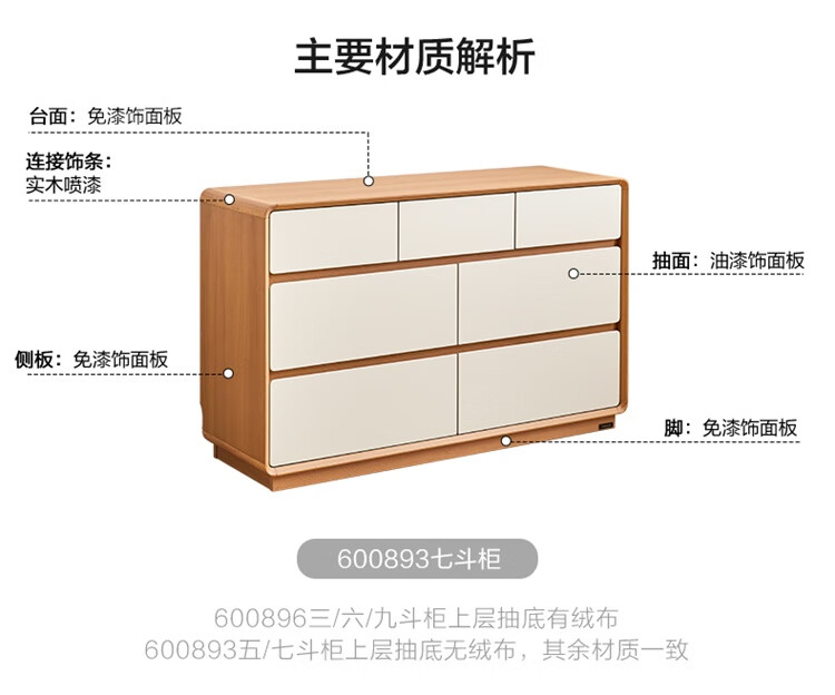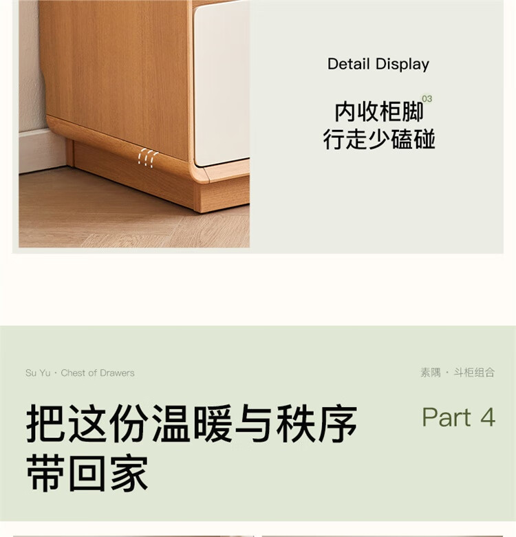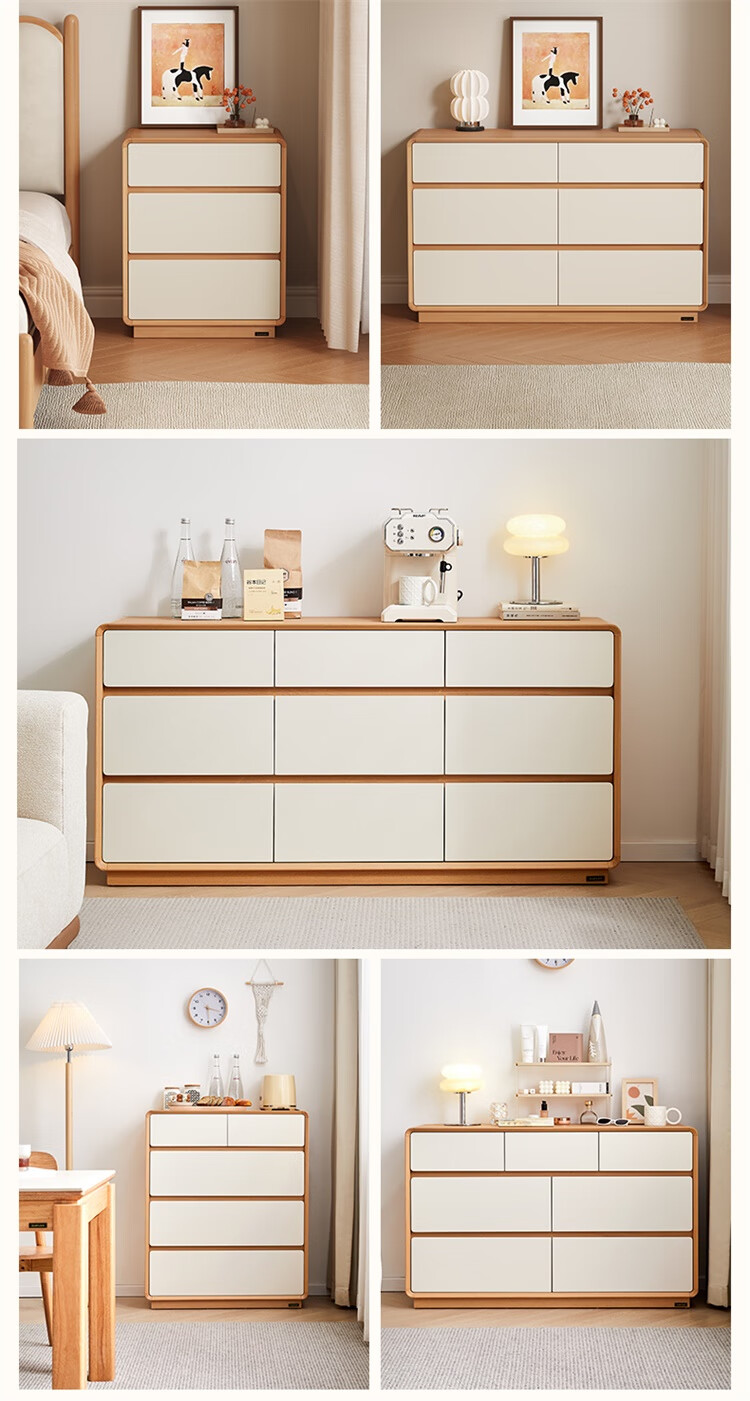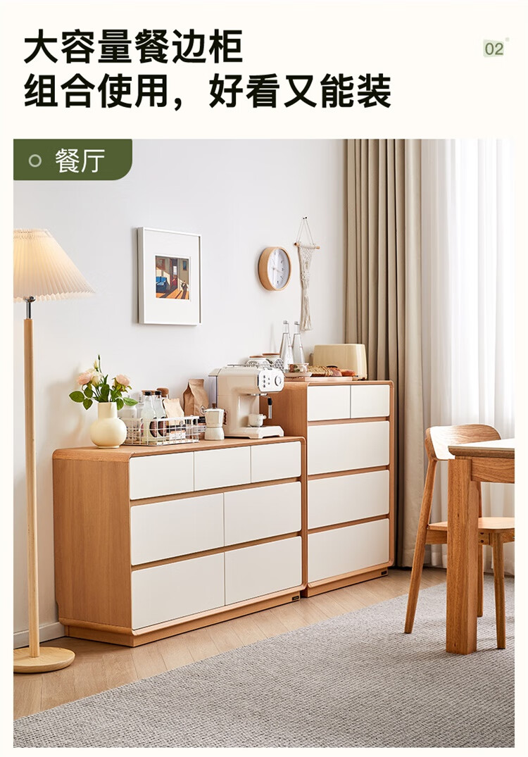 全友家居 原木奶油风斗柜卧室床尾柜客厅家用抽屉式收纳储物置物柜子