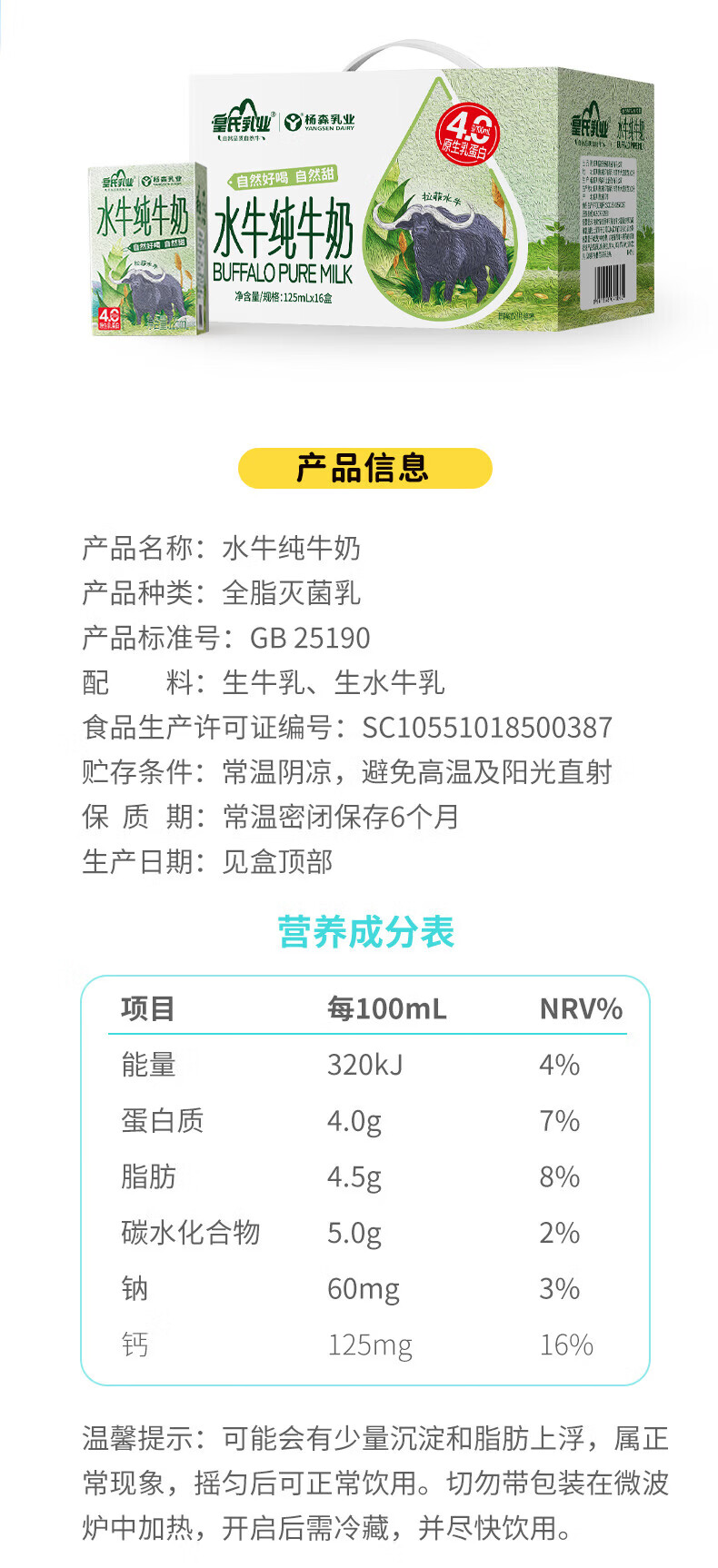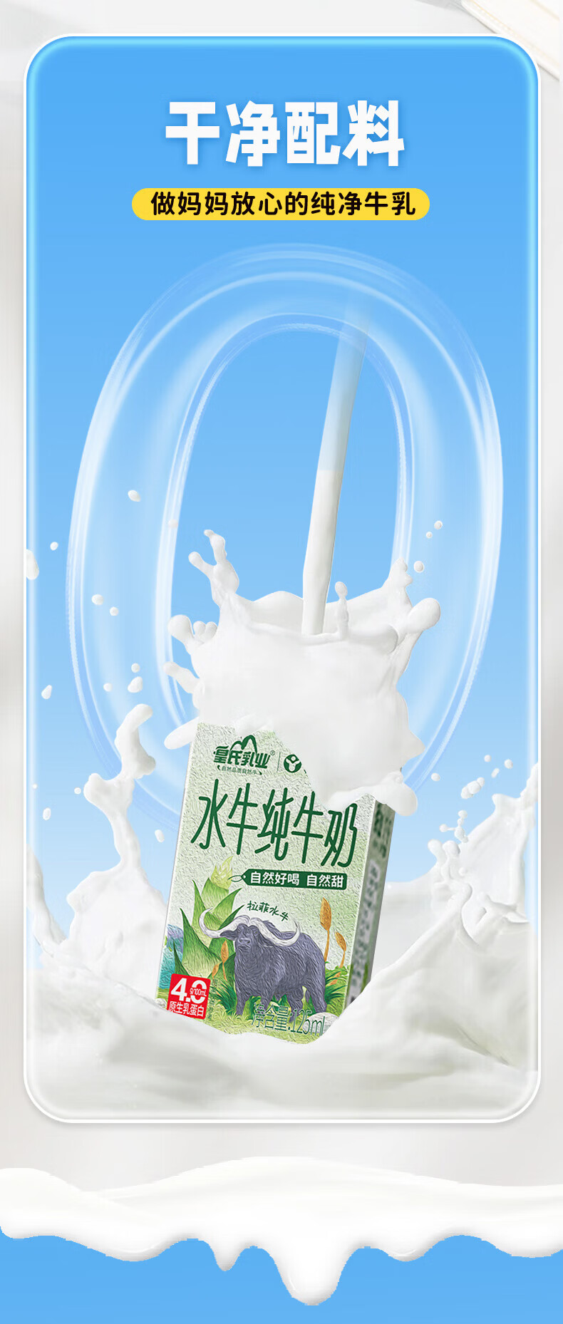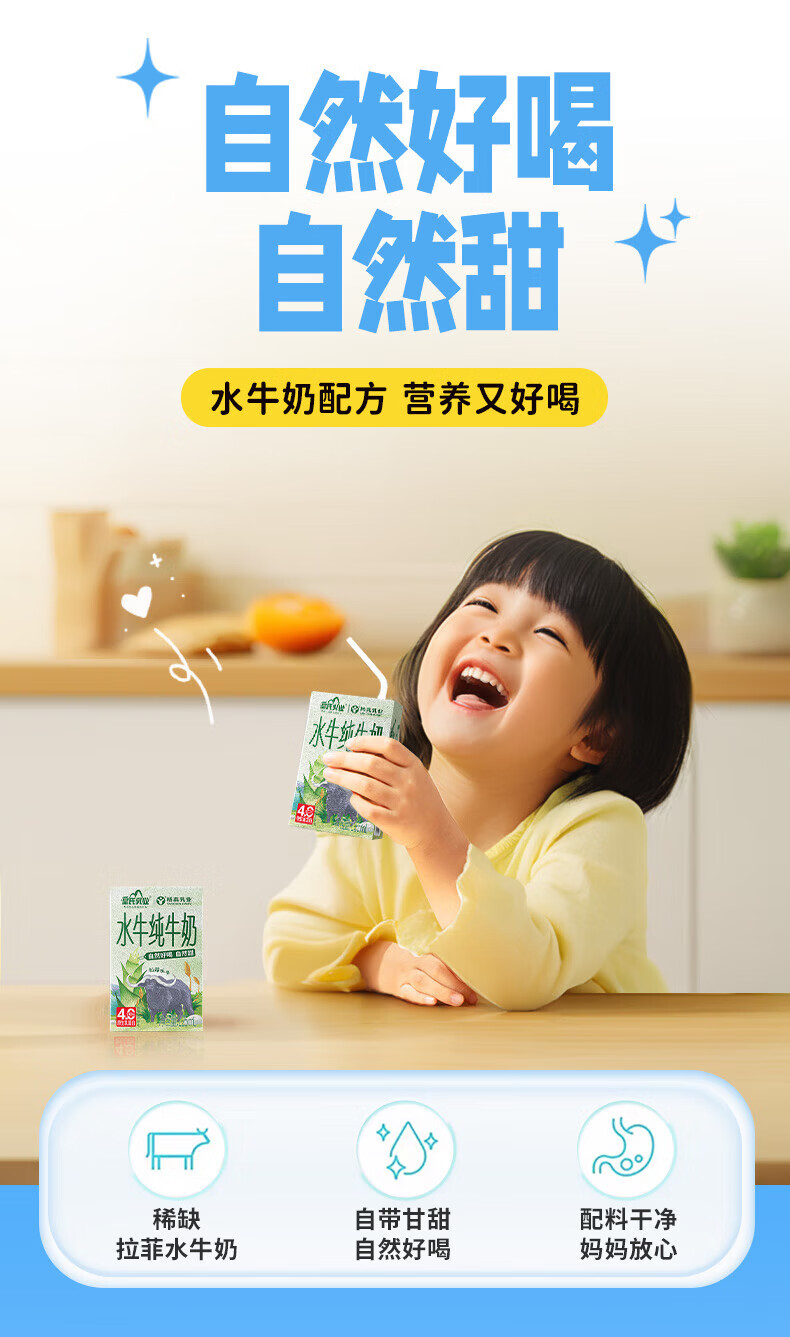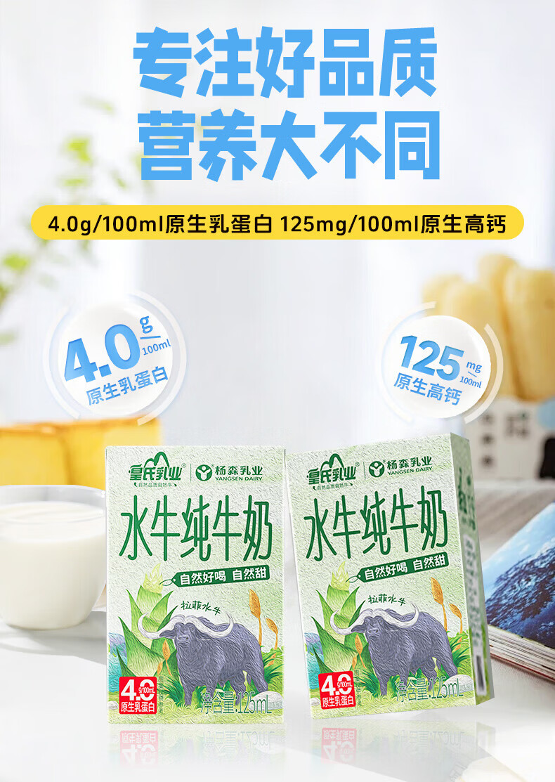皇氏乳业水牛纯牛奶4.0g蛋白+125mg钙儿童营养牛奶含生水牛乳 125ml*16盒*1箱