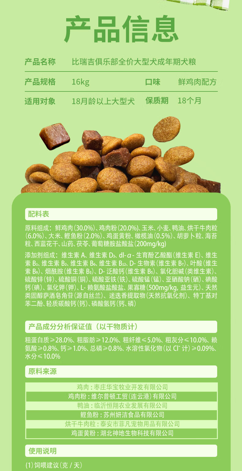 比瑞吉狗粮金毛萨摩耶拉布拉多俱乐部系列鲣鱼牛肉大型犬成犬粮16kg