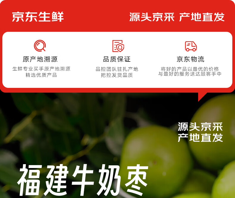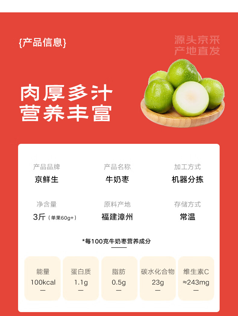 京鲜生 福建牛奶青枣 3斤装 单果70g起 时令生鲜水果 源头直发 包邮
